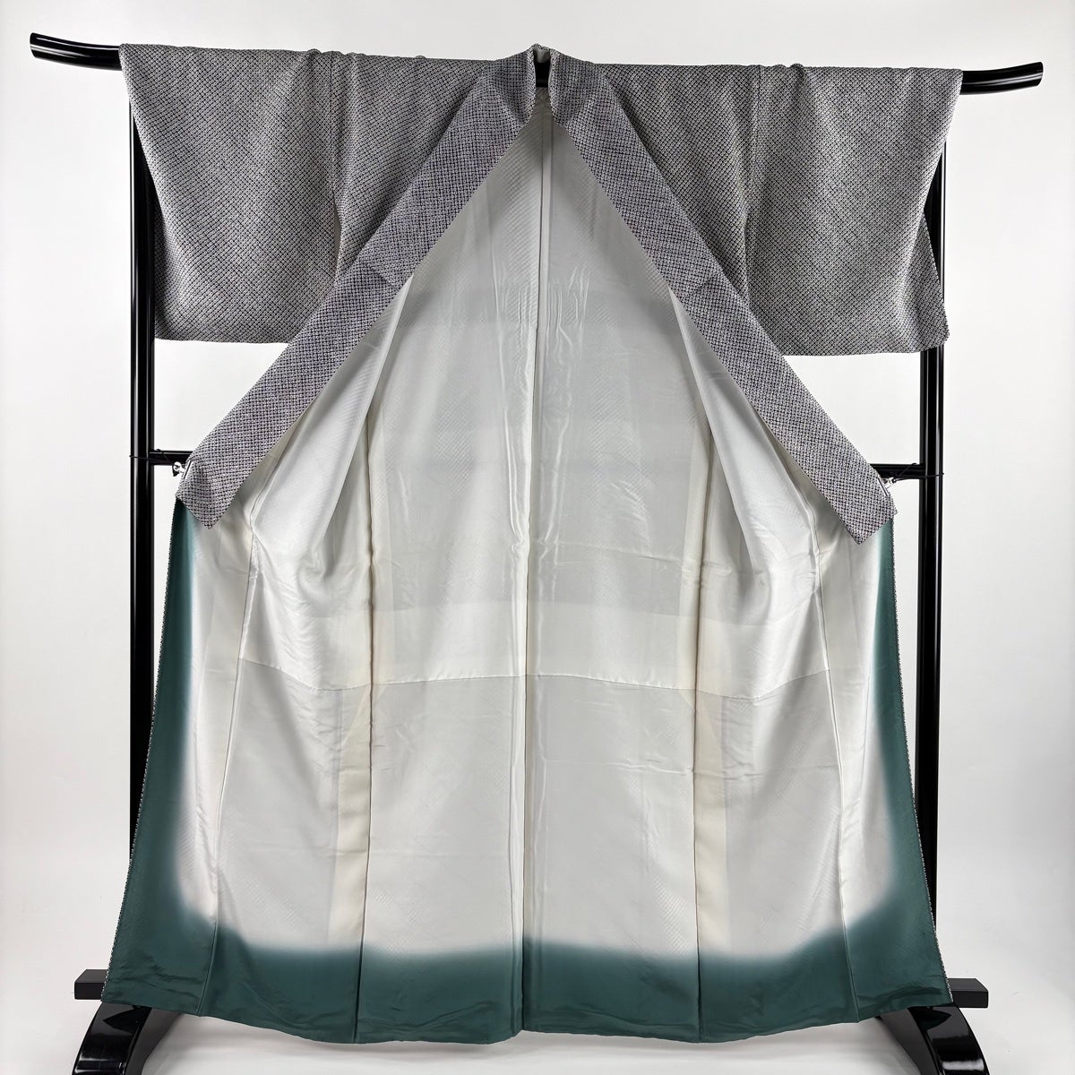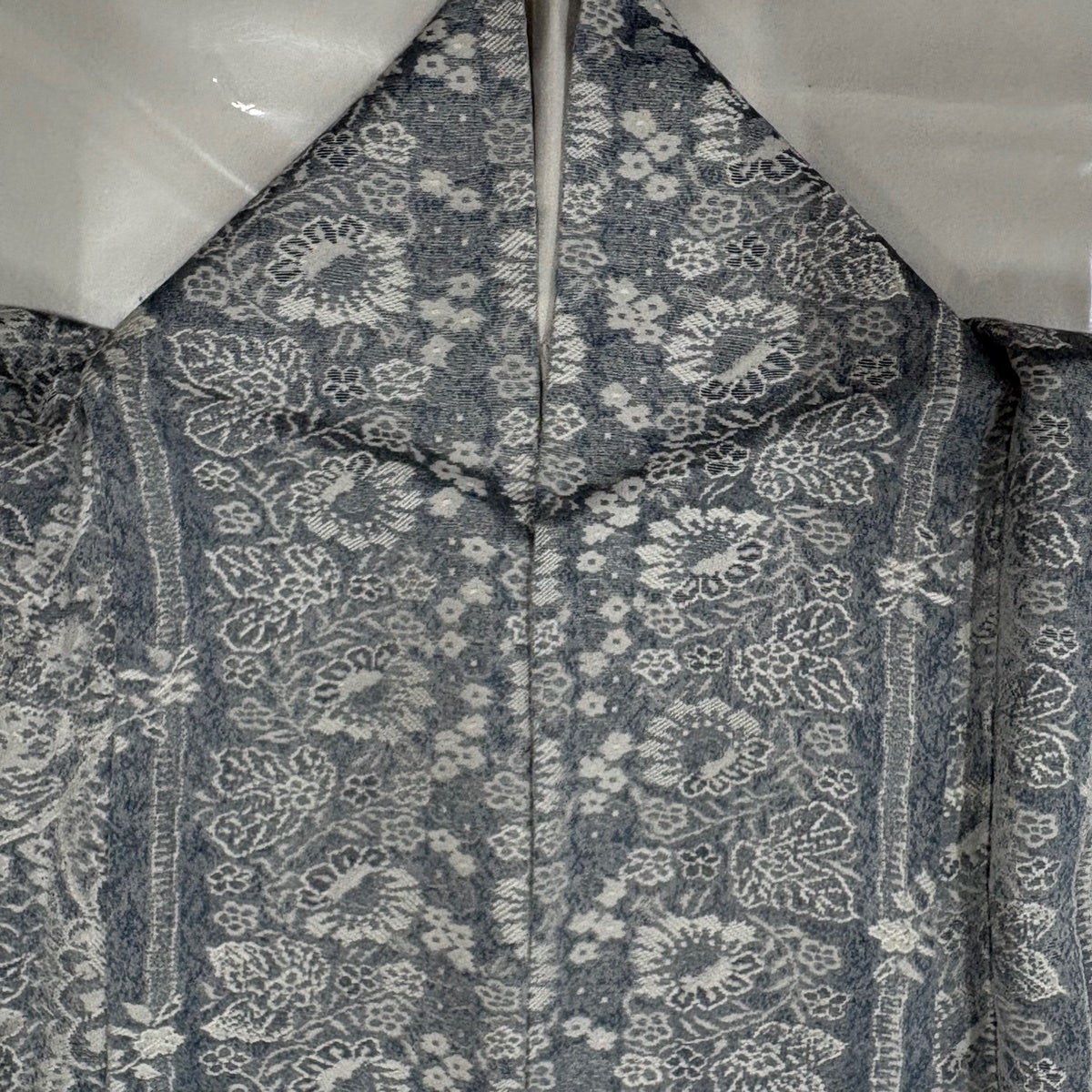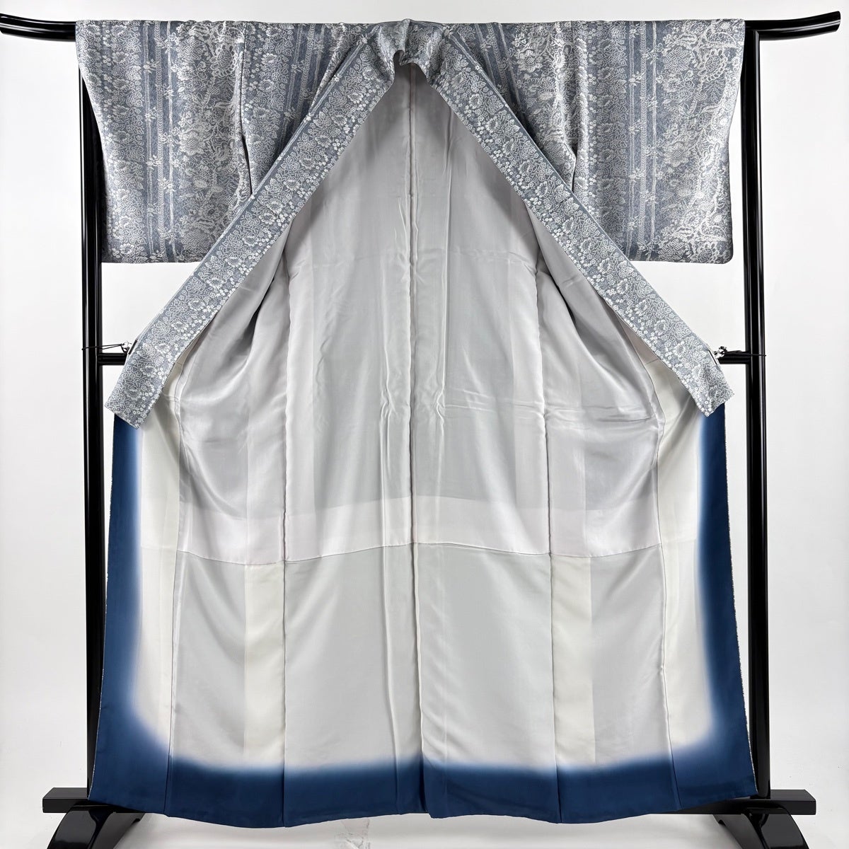 【美品】 小紋 身丈168cm 裄丈68cm L 袷 霞 ぼかし 青灰色 正絹 秀品