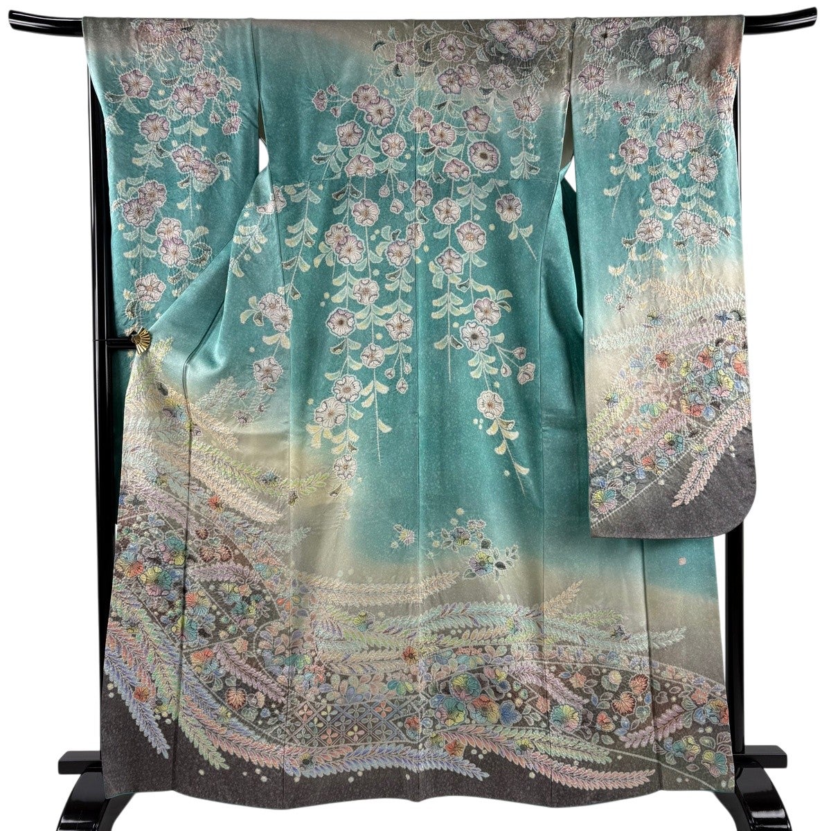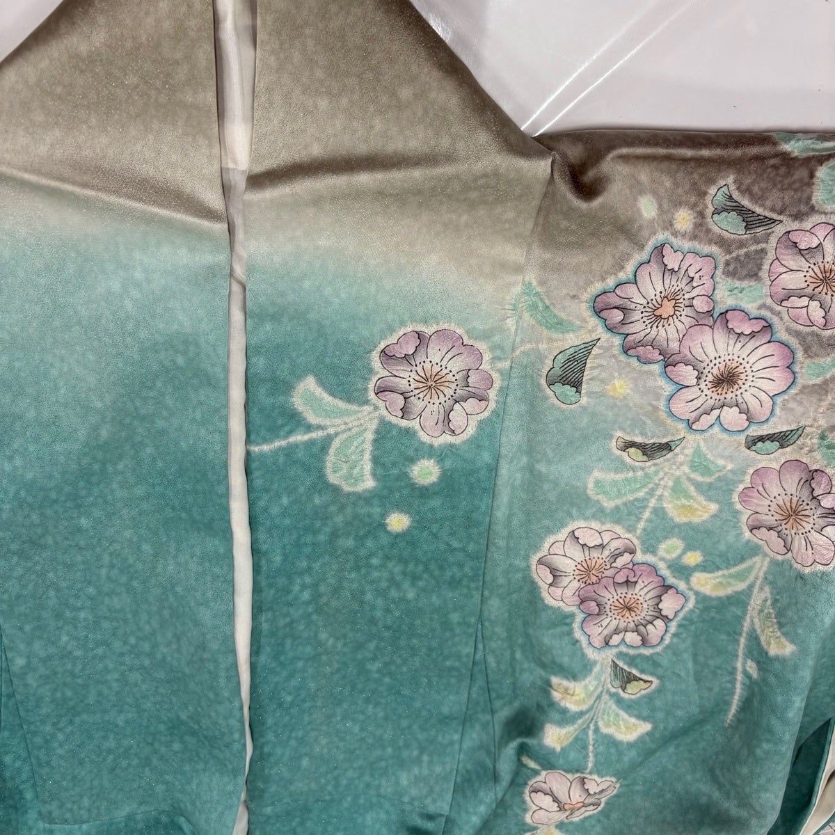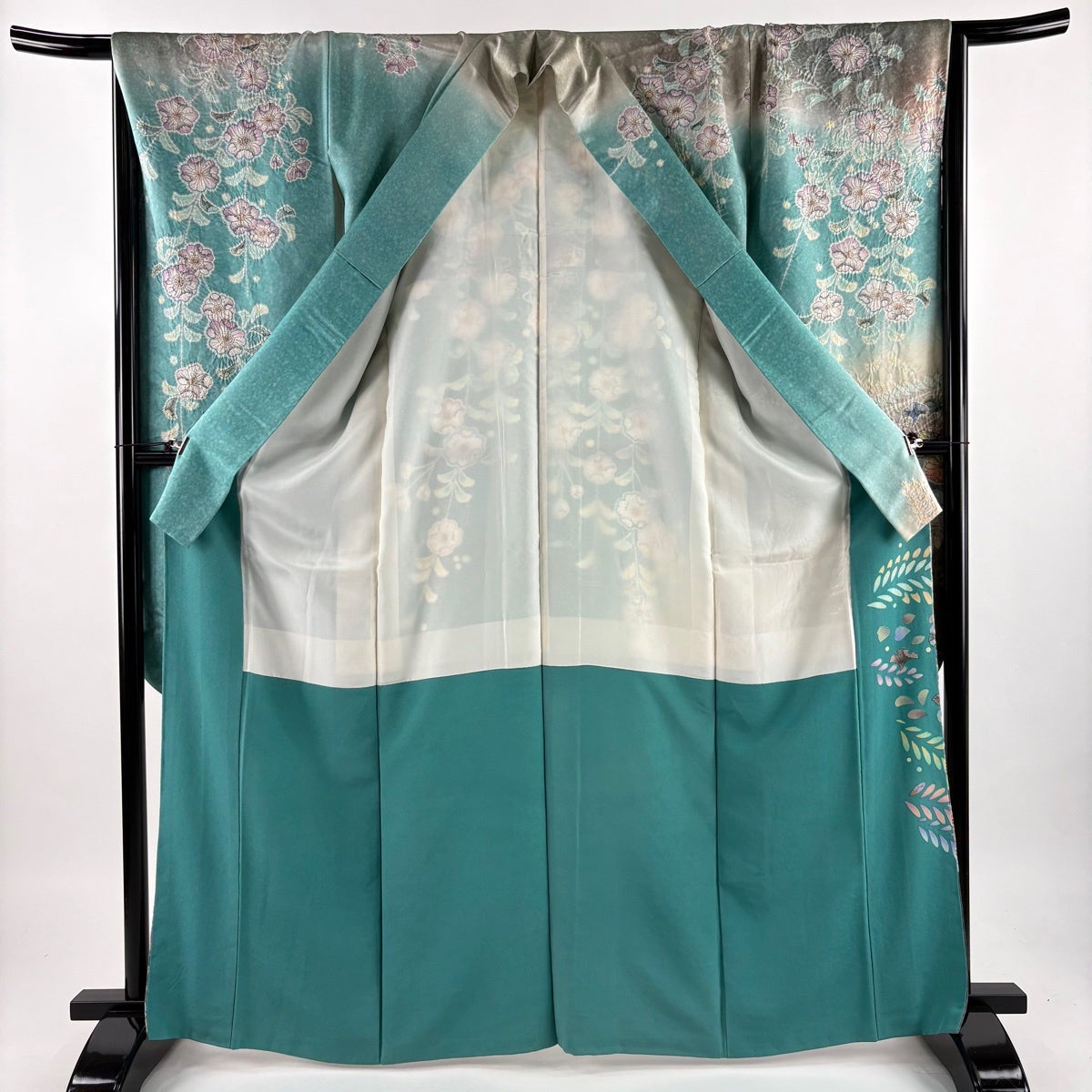 振袖 身丈165cm 裄丈68cm L 袷 蝶 辻が花柄 金彩 染め分け 緑 正絹 秀品