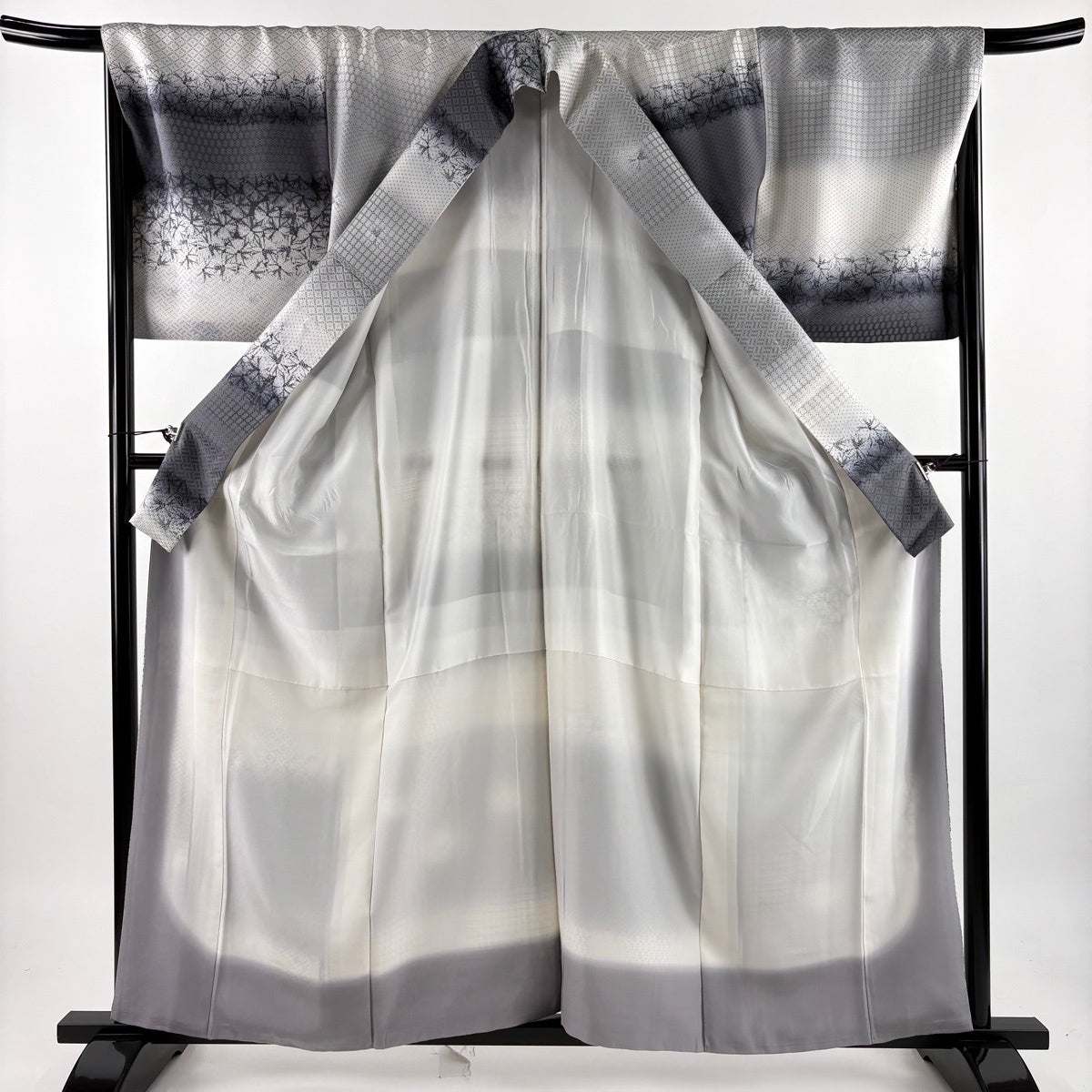 【美品】 付下げ 身丈153cm 裄丈63.5cm S 薄物 絽 地紋 裾ぼかし 灰色 正絹 秀品
