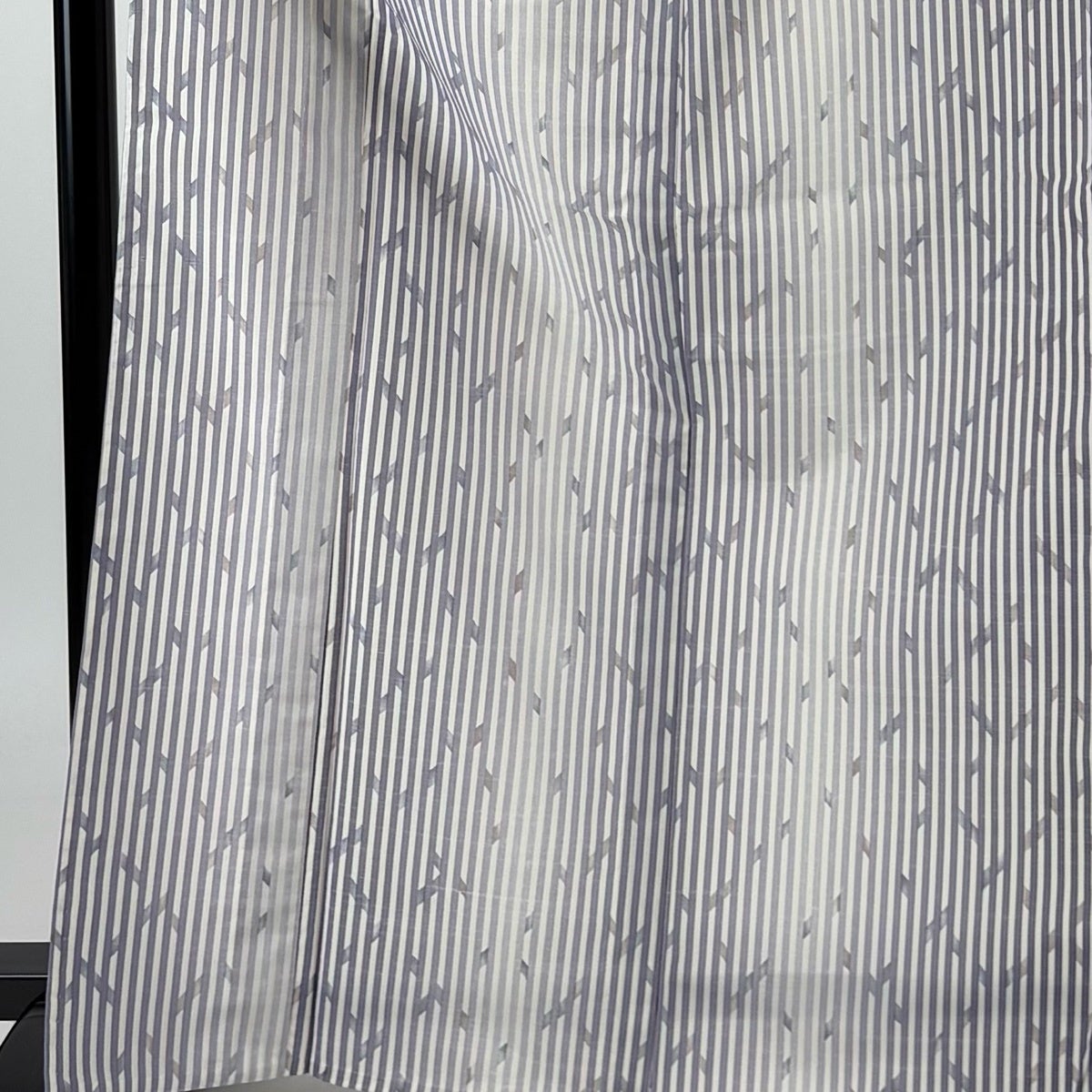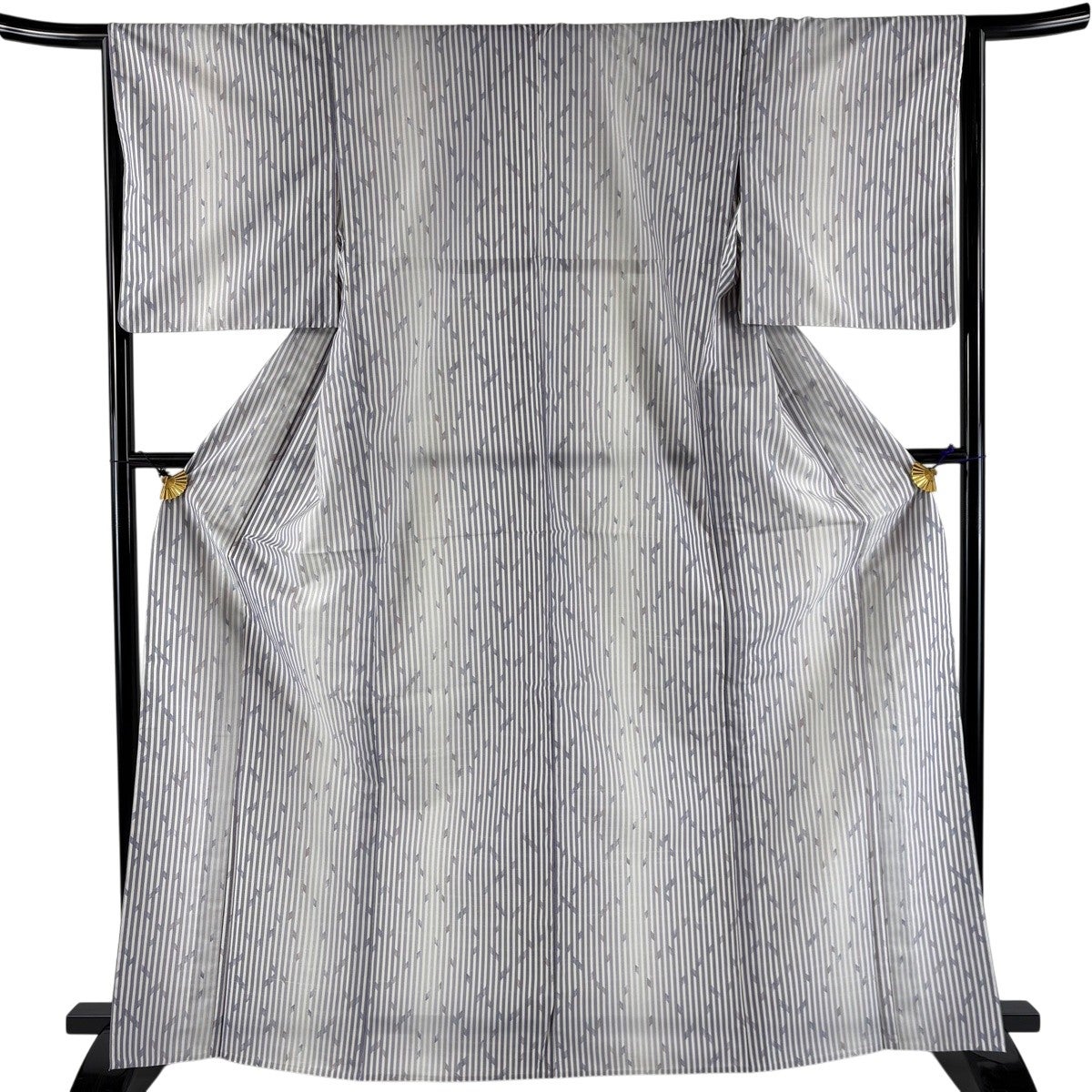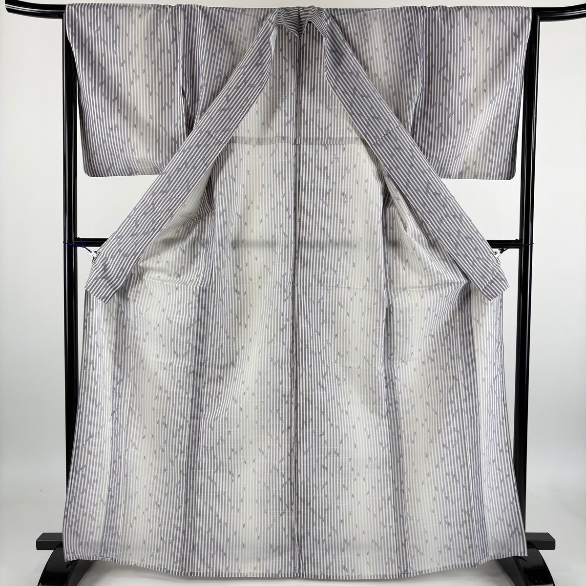 小紋 身丈167.5cm 裄丈67.5cm L 薄物 絽 洗える着物 葉柄 縦縞 青灰色 化繊 優品