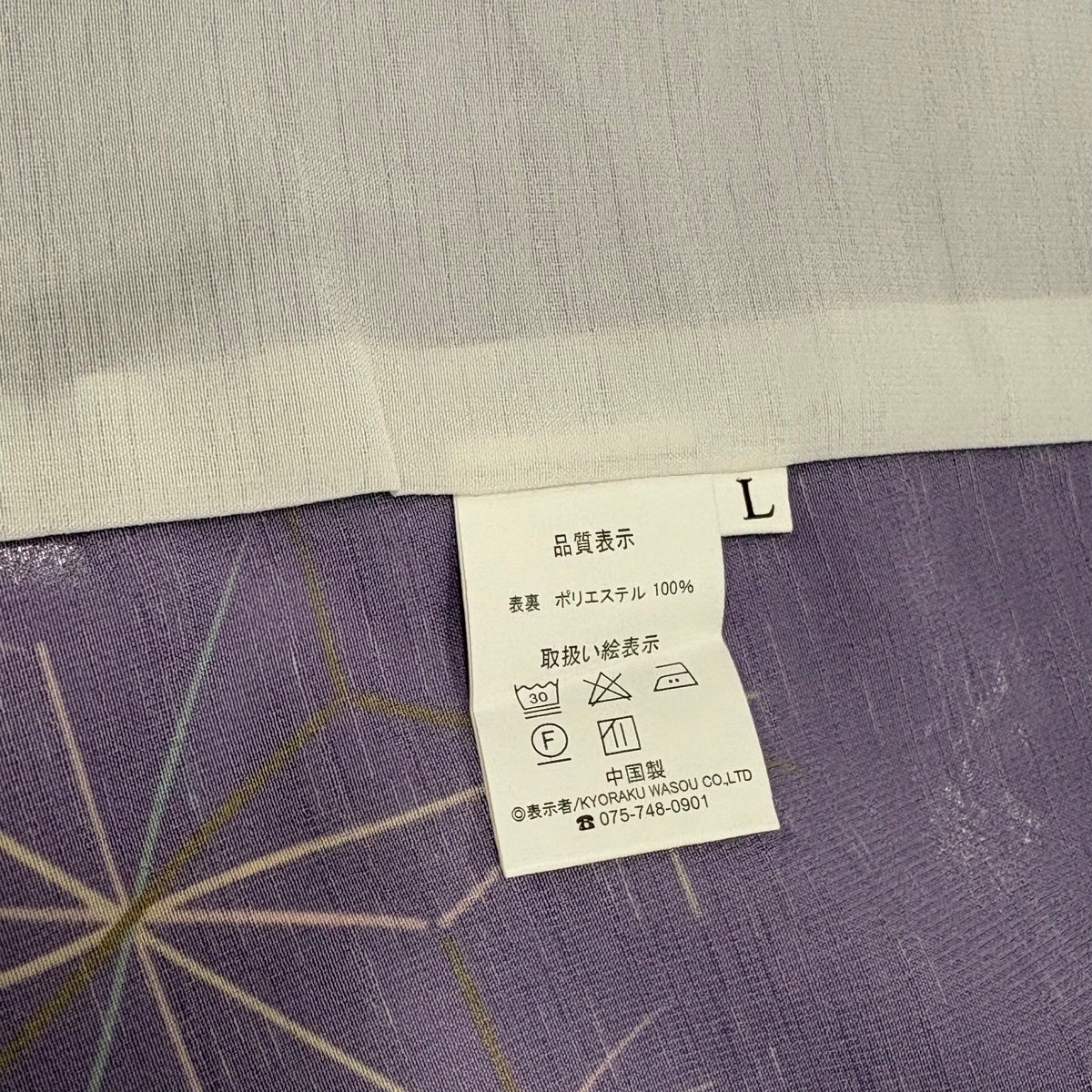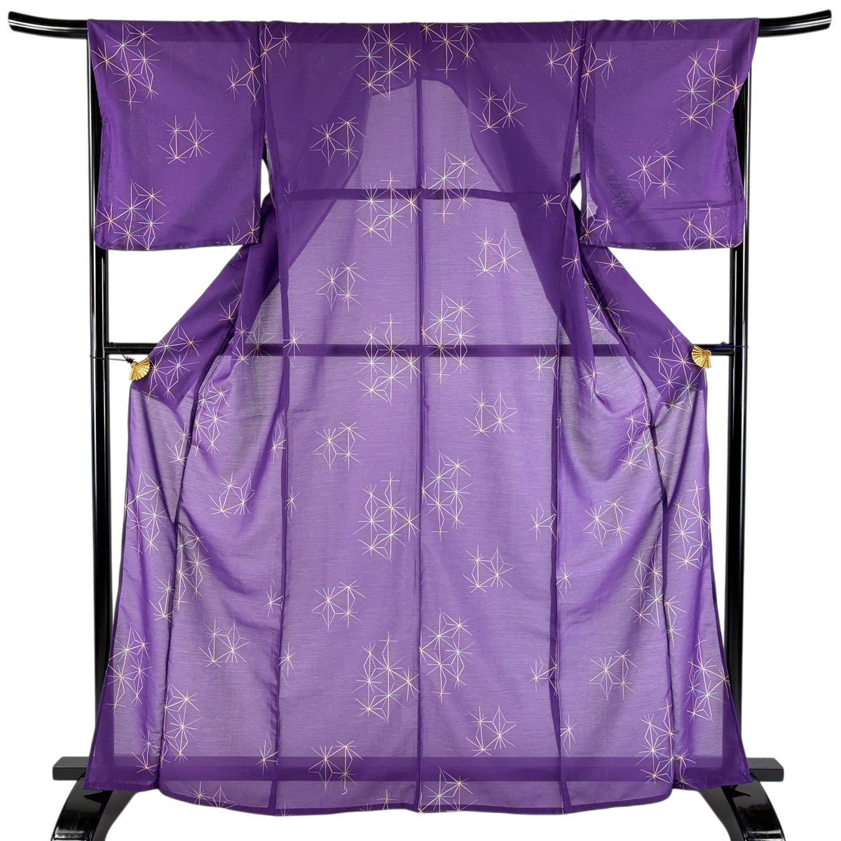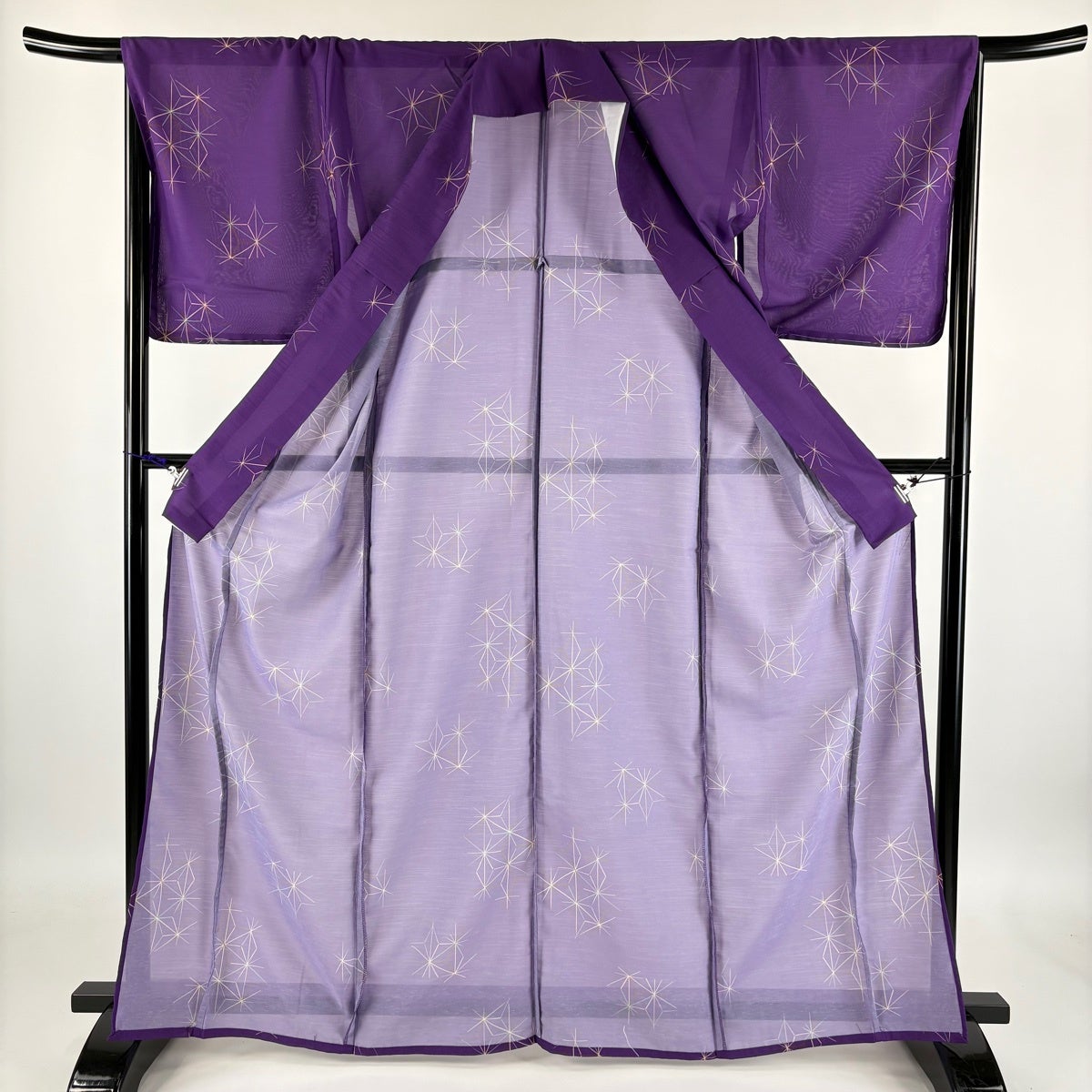【美品】 小紋 身丈165cm 裄丈68cm L 薄物 洗える着物 麻の葉 紫 化繊 優品