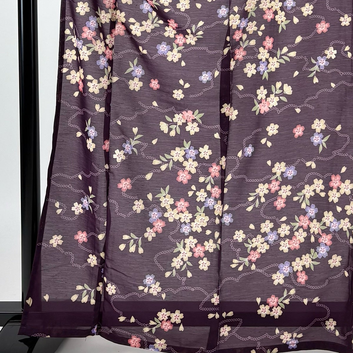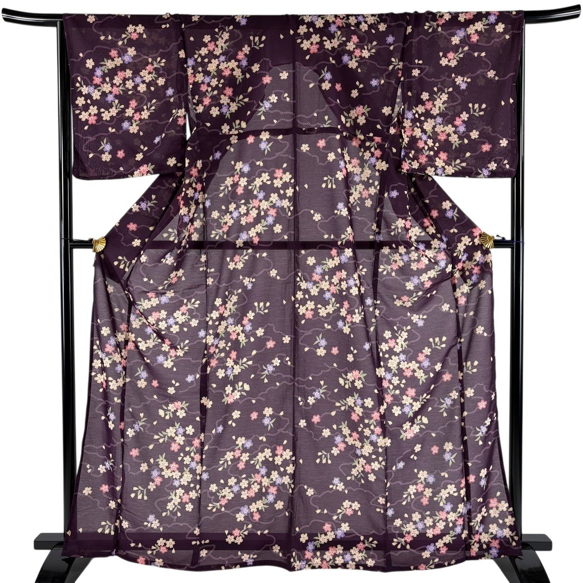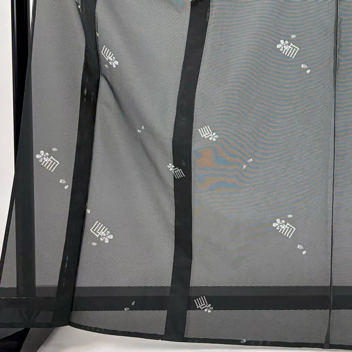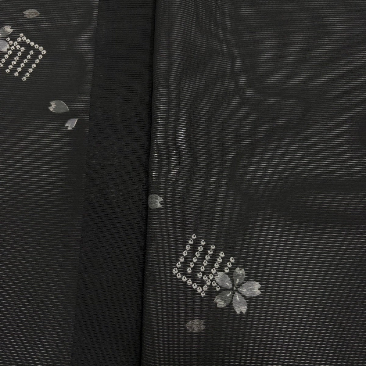 【美品】 小紋 身丈167cm 裄丈66cm M 薄物 絽 洗える着物 源氏香 桜 黒 化繊 優品
