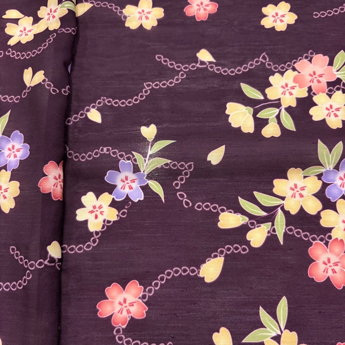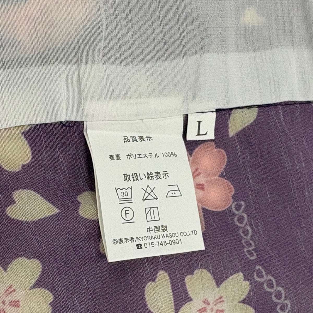 【美品】 小紋 身丈165cm 裄丈67.5cm L 薄物 洗える着物 桜 桜の花びら 茶紫 化繊 優品