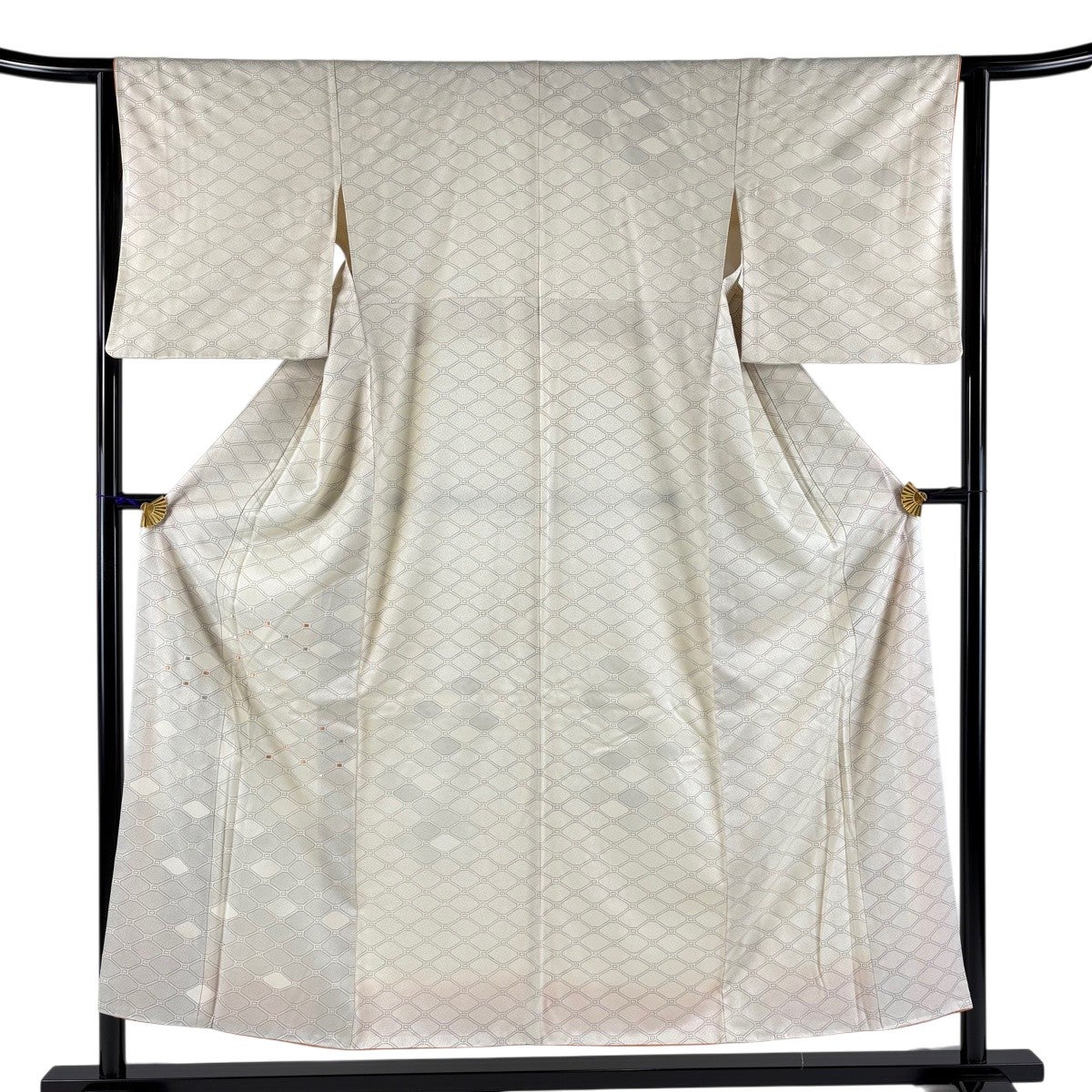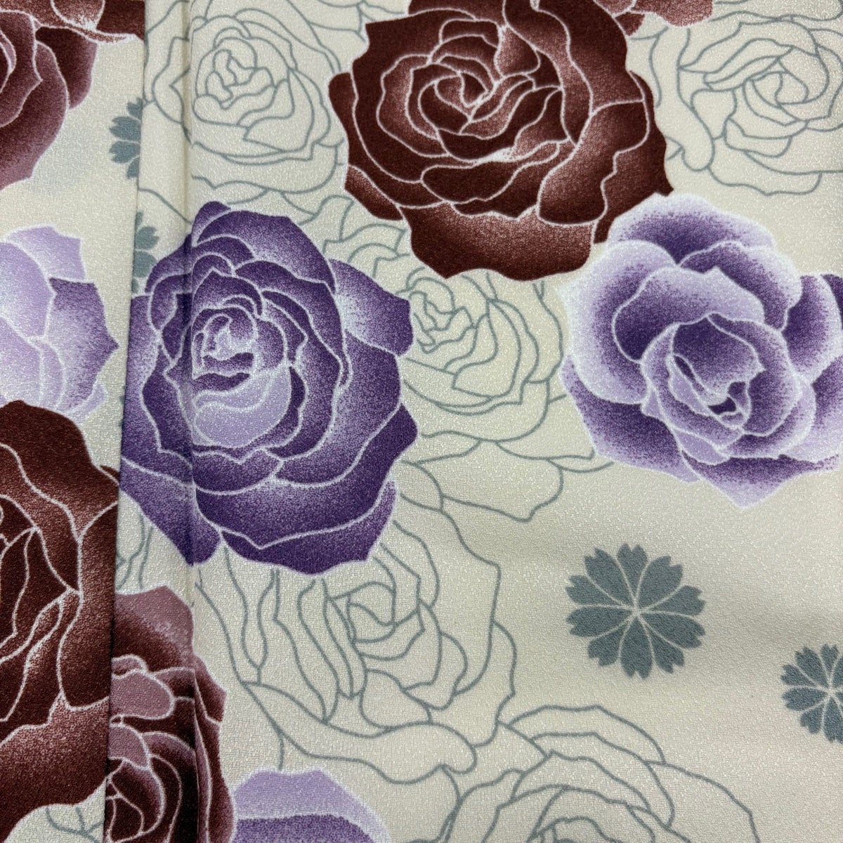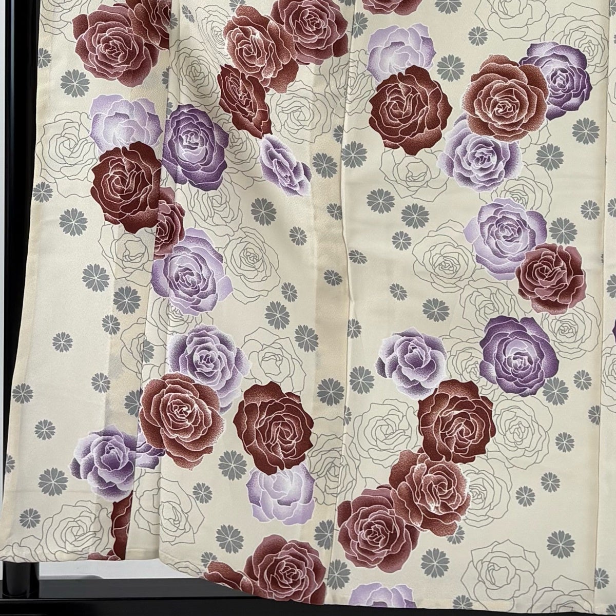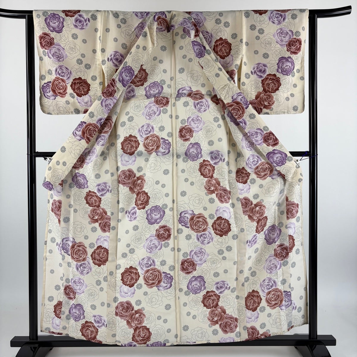 小紋 身丈158cm 裄丈63cm S 単衣 洗える着物 薔薇 花 クリーム 化繊 優品