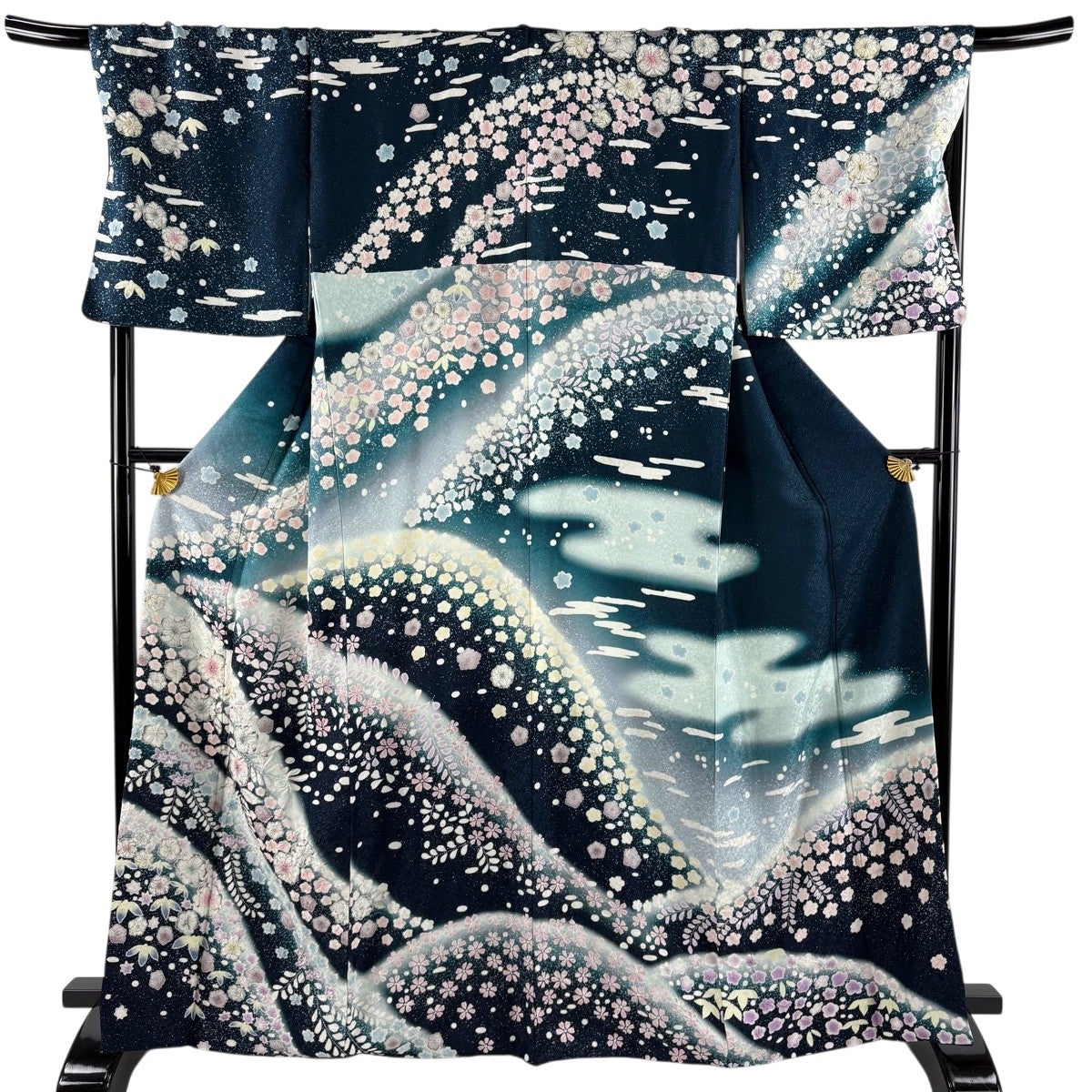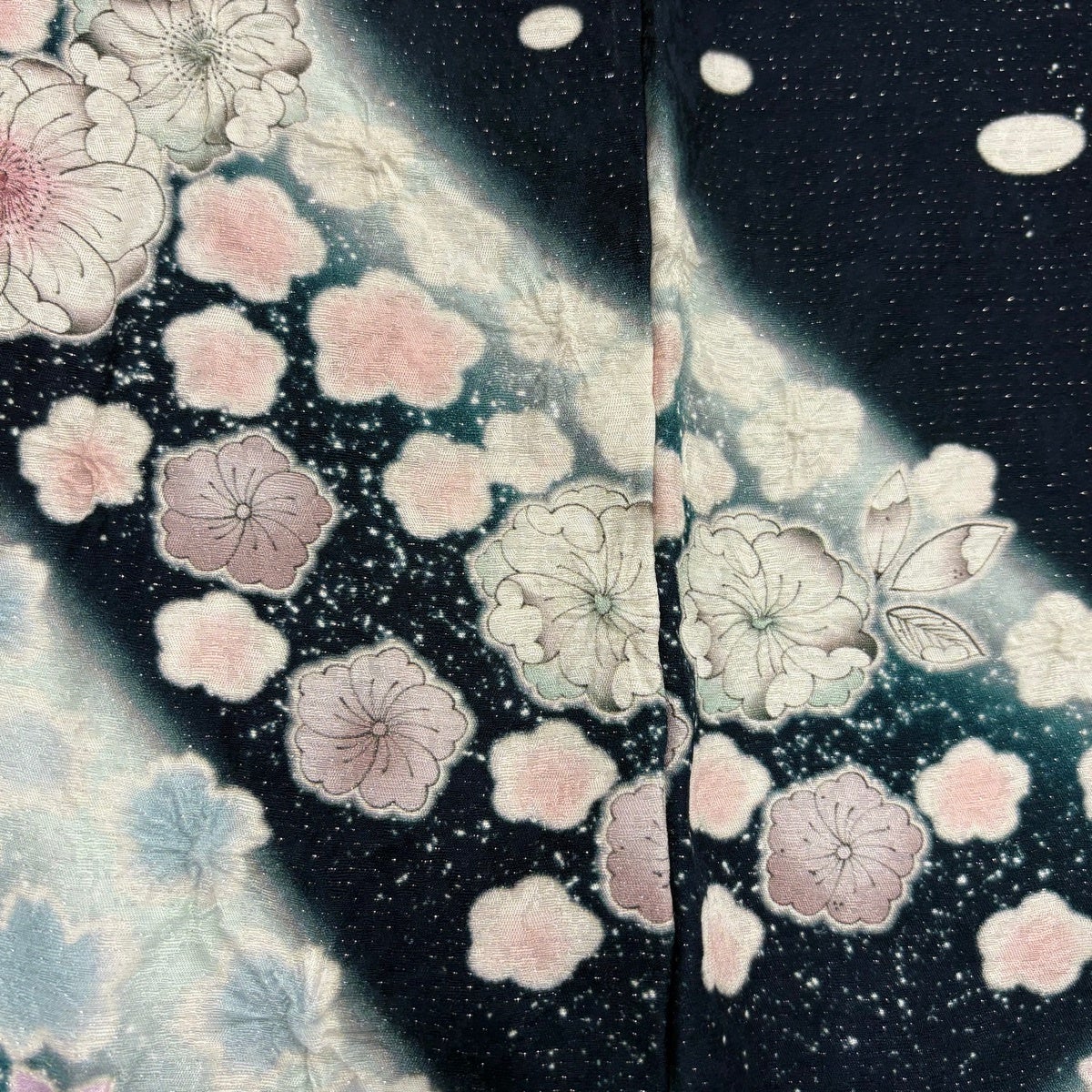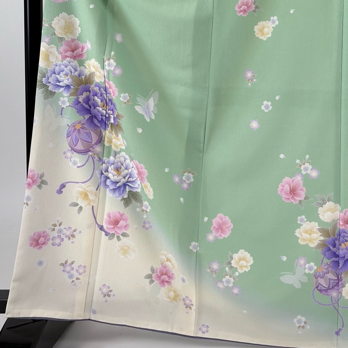 振袖 身丈157cm 裄丈64.5cm M 袷 手毬 桜 金彩 ぼかし 青緑 正絹 名品