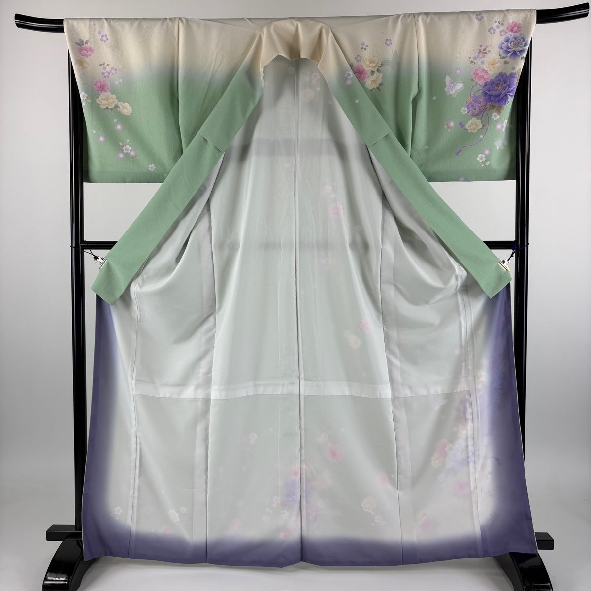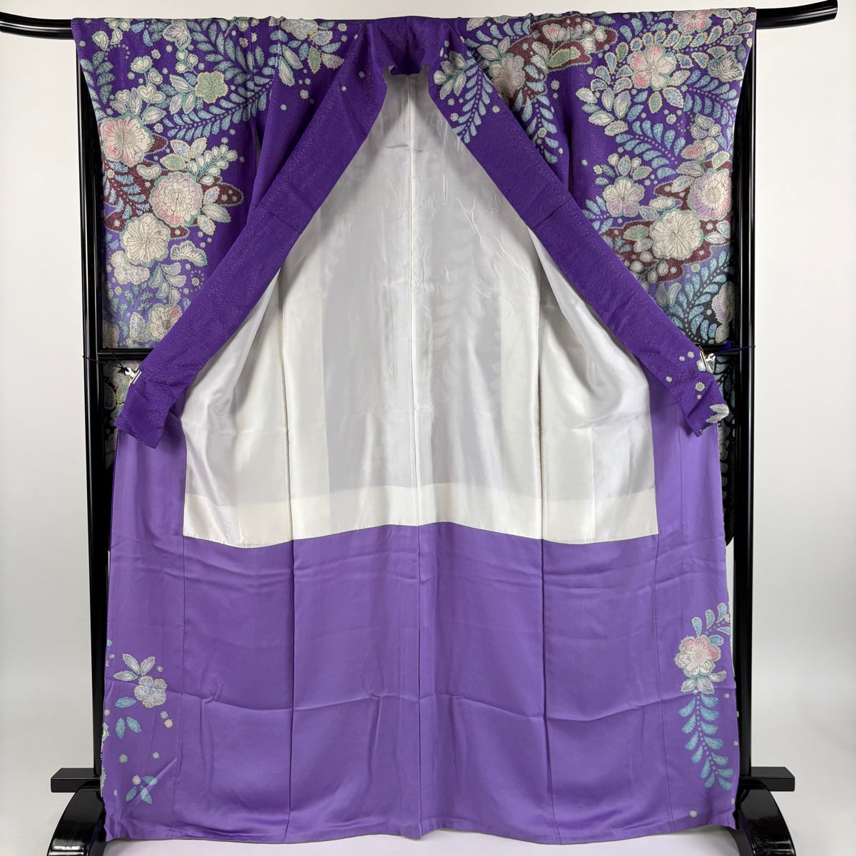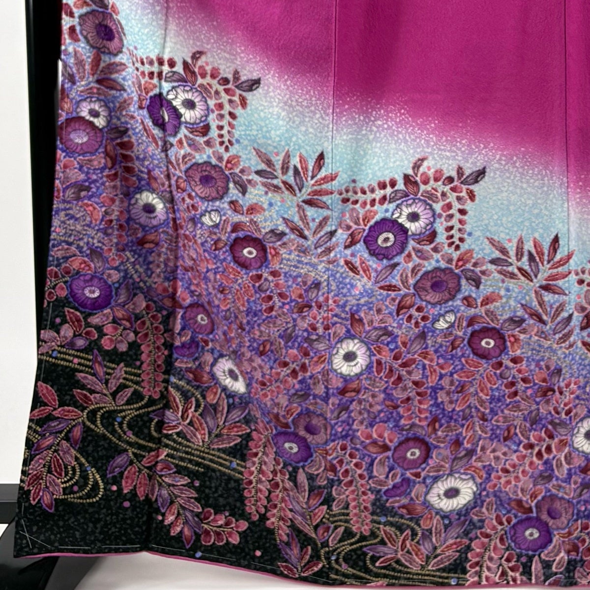 訪問着 身丈164cm 裄丈66cm M 袷 花びら 金彩 ぼかし 青紫 正絹 秀品