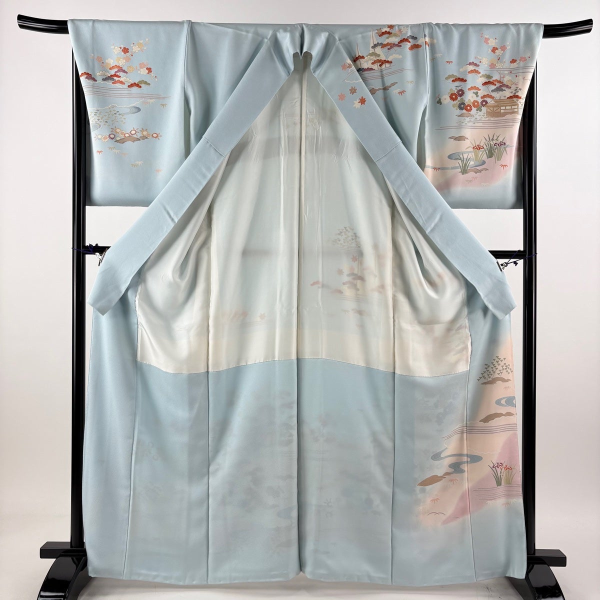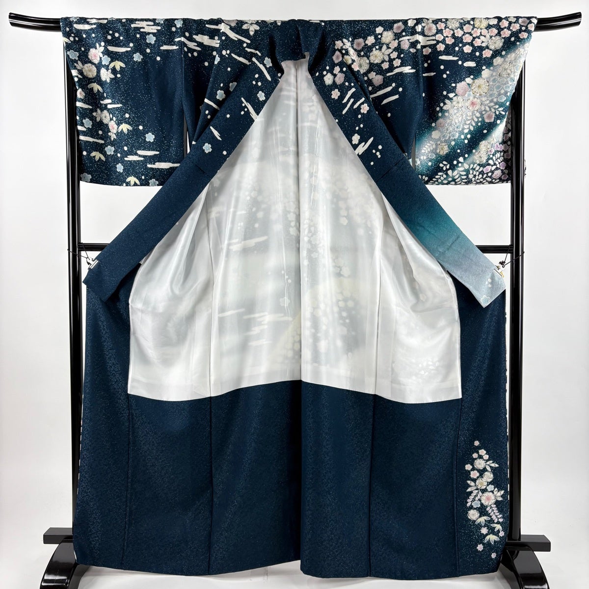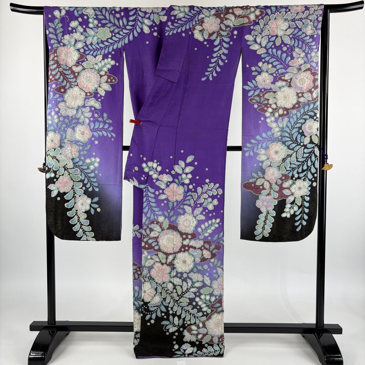 訪問着 身丈164cm 裄丈66cm M 袷 花びら 金彩 ぼかし 青紫 正絹 秀品
