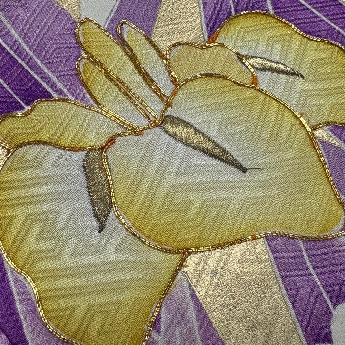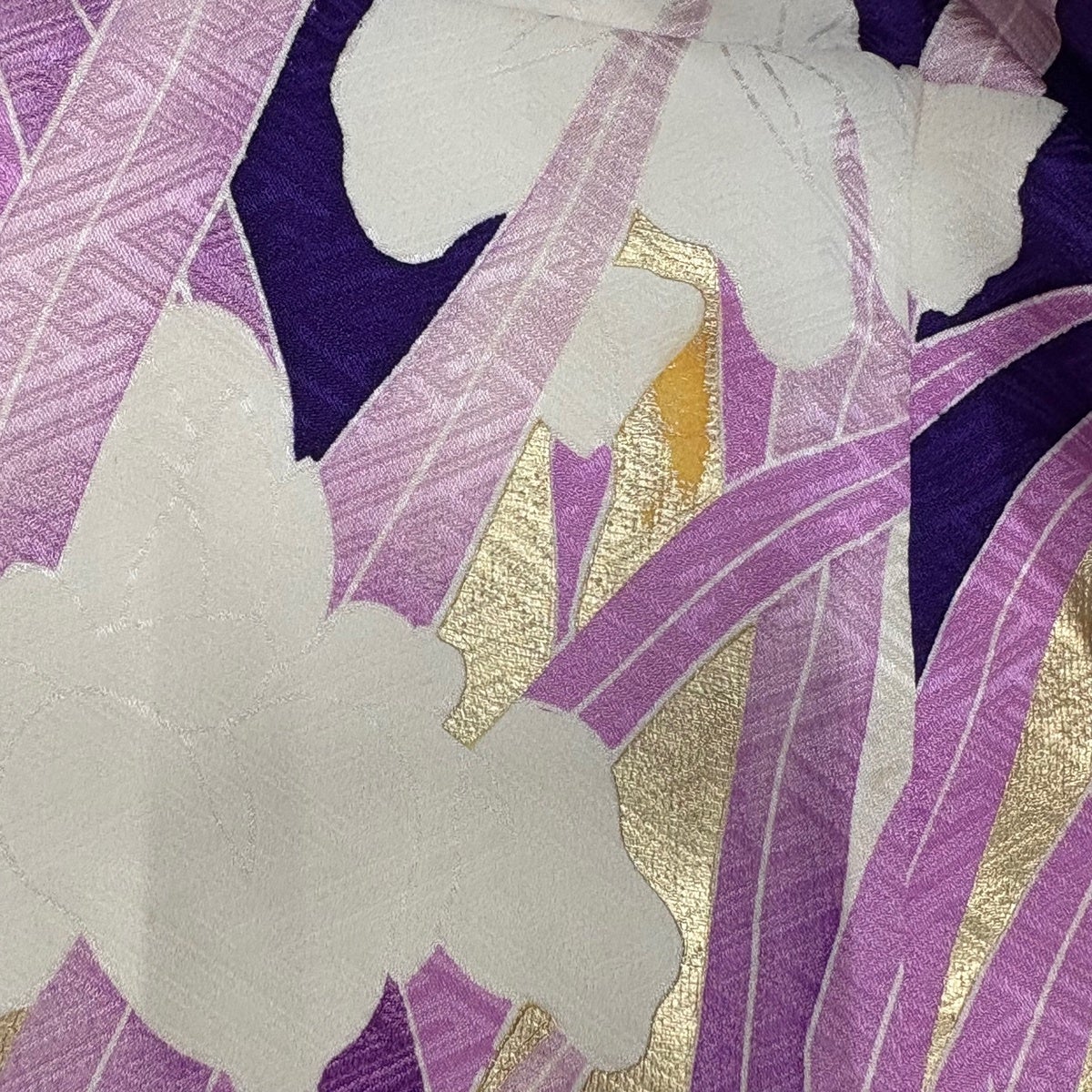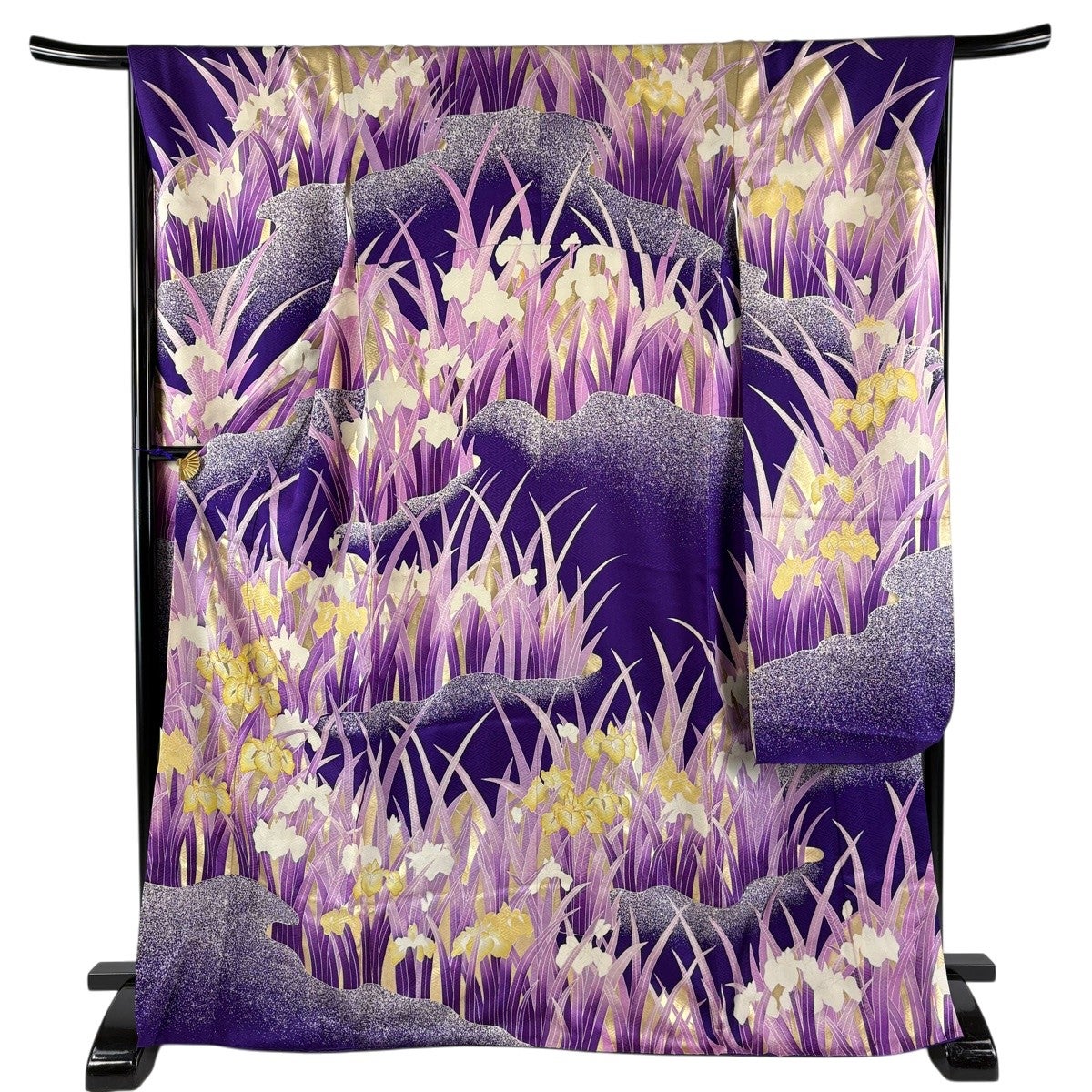 振袖 身丈168cm 裄丈66.5cm M 袷 菖蒲 金糸 金彩 紫 正絹 優品