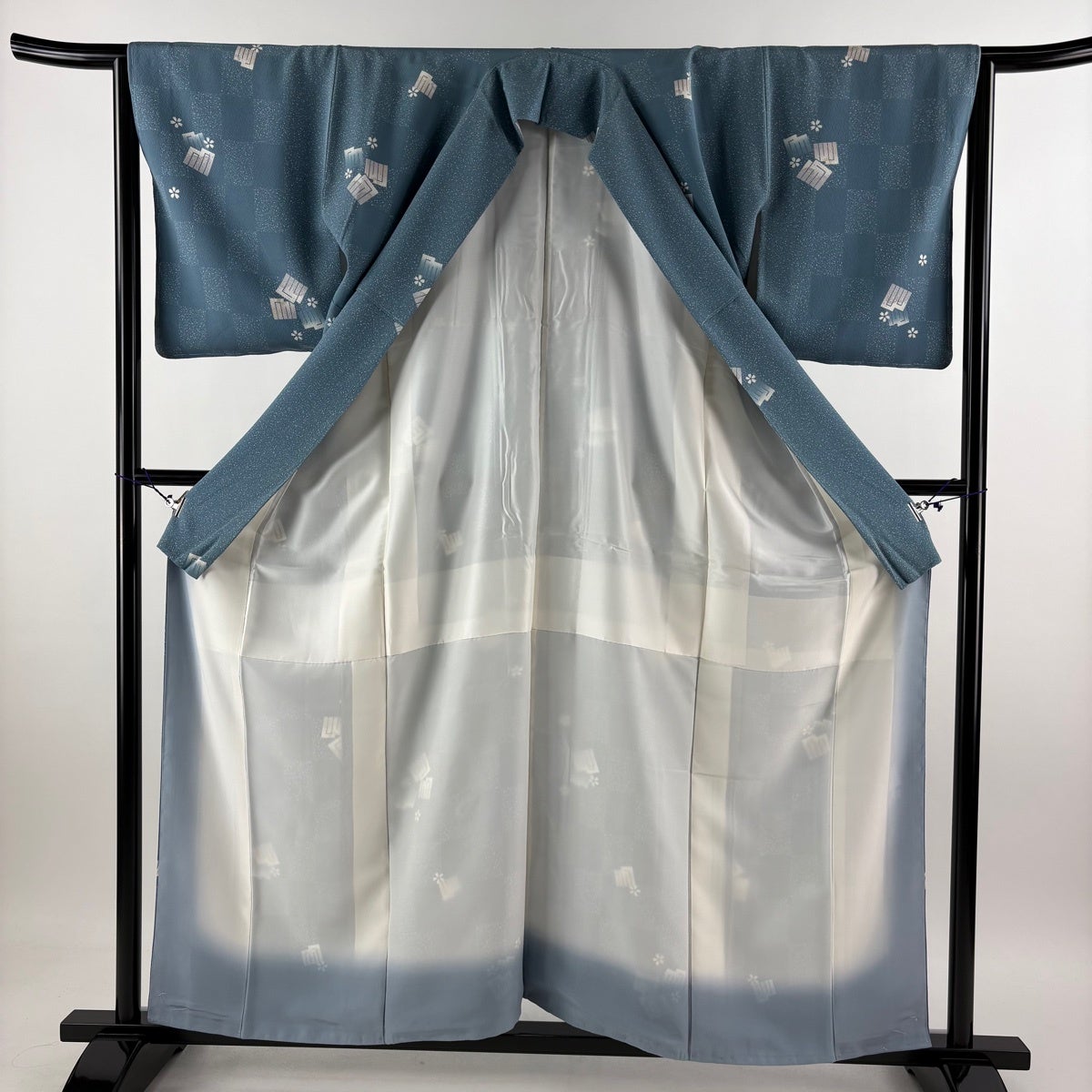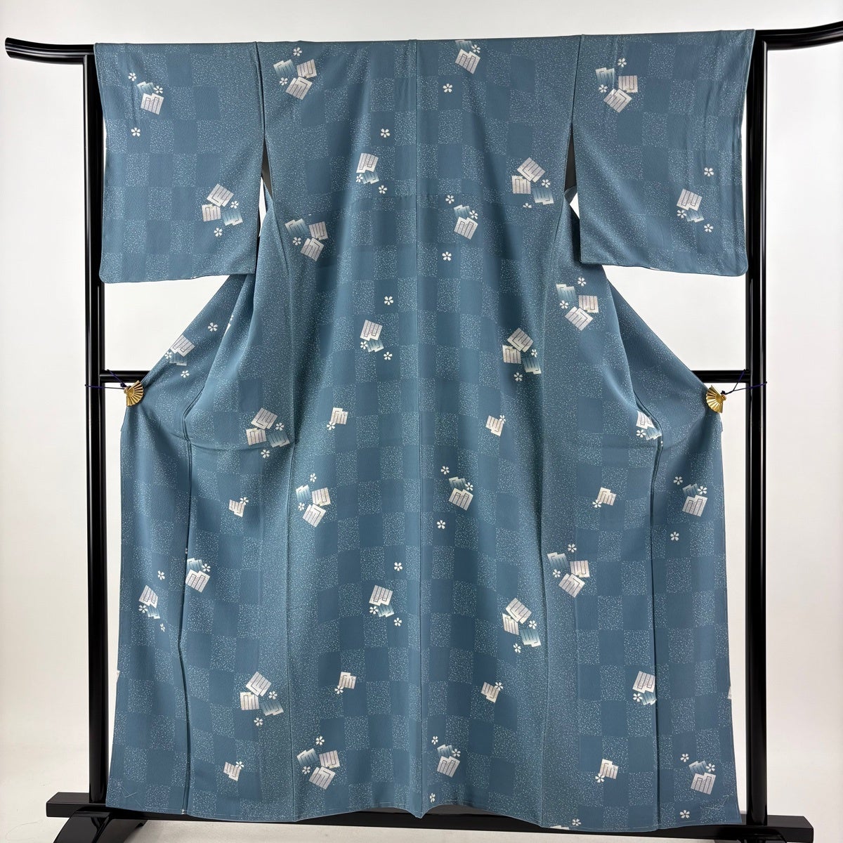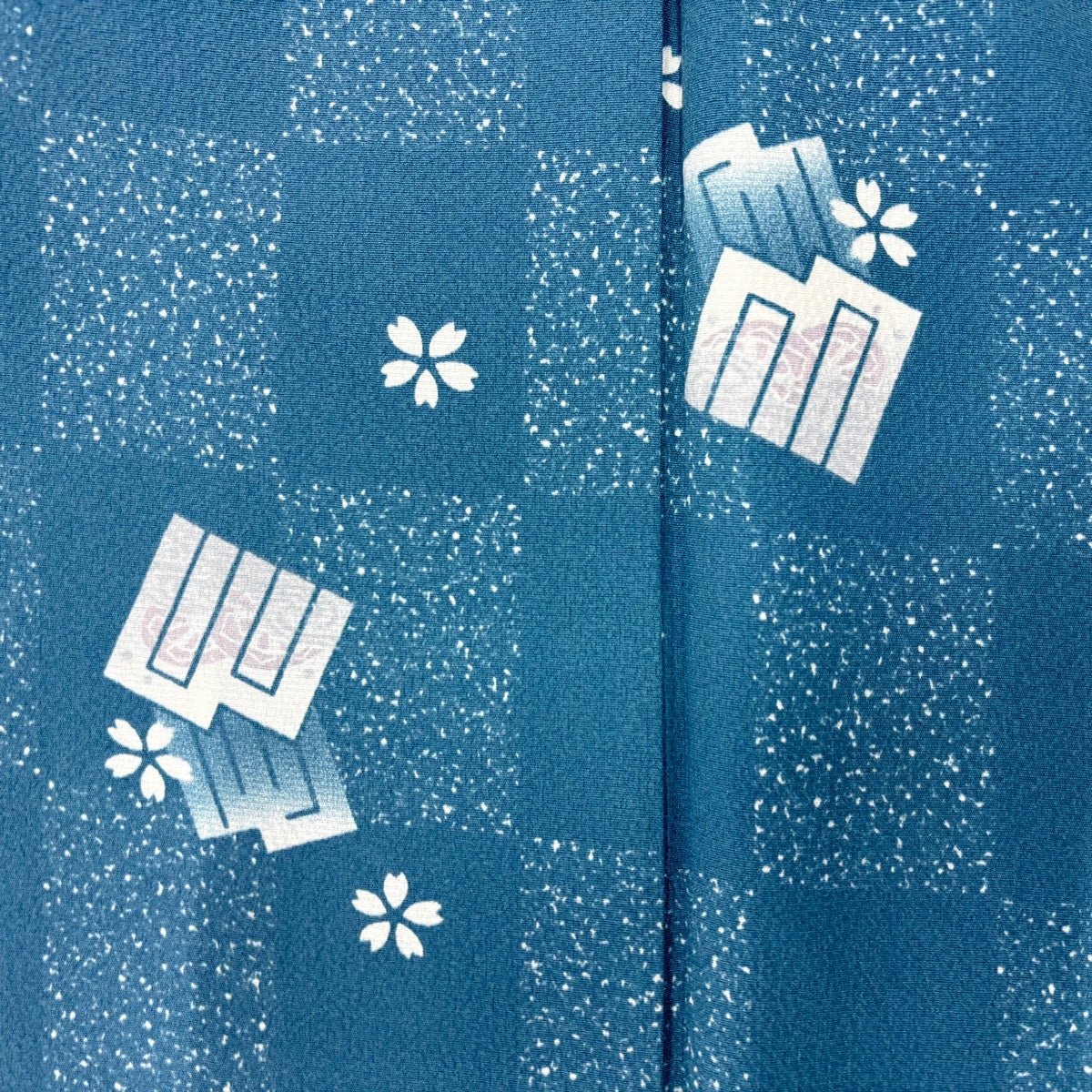 小紋 身丈158.5cm 裄丈64cm M 袷 名古屋帯セット 源氏香 桜 青灰色 正絹 秀品