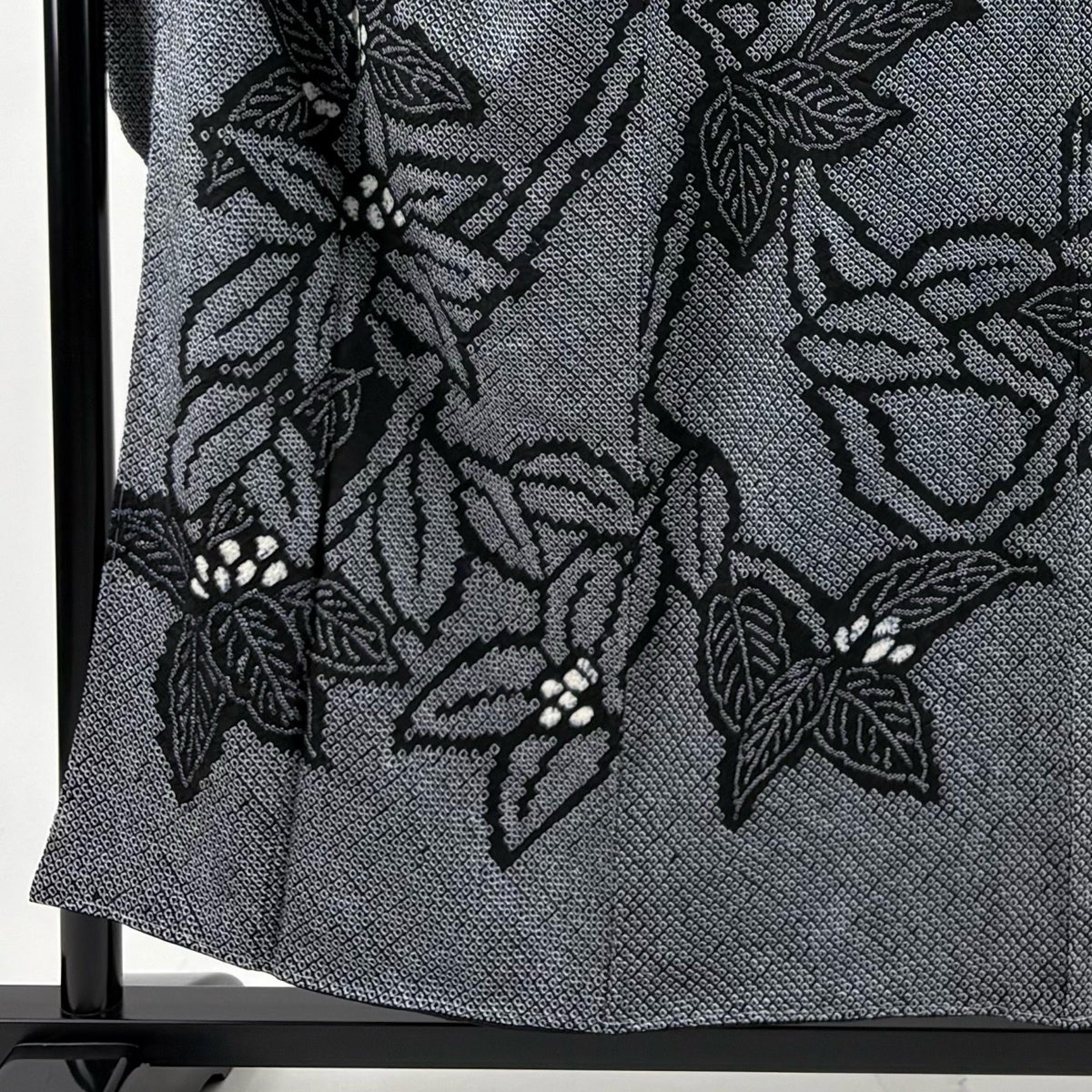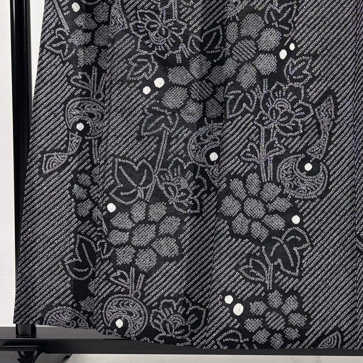 【美品】 浴衣 身丈157.5cm 裄丈63.5cm S 絞り浴衣 草花 風鈴 黒 綿 名品