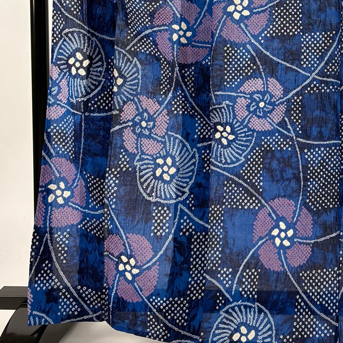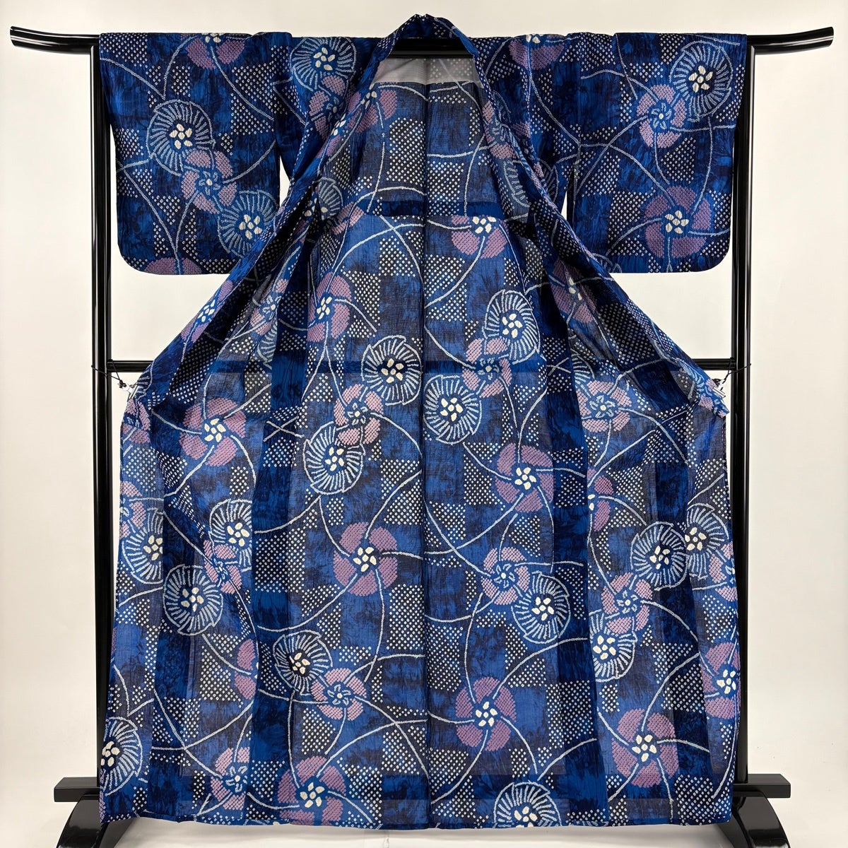 【美品】 浴衣 身丈166cm 裄丈66.5cm M 絞り浴衣 草花 青 綿 名品