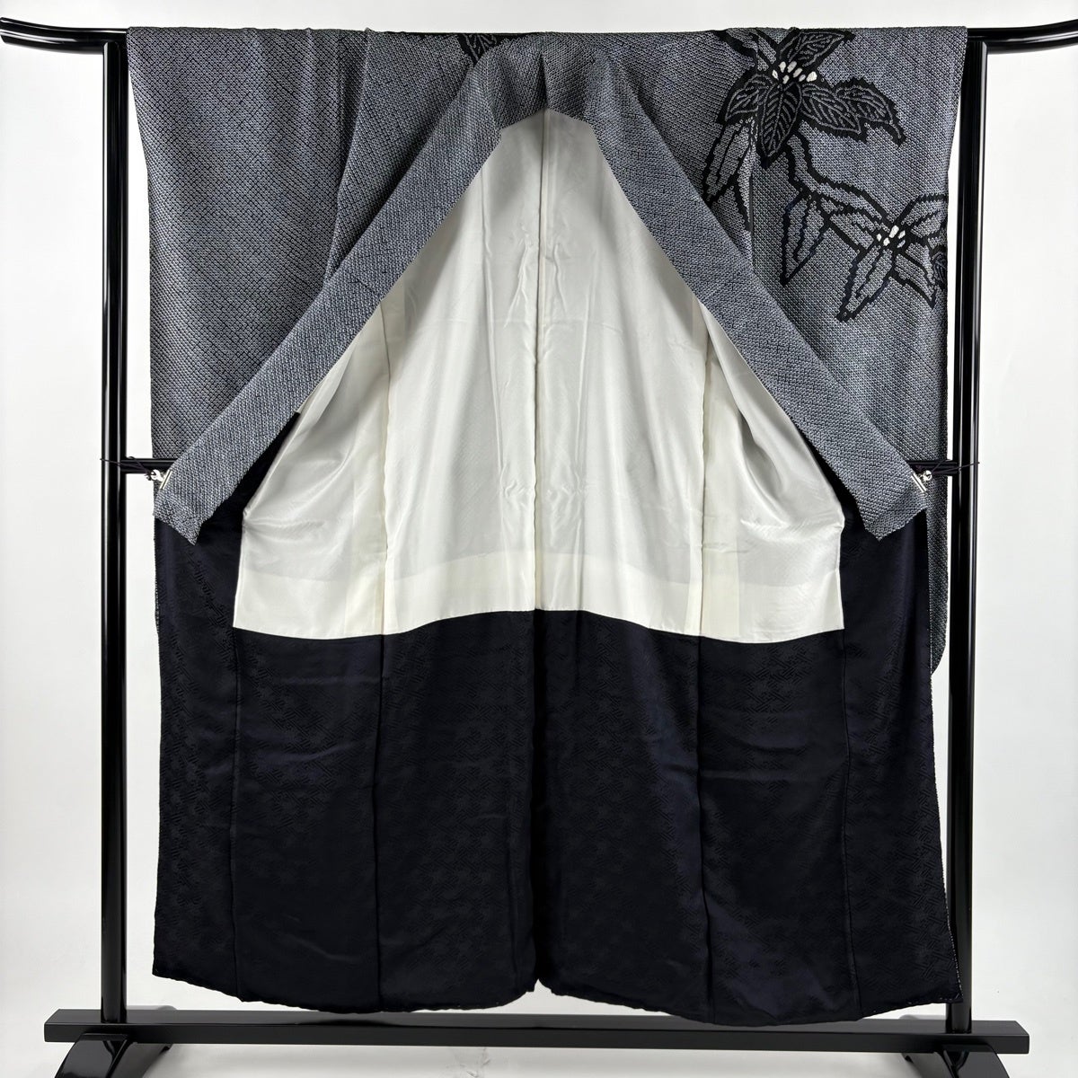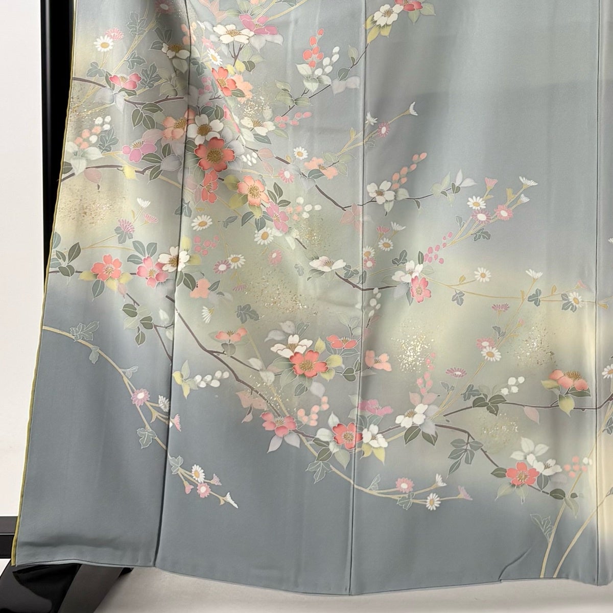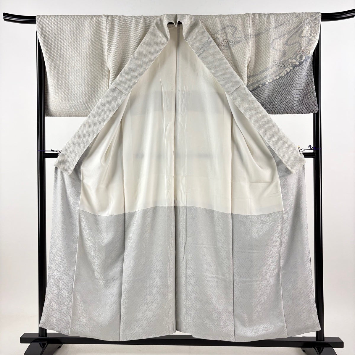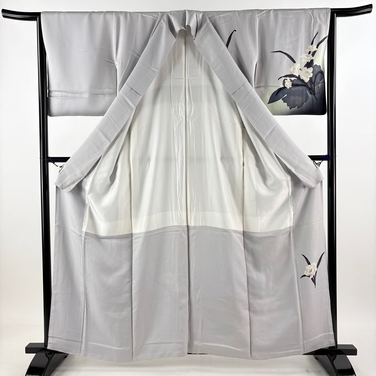 訪問着 身丈155cm 裄丈67cm M 単衣 百合 裾ぼかし 灰色 正絹 秀品