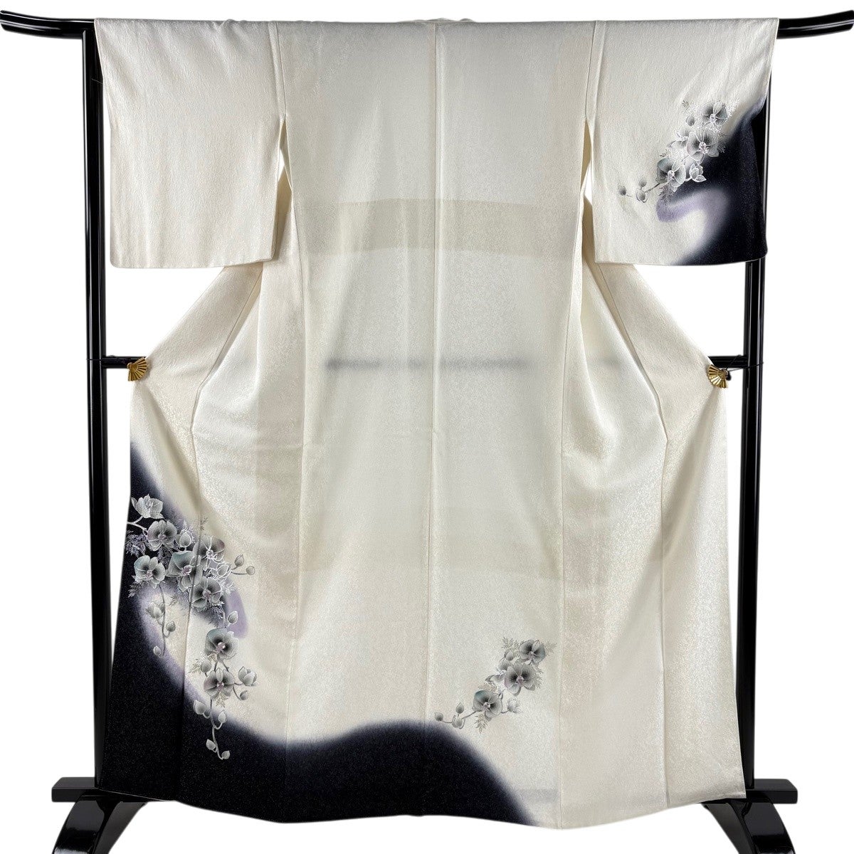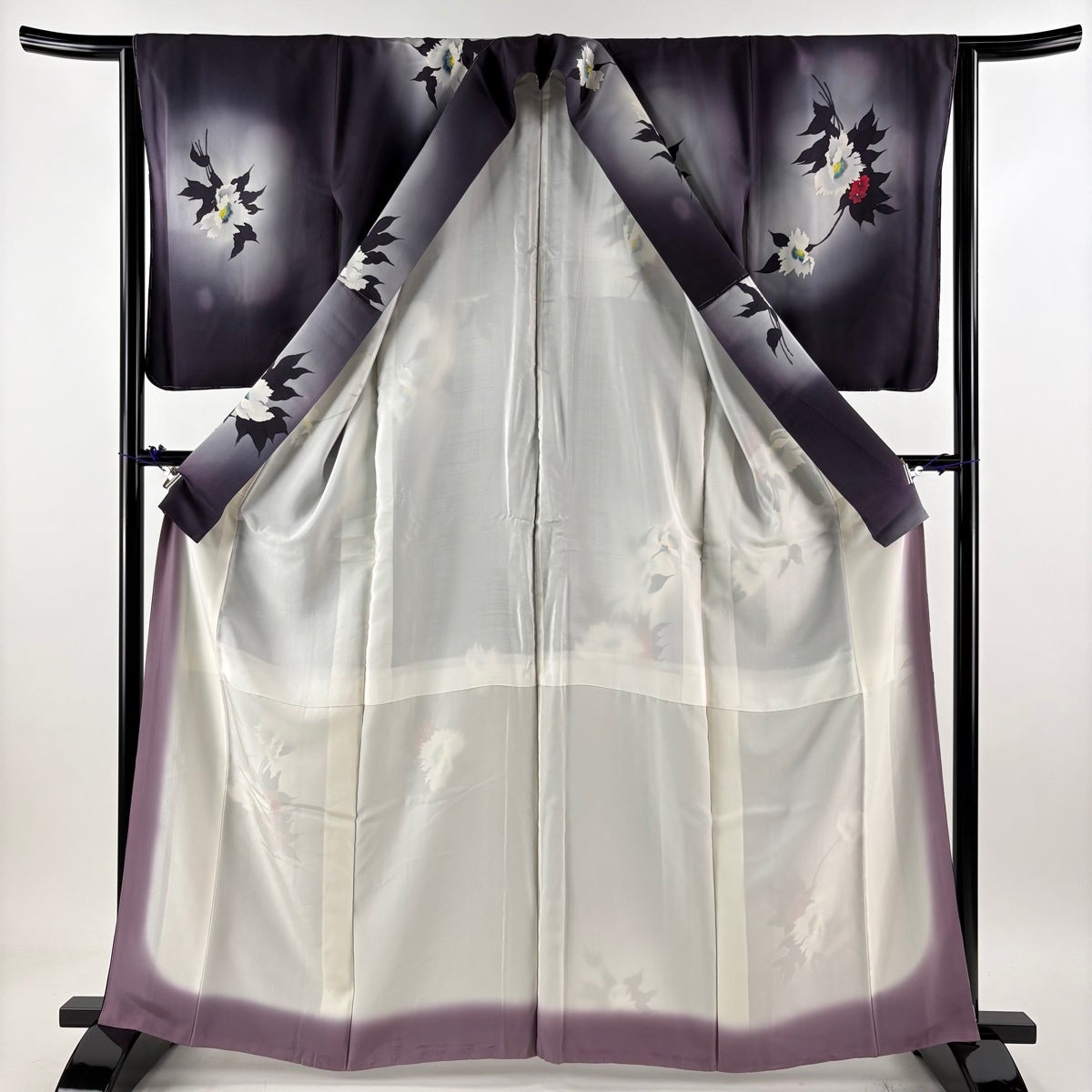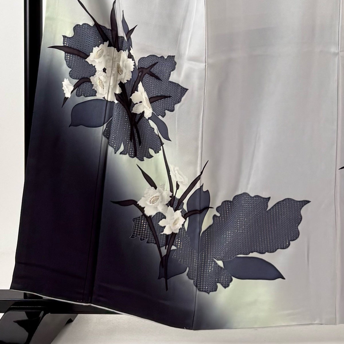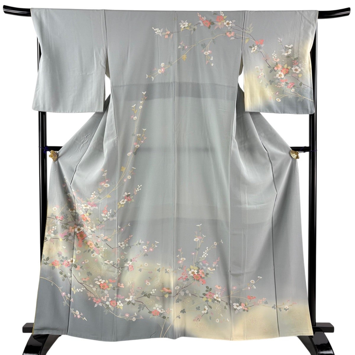 訪問着 身丈155cm 裄丈67cm M 単衣 百合 裾ぼかし 灰色 正絹 秀品