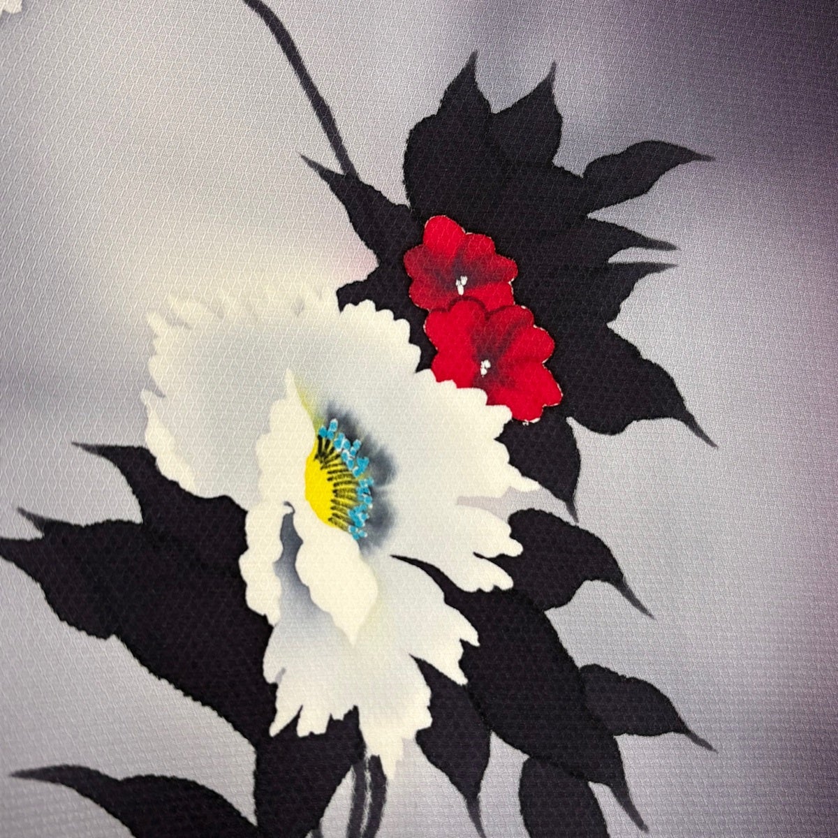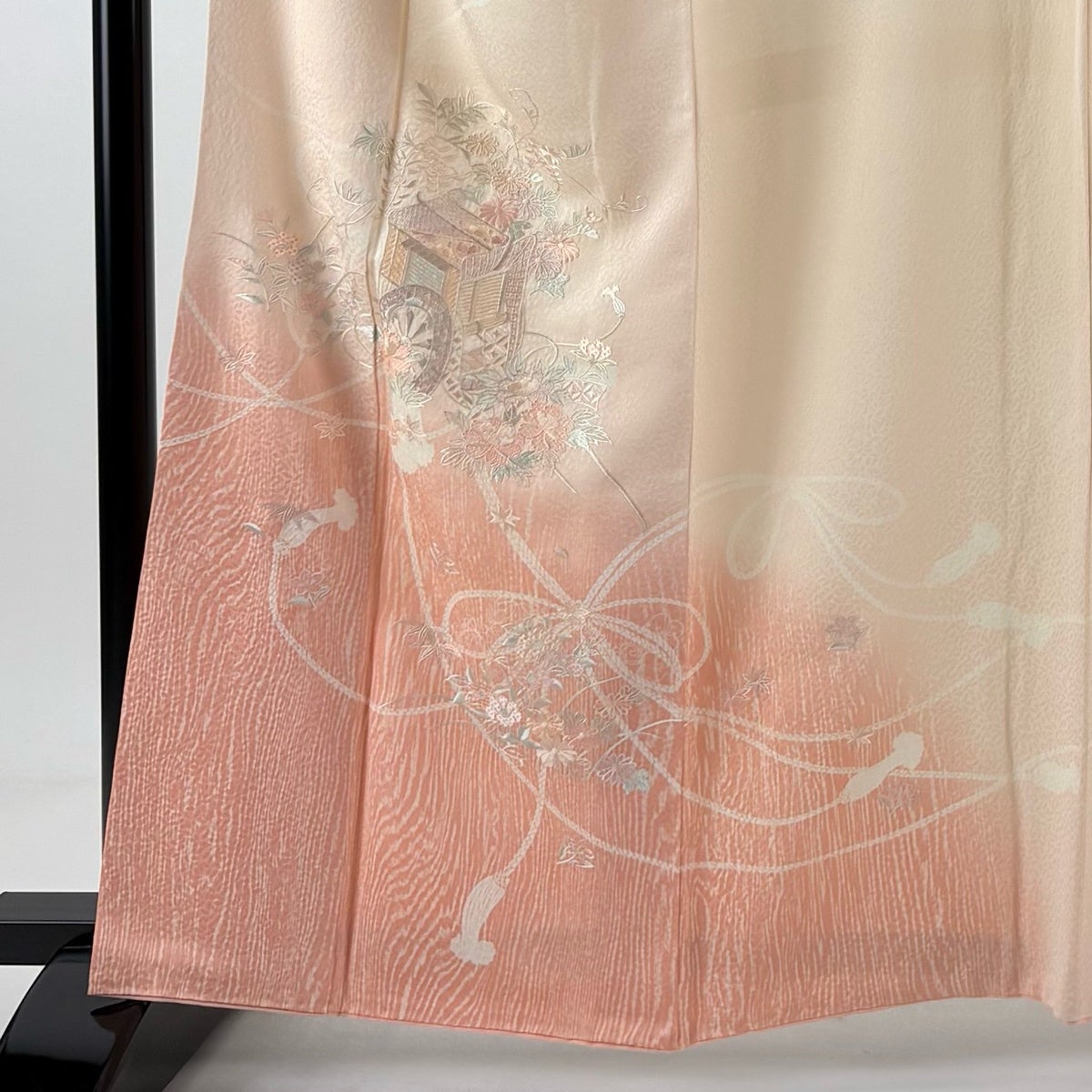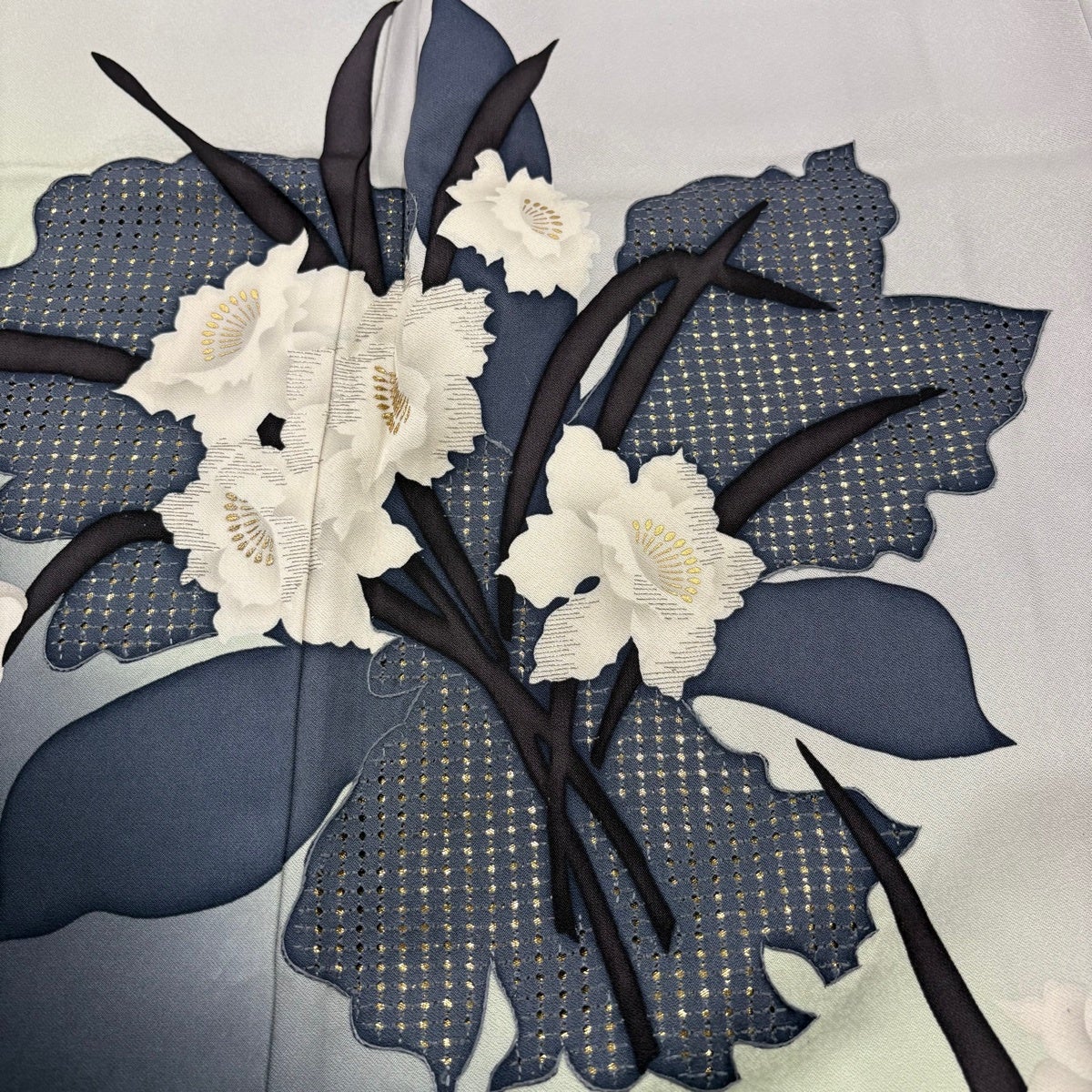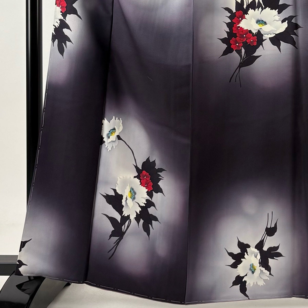 訪問着 身丈155cm 裄丈67cm M 単衣 百合 裾ぼかし 灰色 正絹 秀品