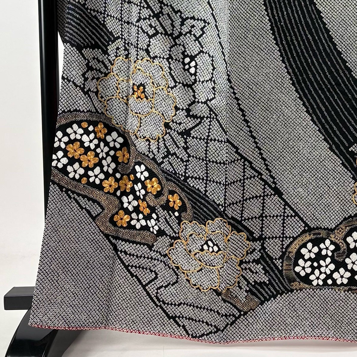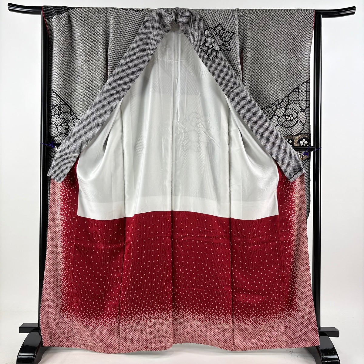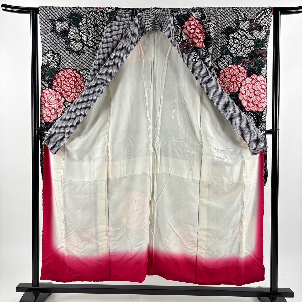 振袖 身丈155cm 裄丈62.5cm S 袷 草花 総絞り 黒 正絹 名品