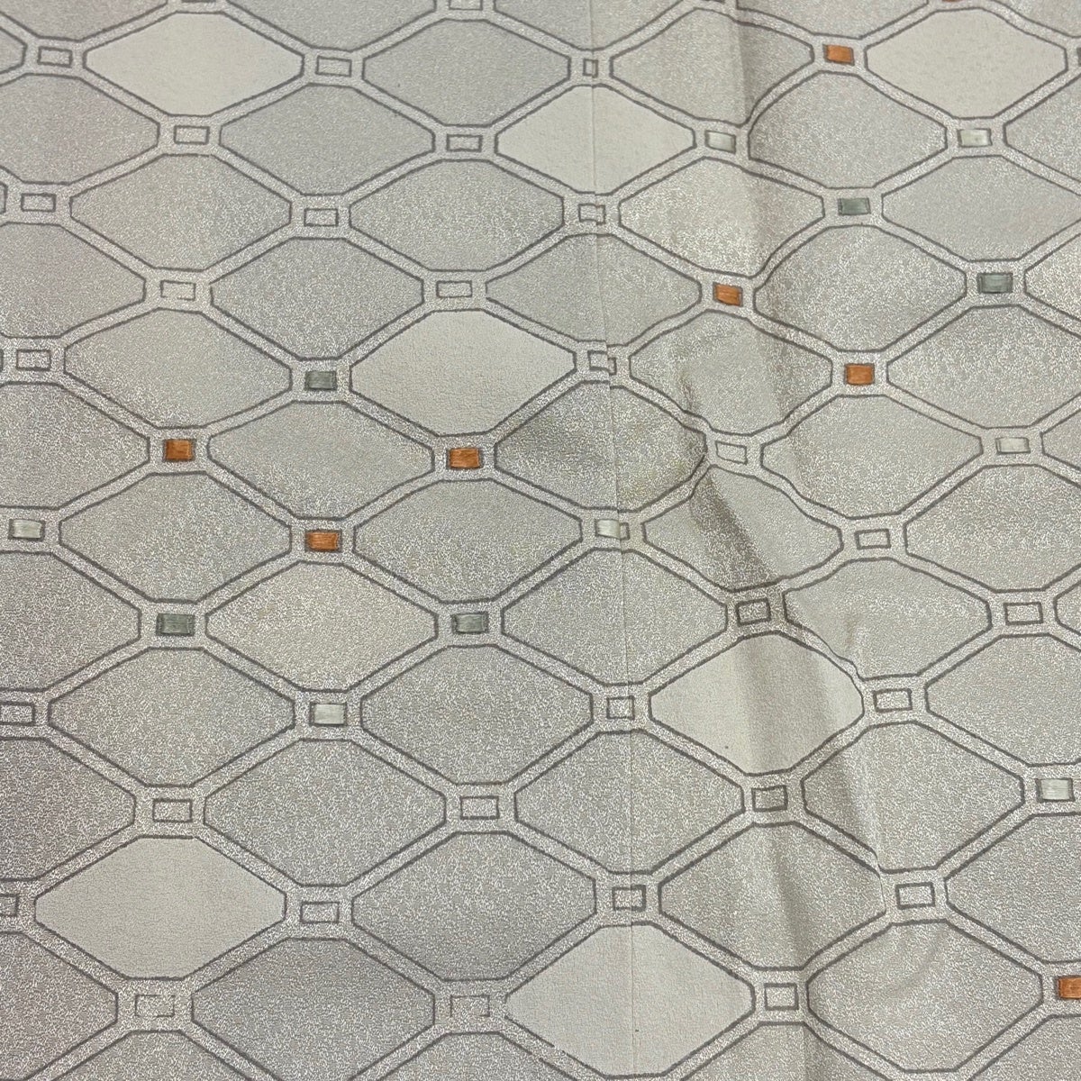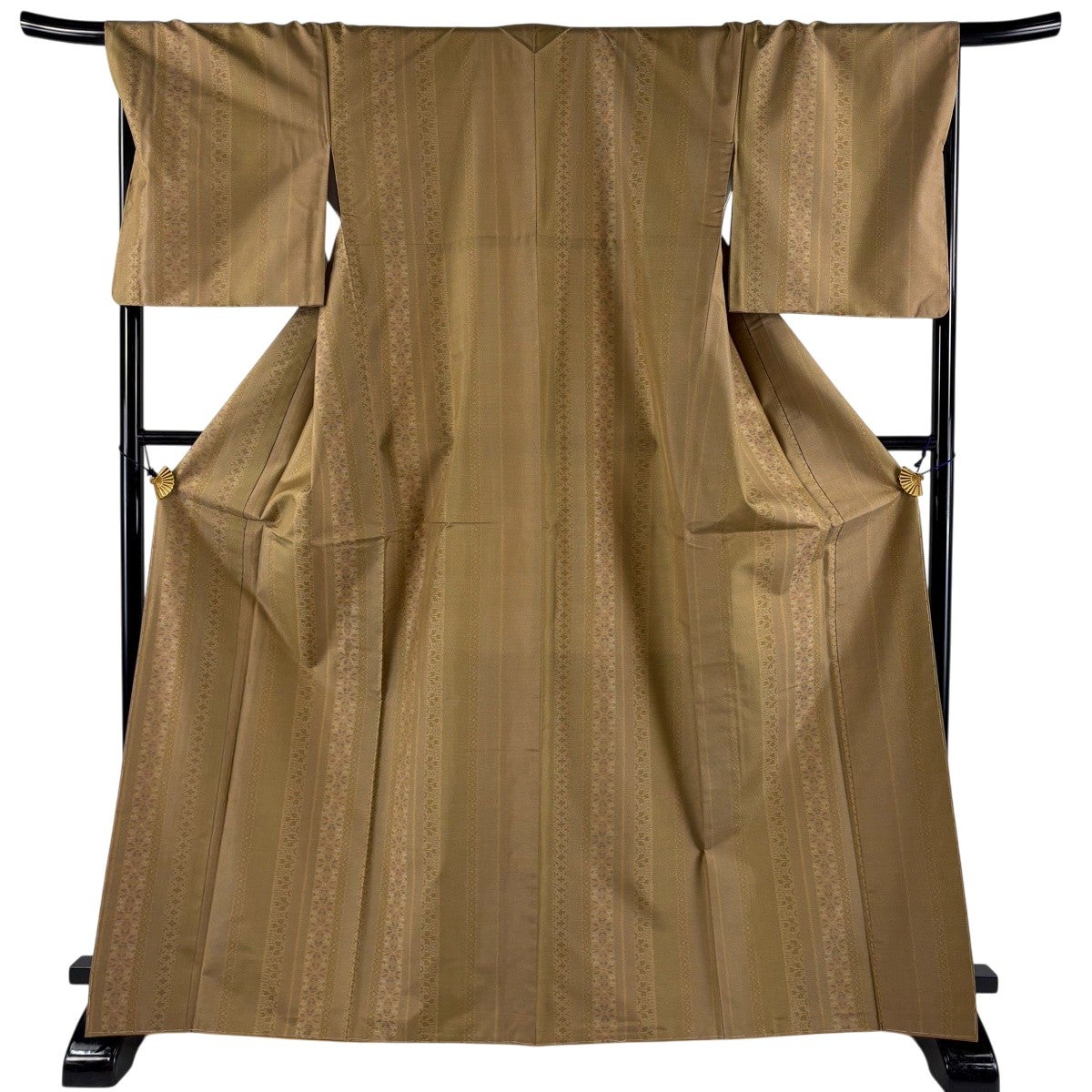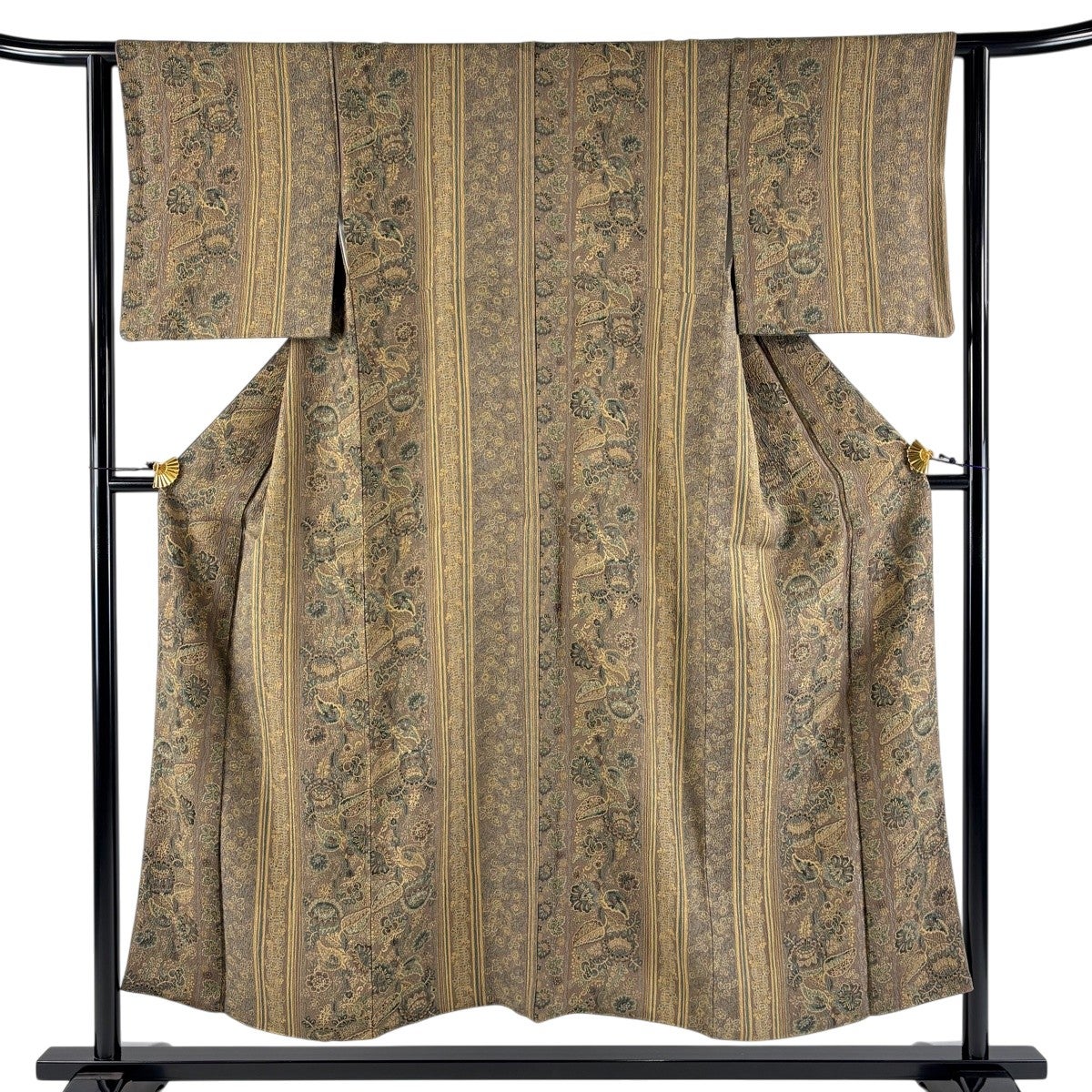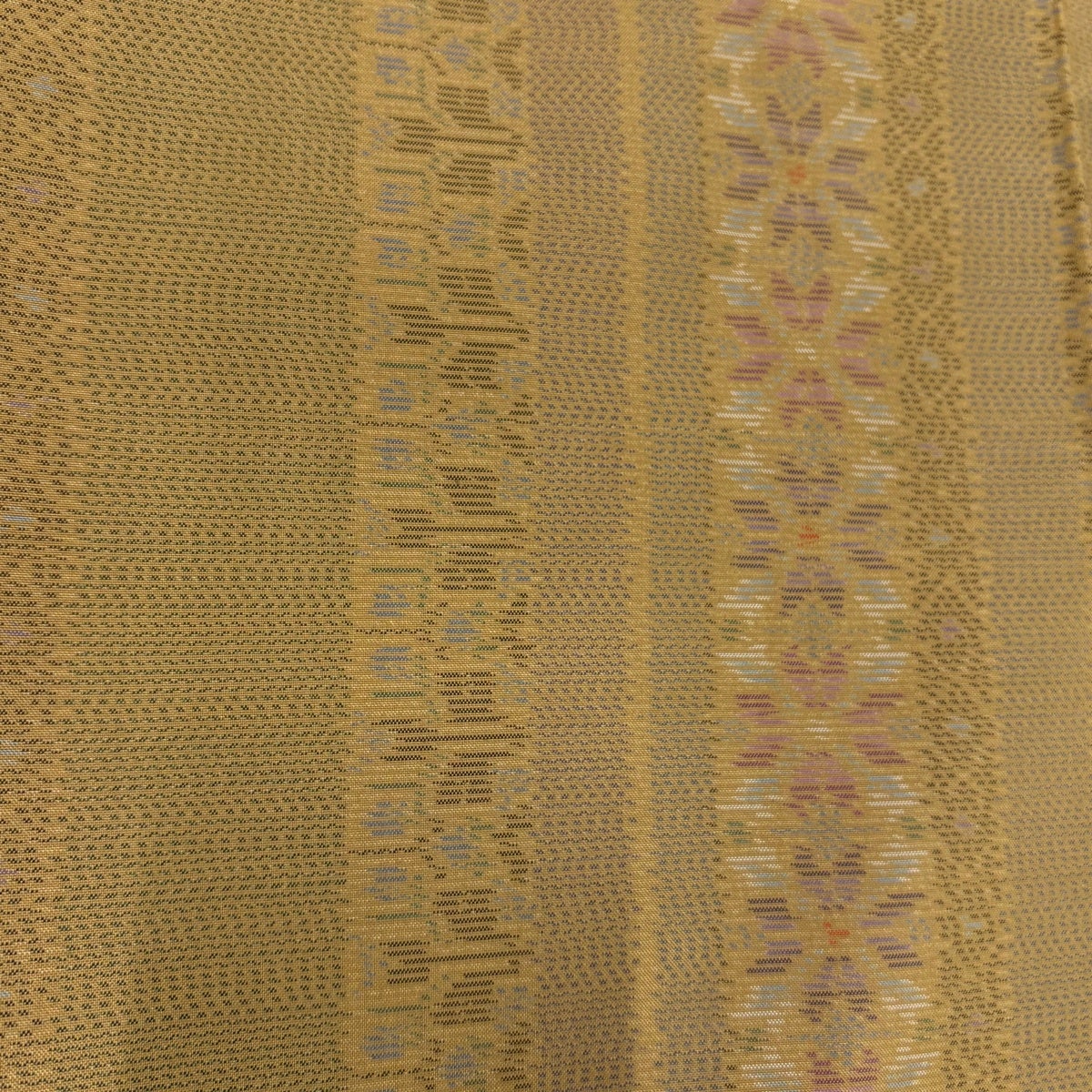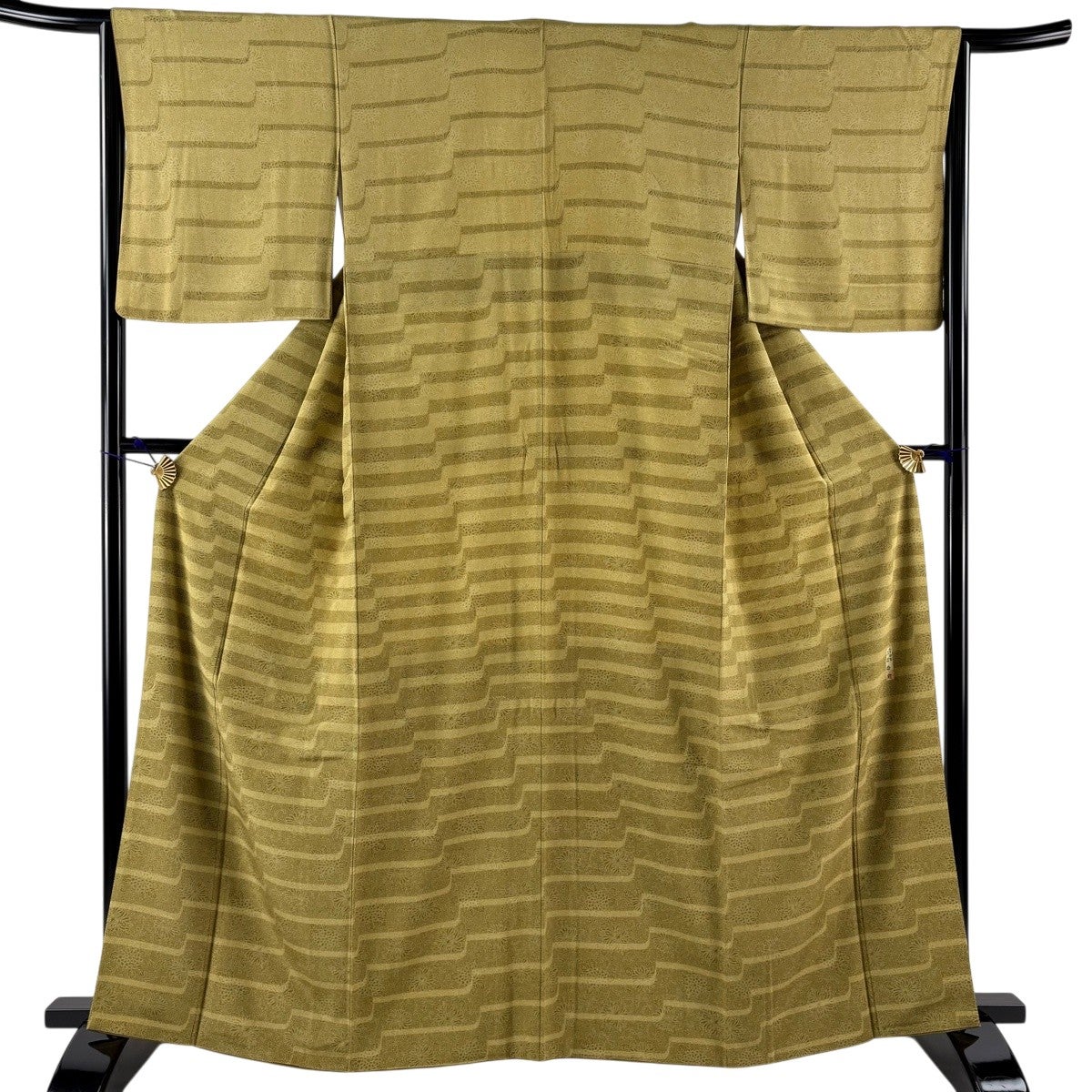 【美品】 紬 身丈167.5cm 裄丈68cm L 袷 ほていや 縦縞 幾何学模様 山吹茶色 正絹 優品