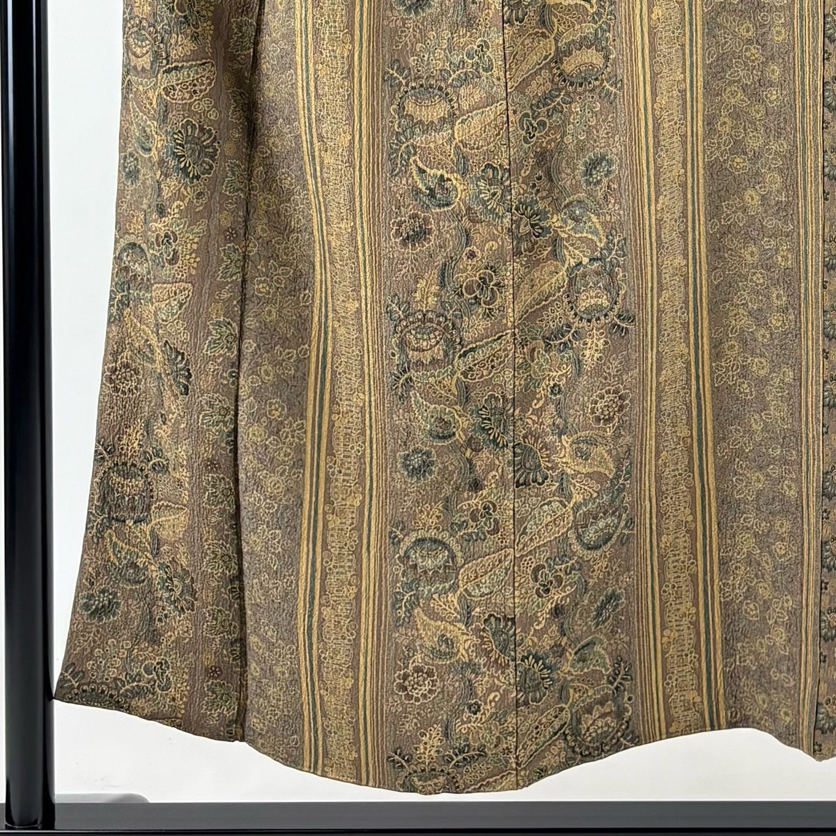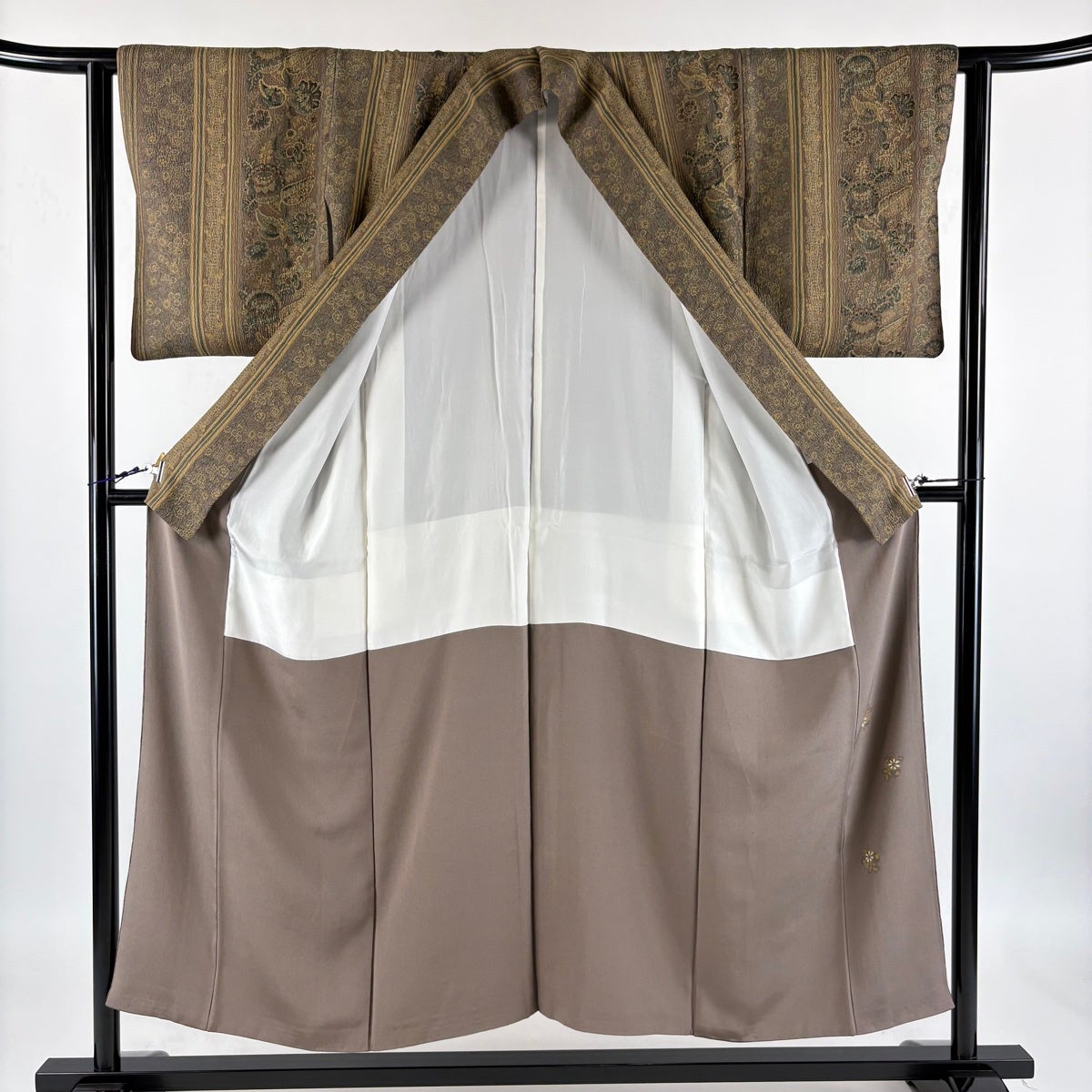 小紋 身丈151cm 裄丈61.5cm S 袷 草花 地紋 灰茶 正絹 優品