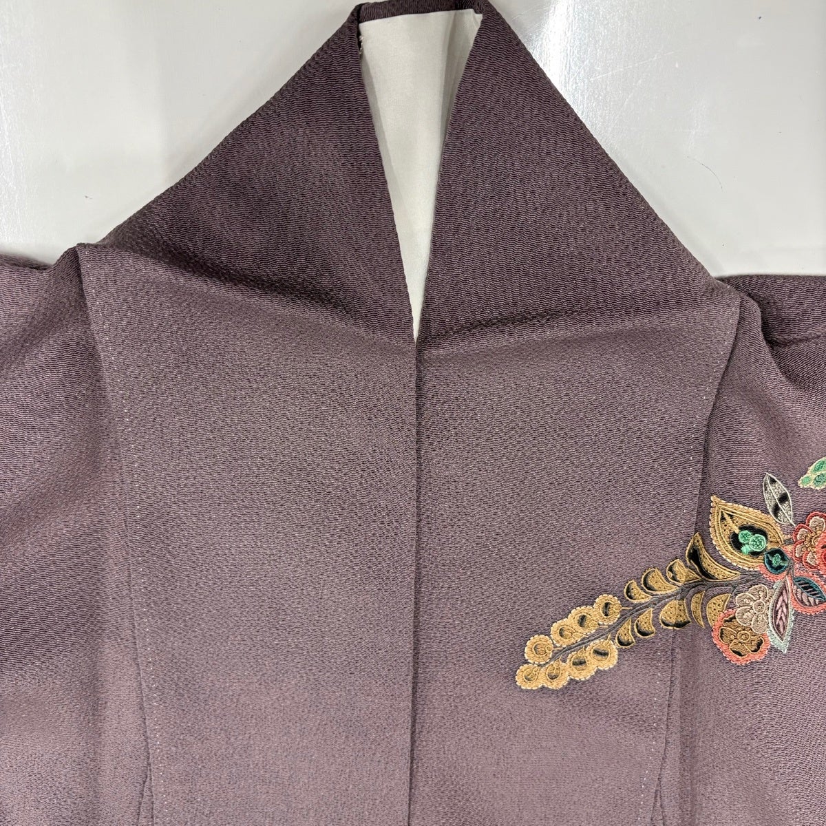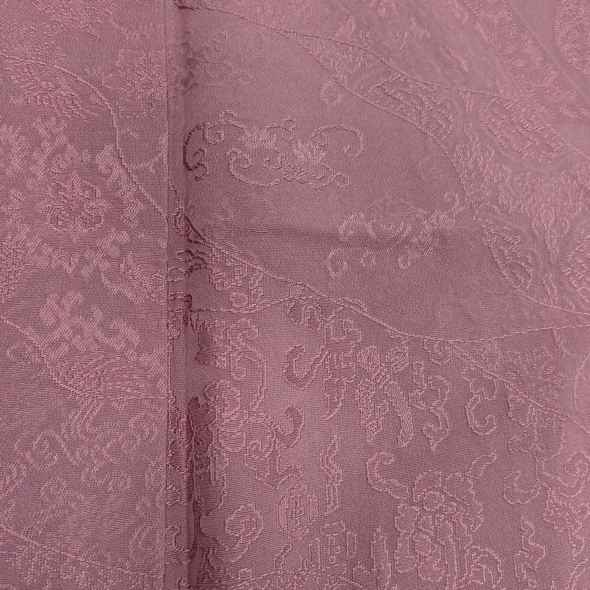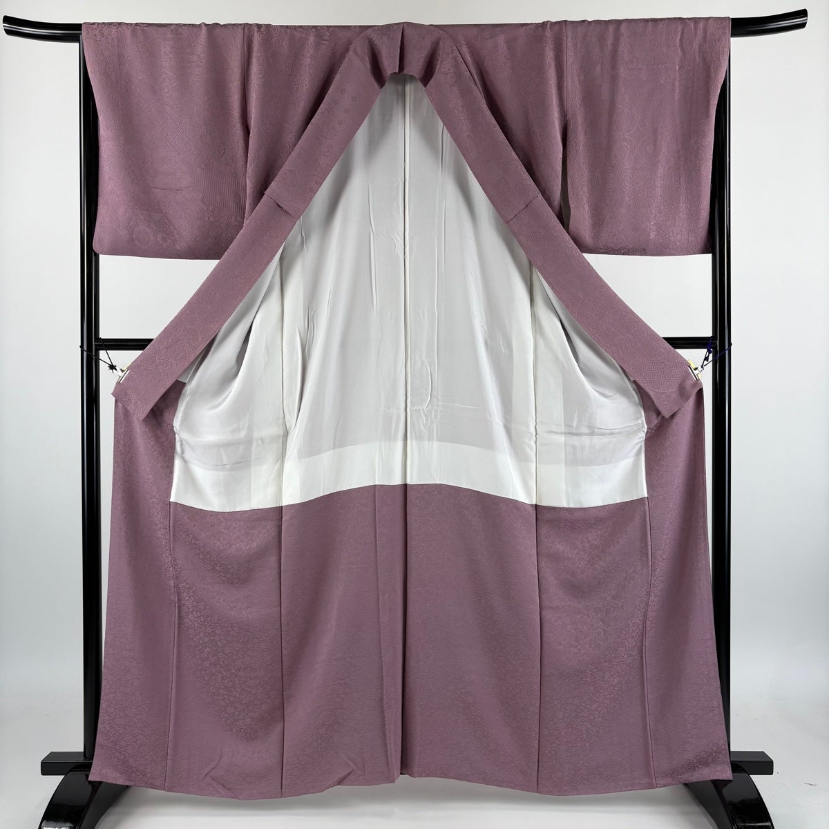 色無地 身丈162cm 裄丈66.5cm M 袷 地紋 紫 正絹 優品 三つ紋