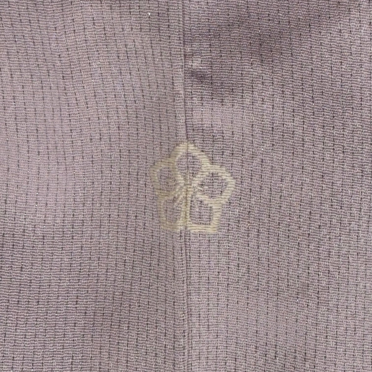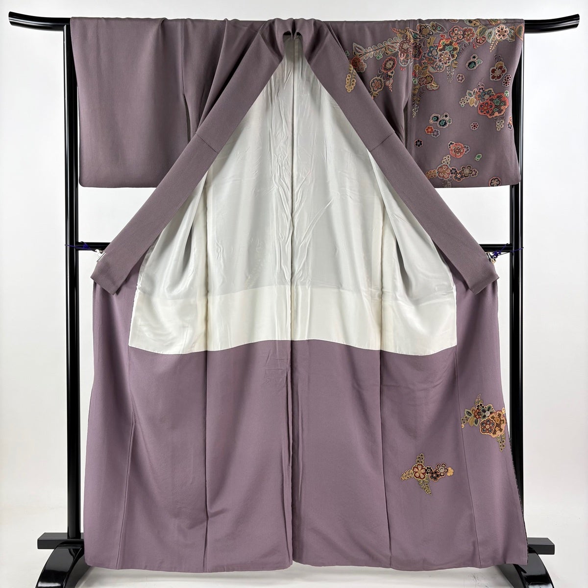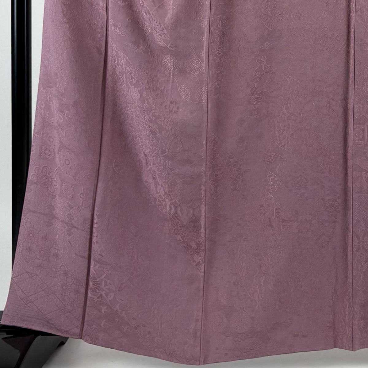 色無地 身丈162cm 裄丈66.5cm M 袷 地紋 紫 正絹 優品 三つ紋