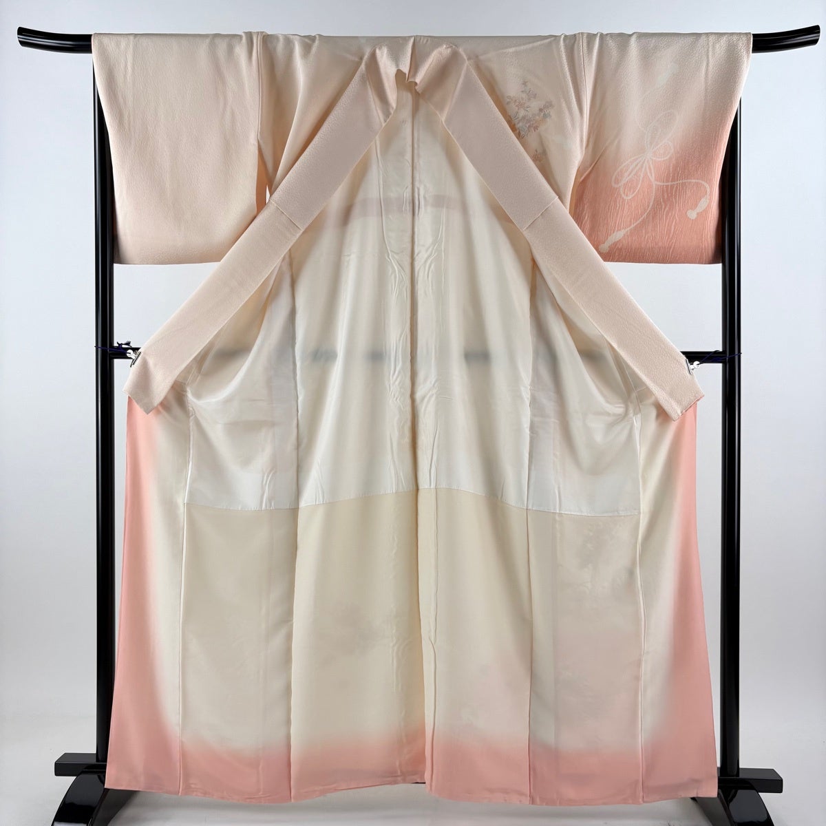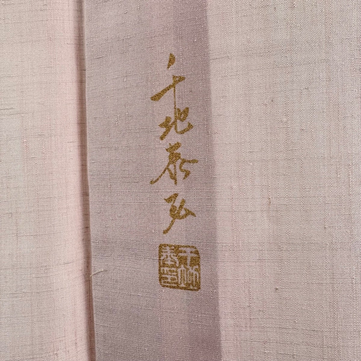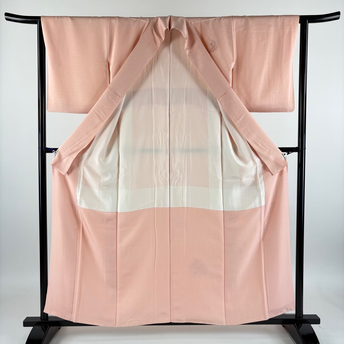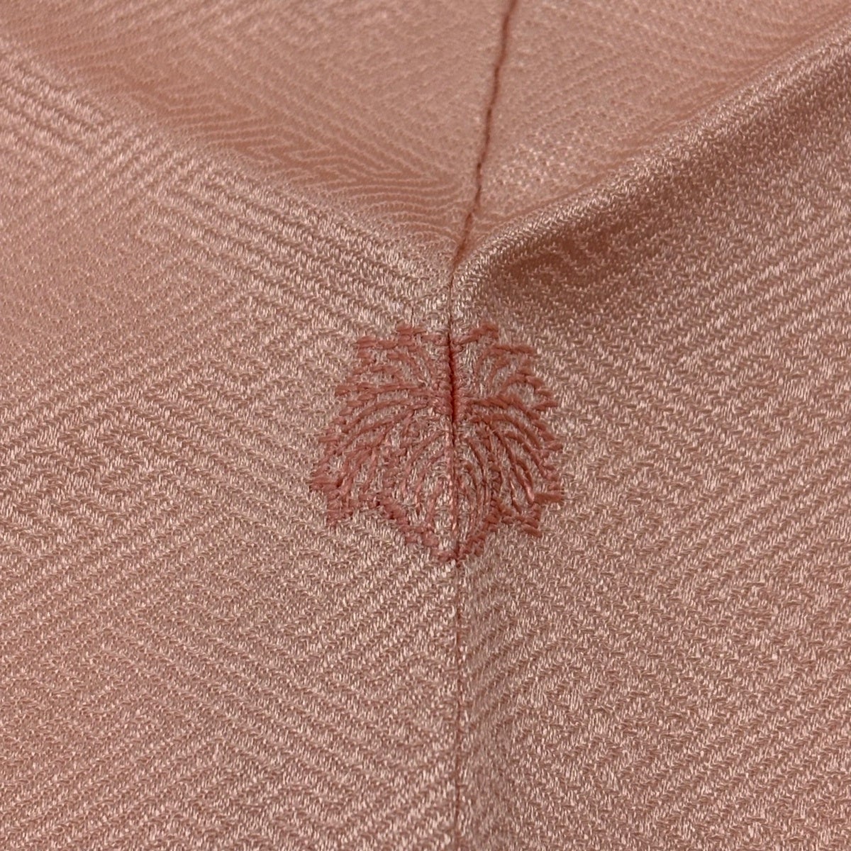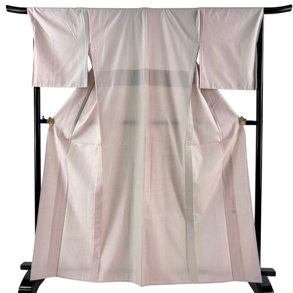 色無地 身丈165.5cm 裄丈66cm M 袷 人間国宝 羽田登喜男 落款あり 縮緬 ピンク 正絹 秀品