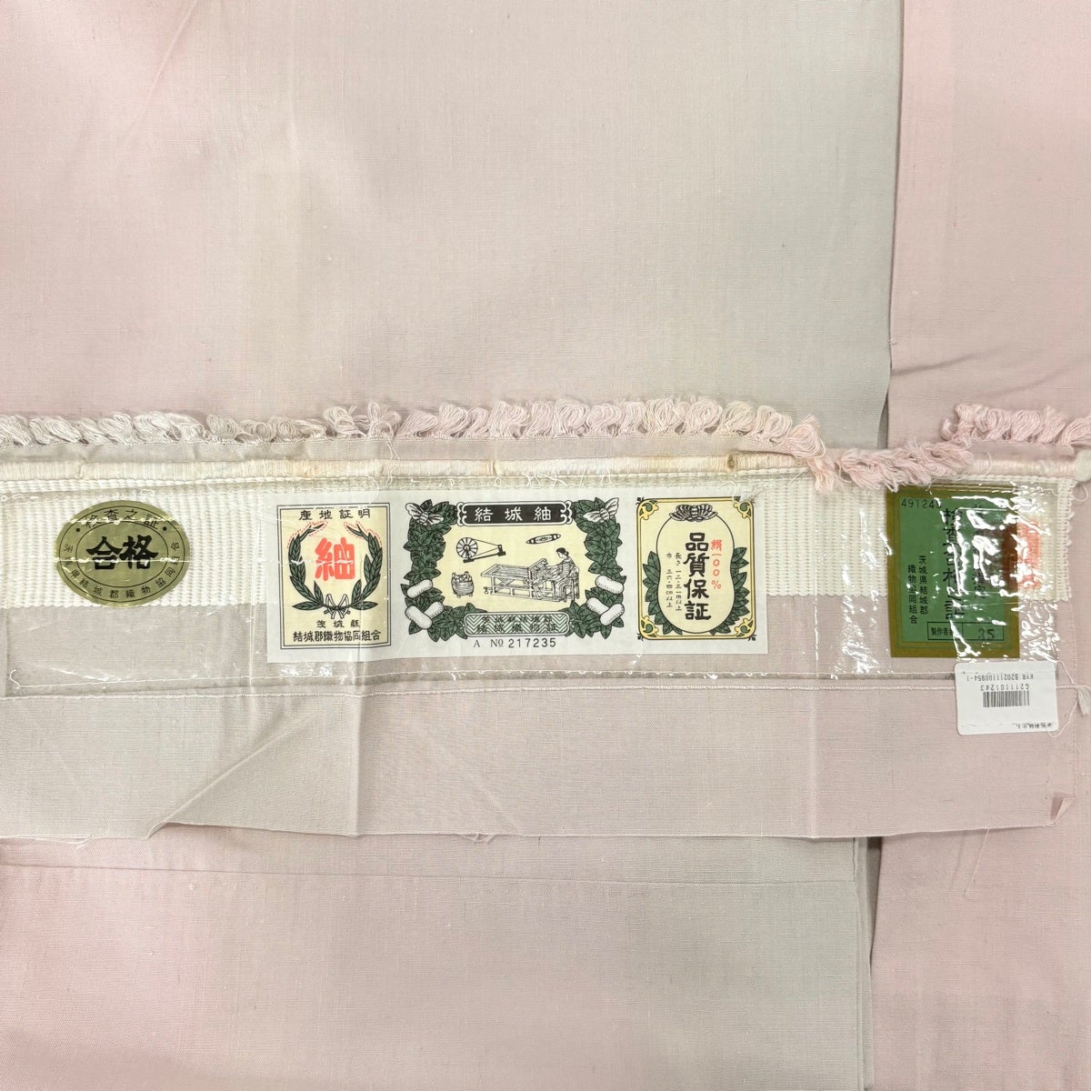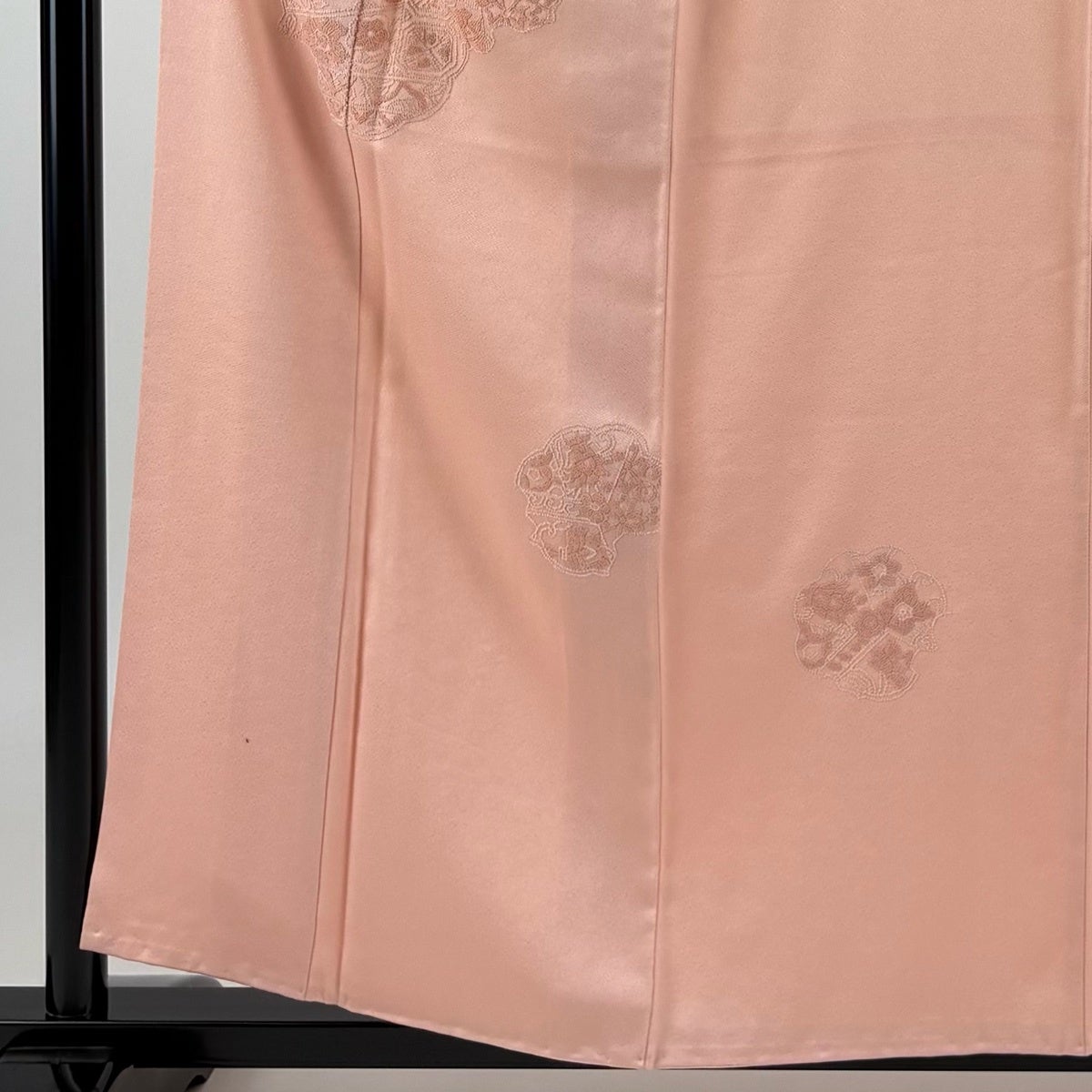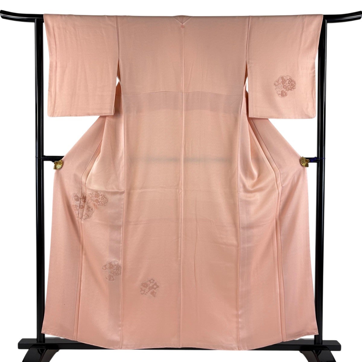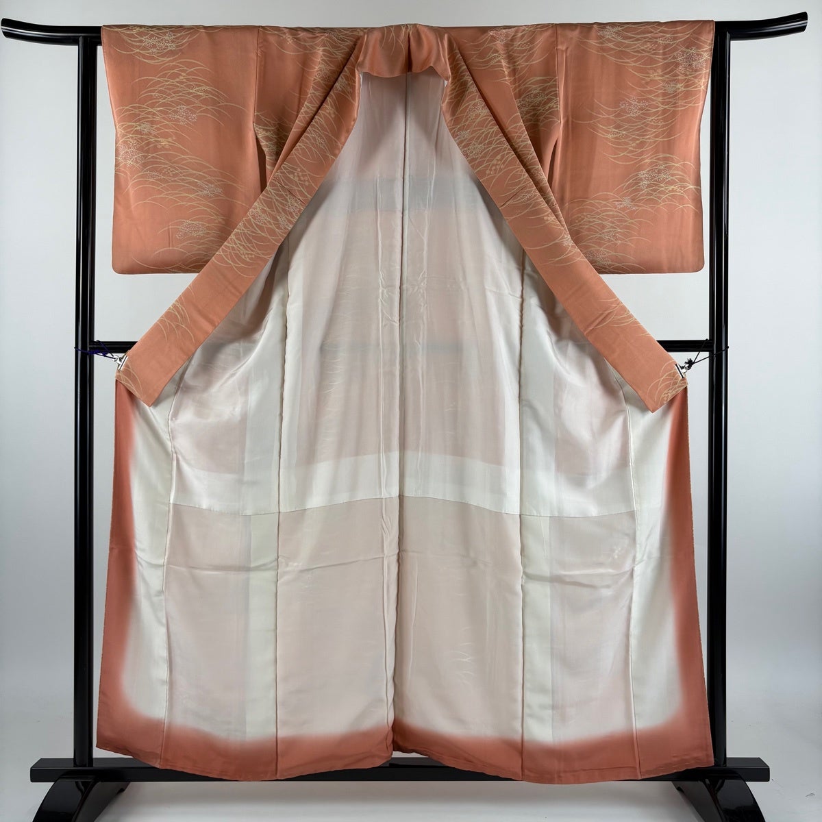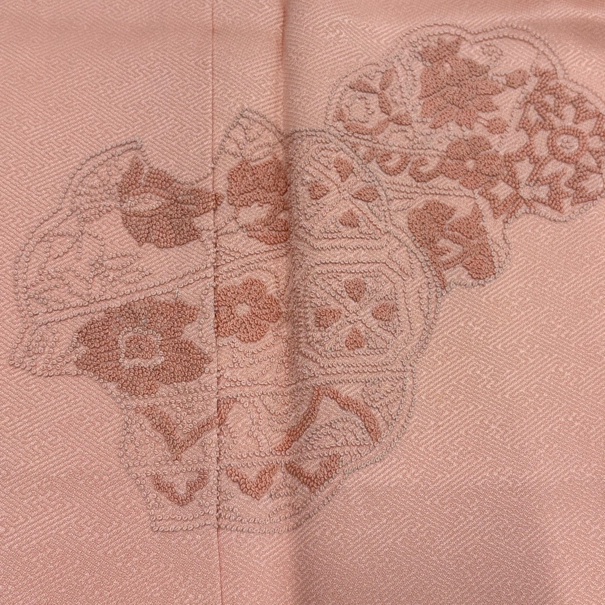 色無地 身丈165.5cm 裄丈66cm M 袷 人間国宝 羽田登喜男 落款あり 縮緬 ピンク 正絹 秀品