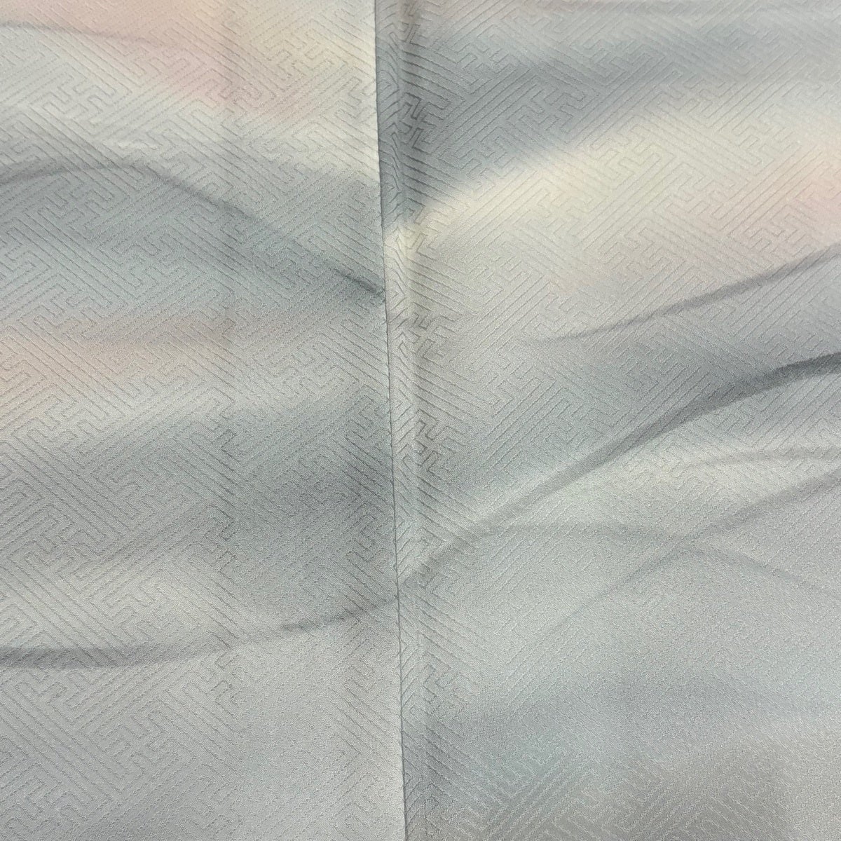 小紋 身丈163cm 裄丈66cm M 紗袷 ぼかし柄 地紋 薄緑 正絹 秀品