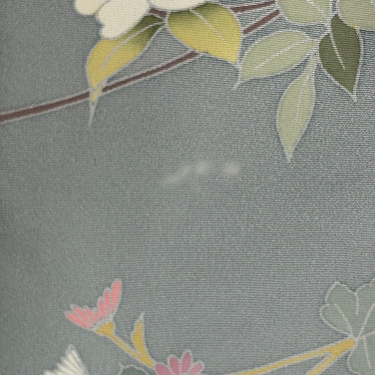【美品】 小紋 身丈153cm 裄丈62.5cm S 薄物 バチ衿 鳥 草花 ぼかし 灰色 正絹 秀品