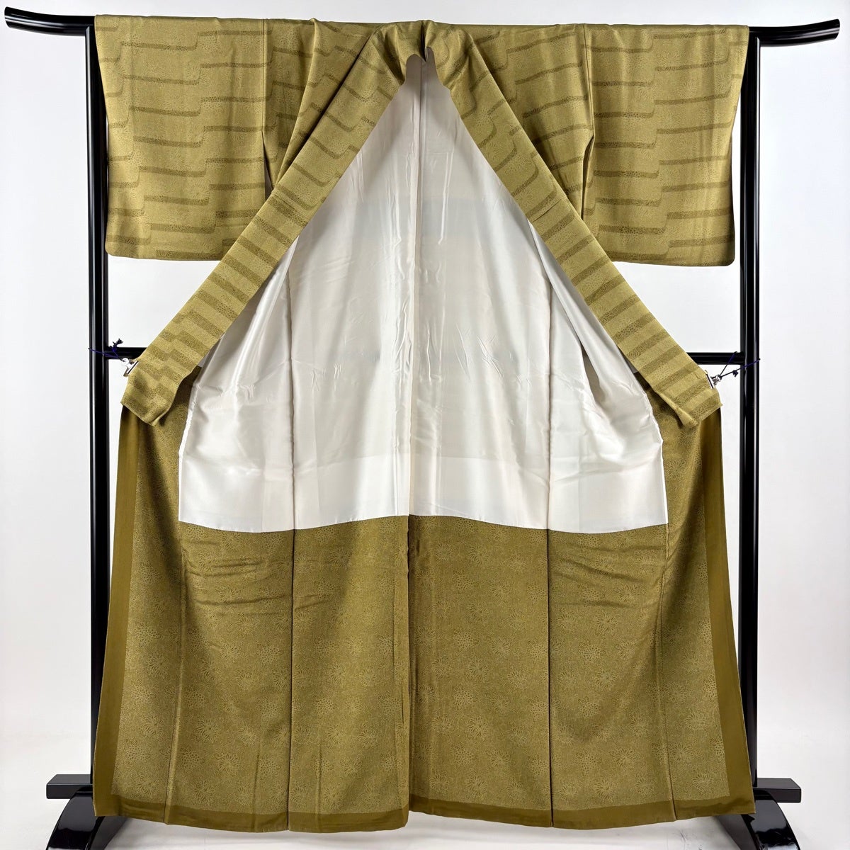 【美品】 色無地 身丈160cm 裄丈63.5cm S 薄物 絽 灰緑 正絹 秀品 一つ紋