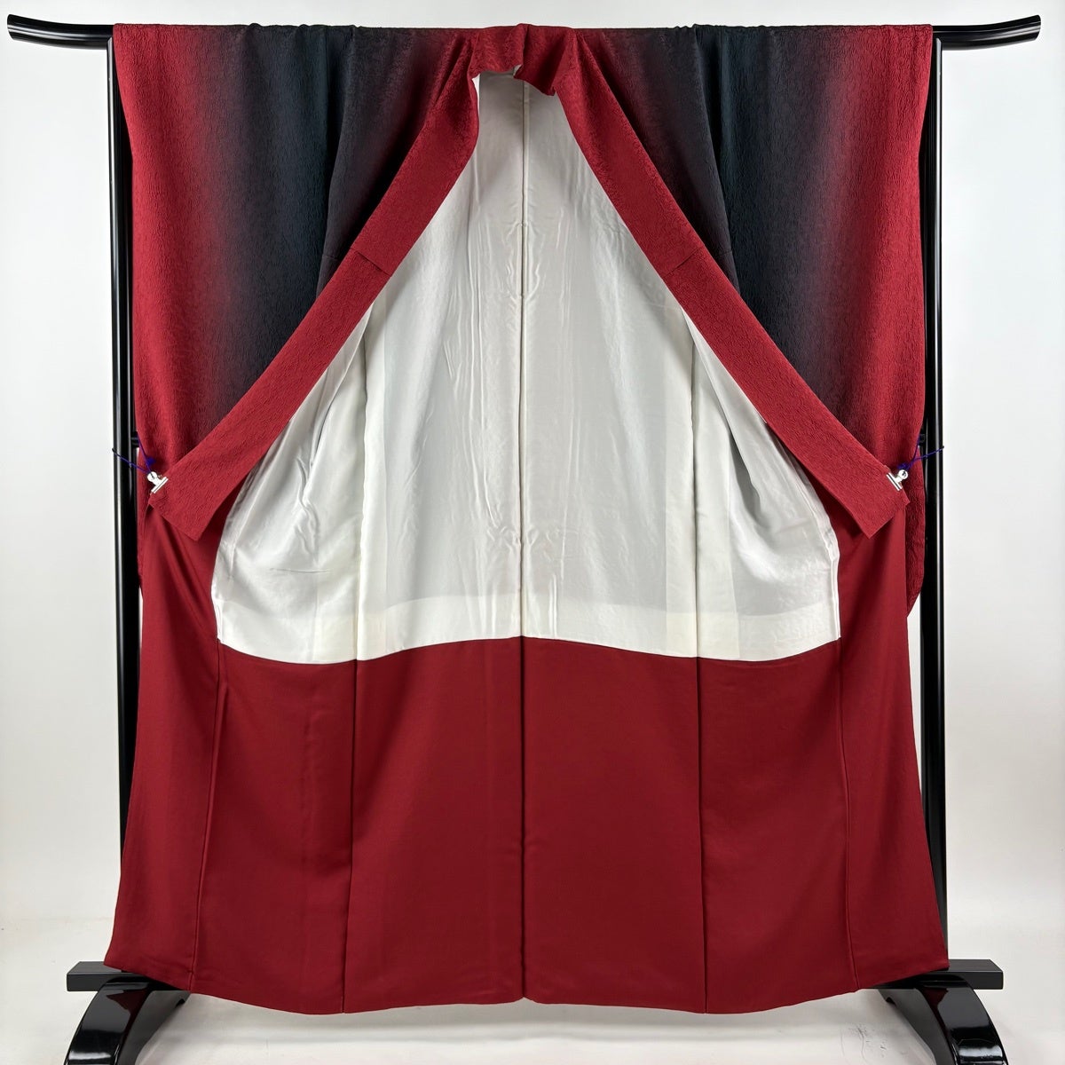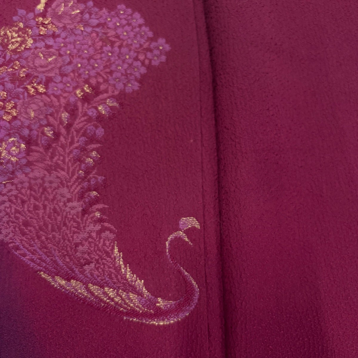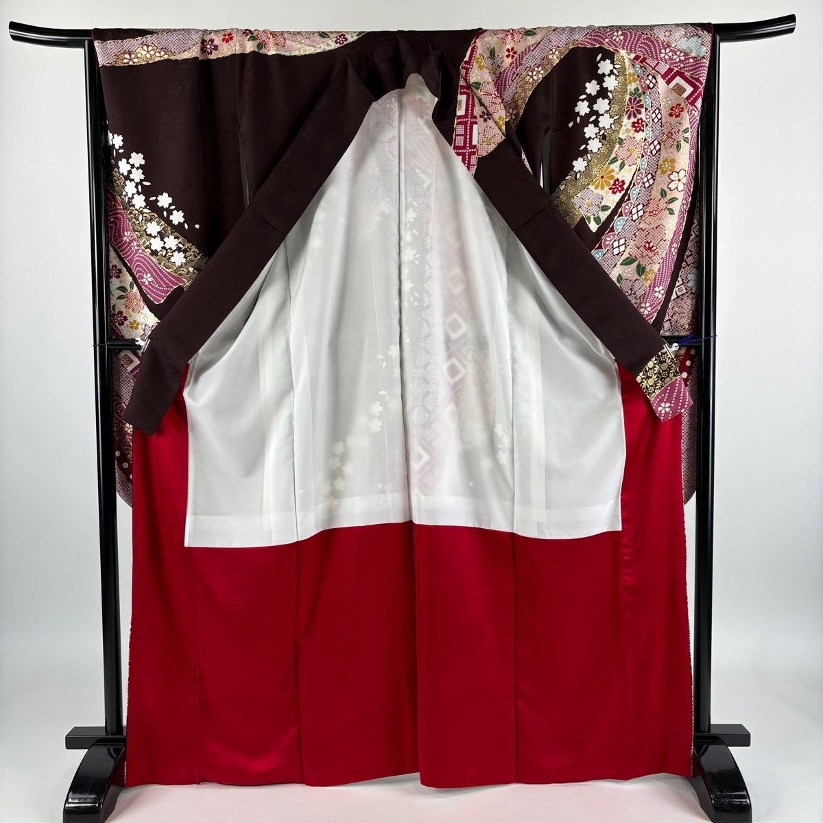 【美品】 振袖 身丈160.5cm 裄丈66cm M 袷 鈴乃屋 桜 流水 金彩 ぼかし えんじ色 正絹 秀品