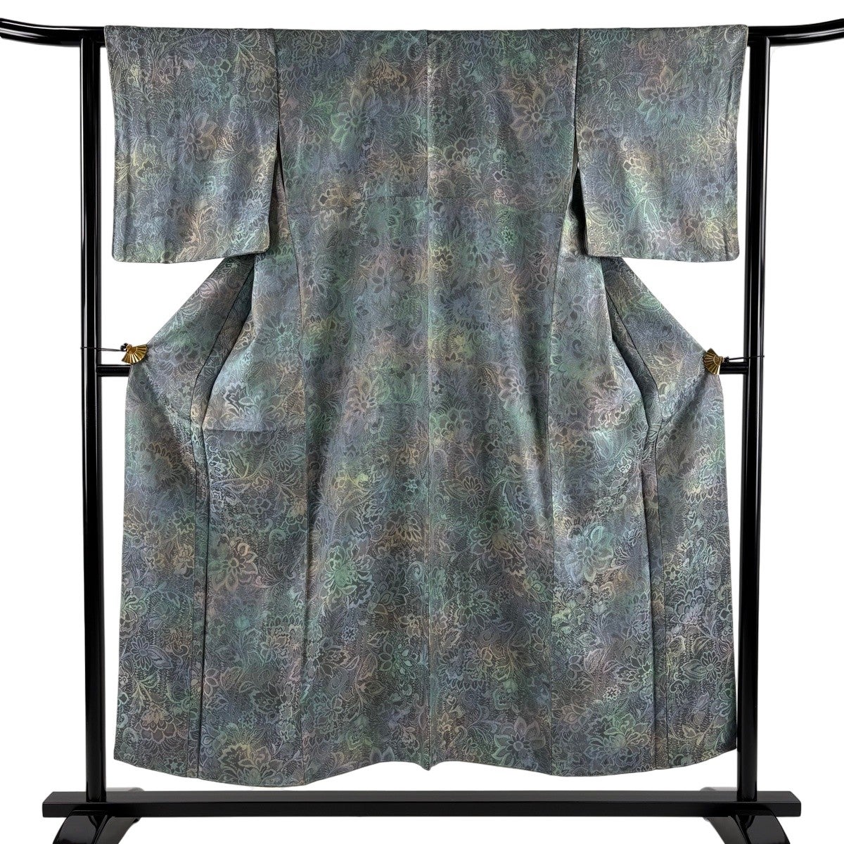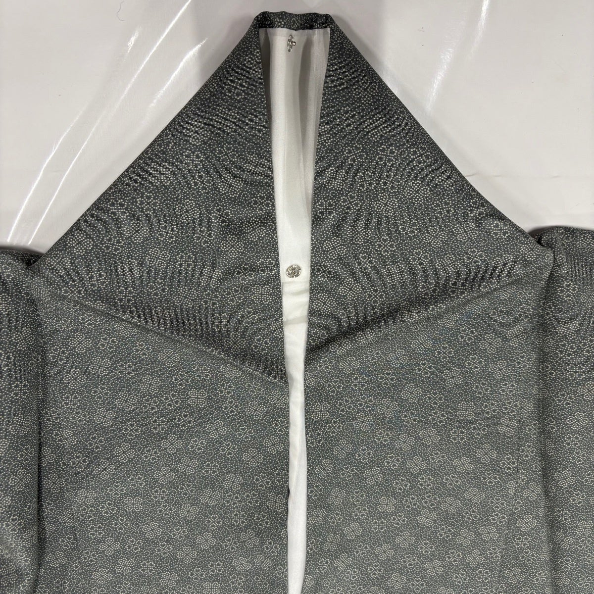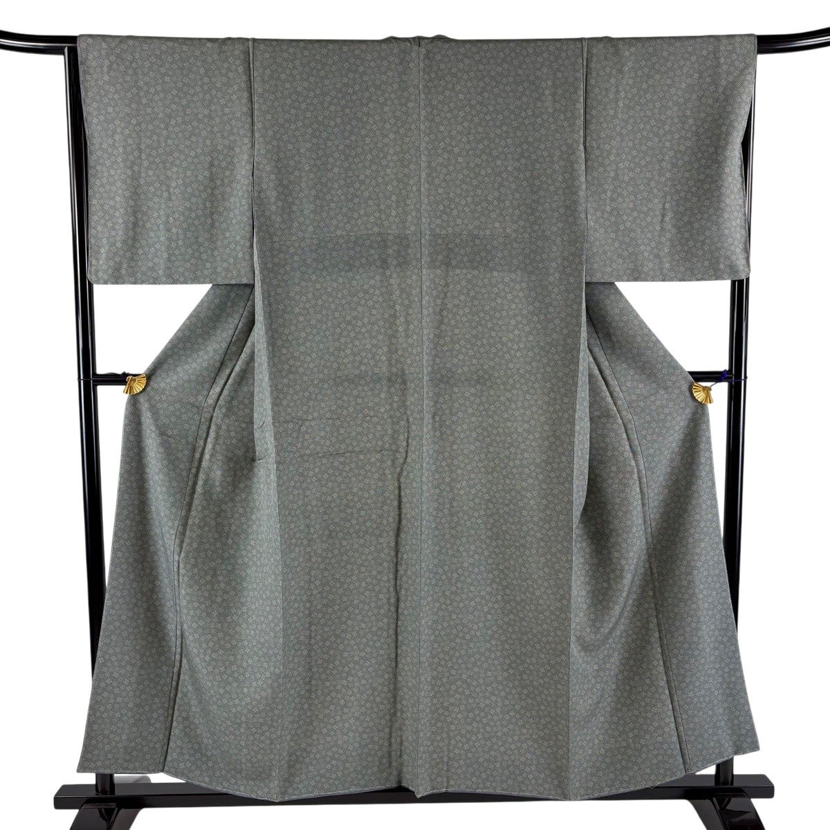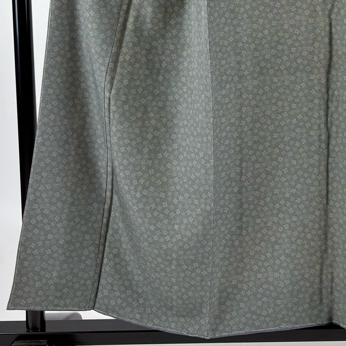 小紋 身丈160.5cm 裄丈65cm M 袷 草花 地紋 絞り 灰緑 正絹 秀品