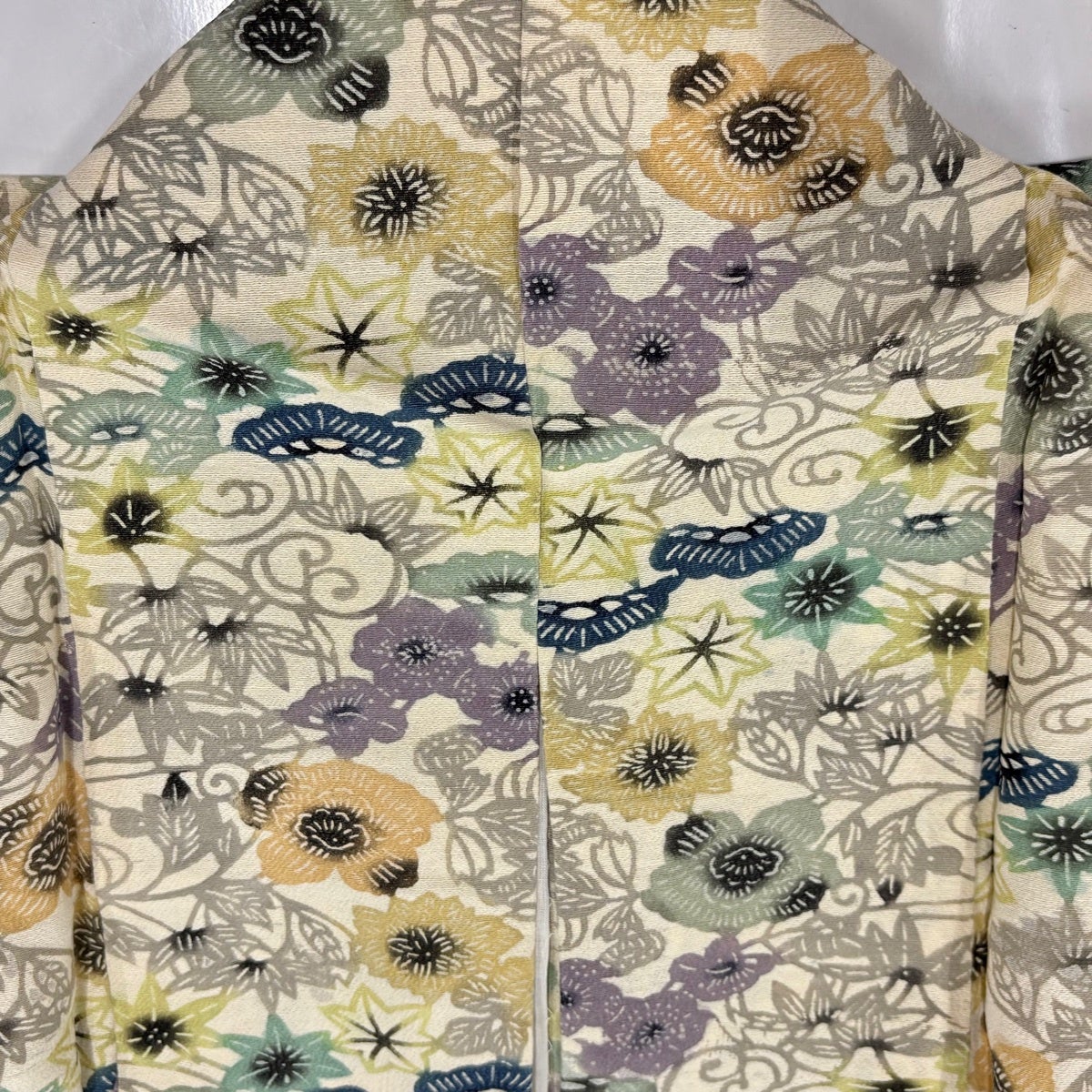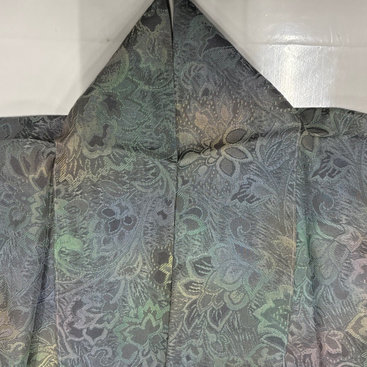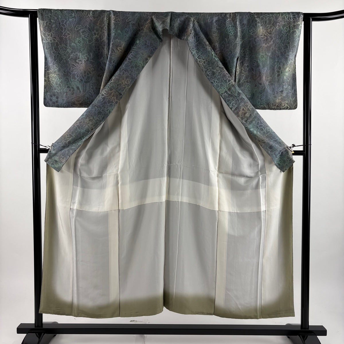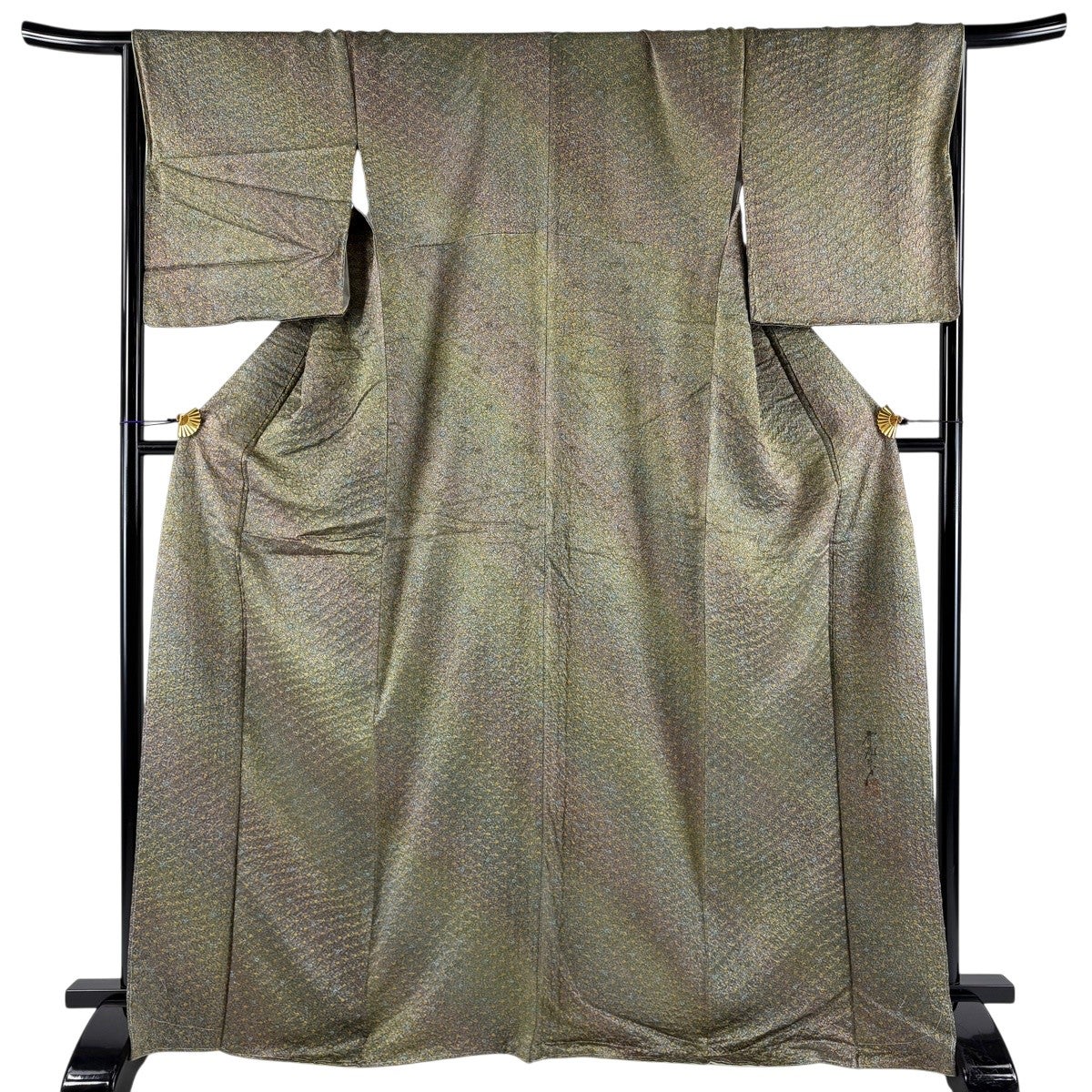 小紋 身丈160.5cm 裄丈65cm M 袷 草花 地紋 絞り 灰緑 正絹 秀品