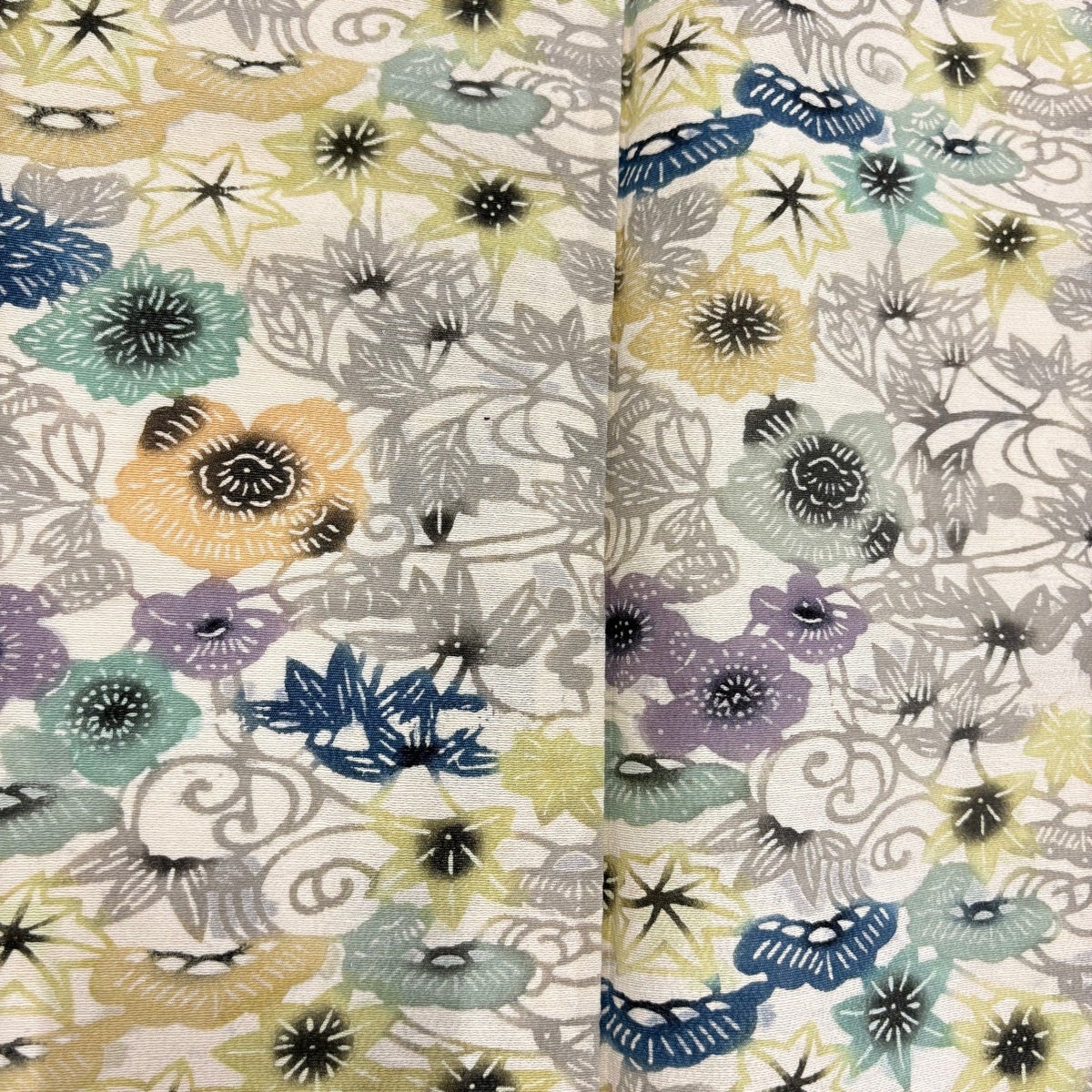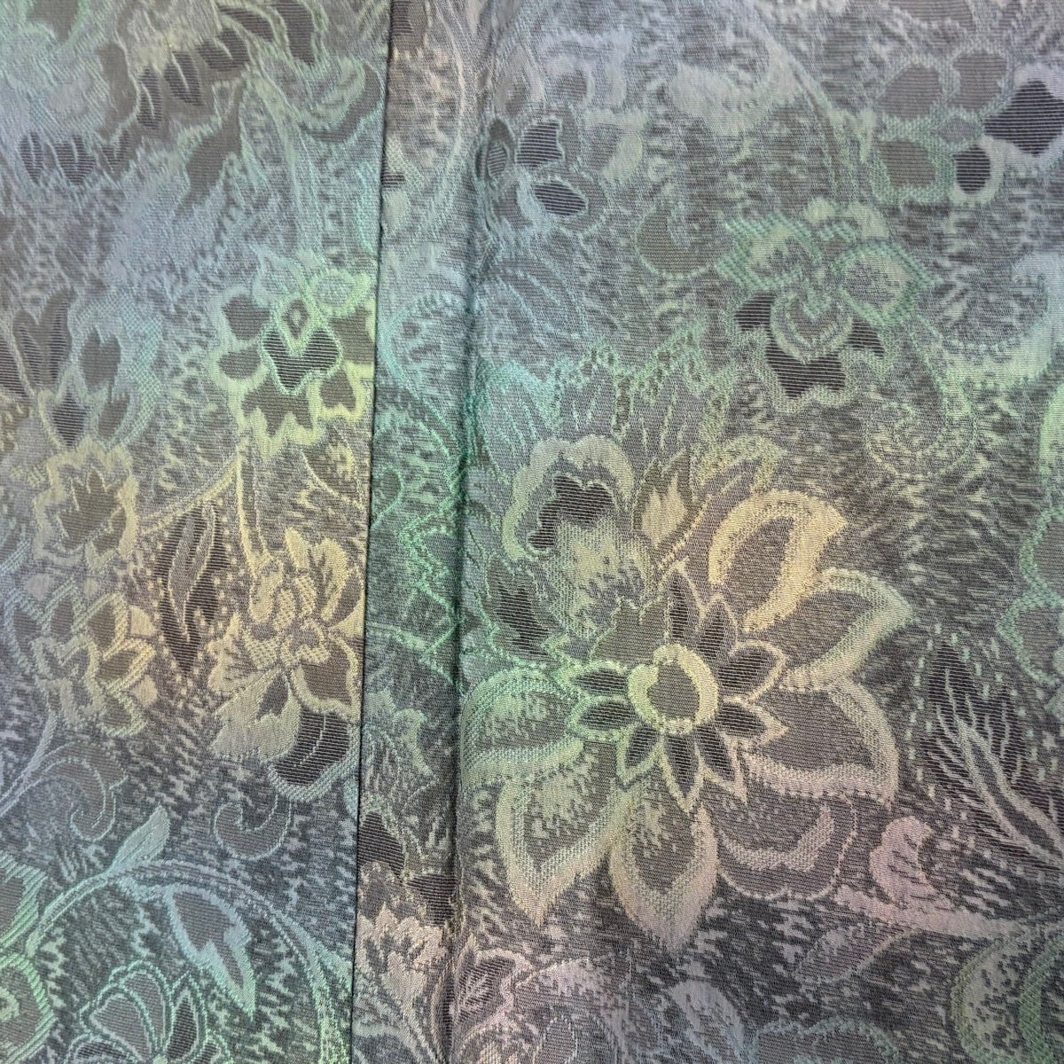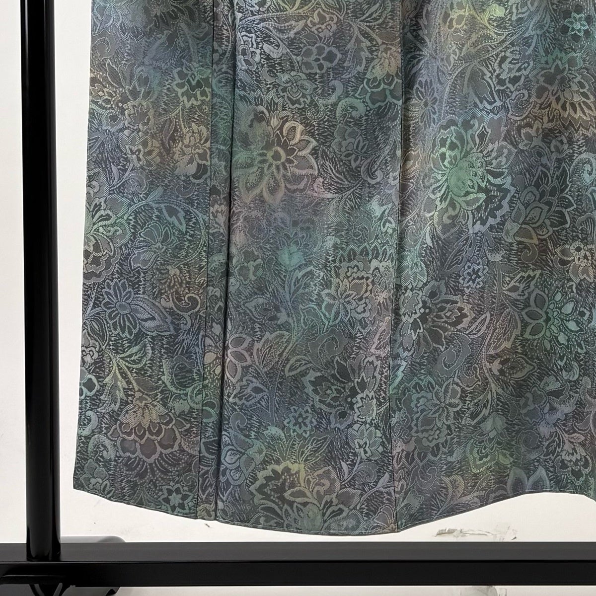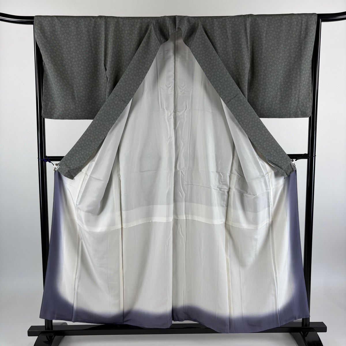 小紋 身丈160.5cm 裄丈65cm M 袷 草花 地紋 絞り 灰緑 正絹 秀品