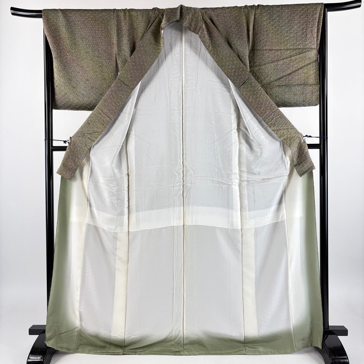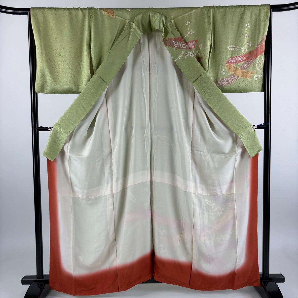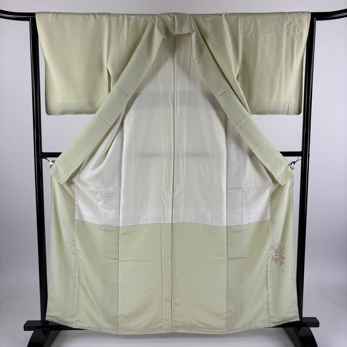 色無地 身丈165cm 裄丈68cm L 袷 英 薄緑 化繊 優品 一つ紋