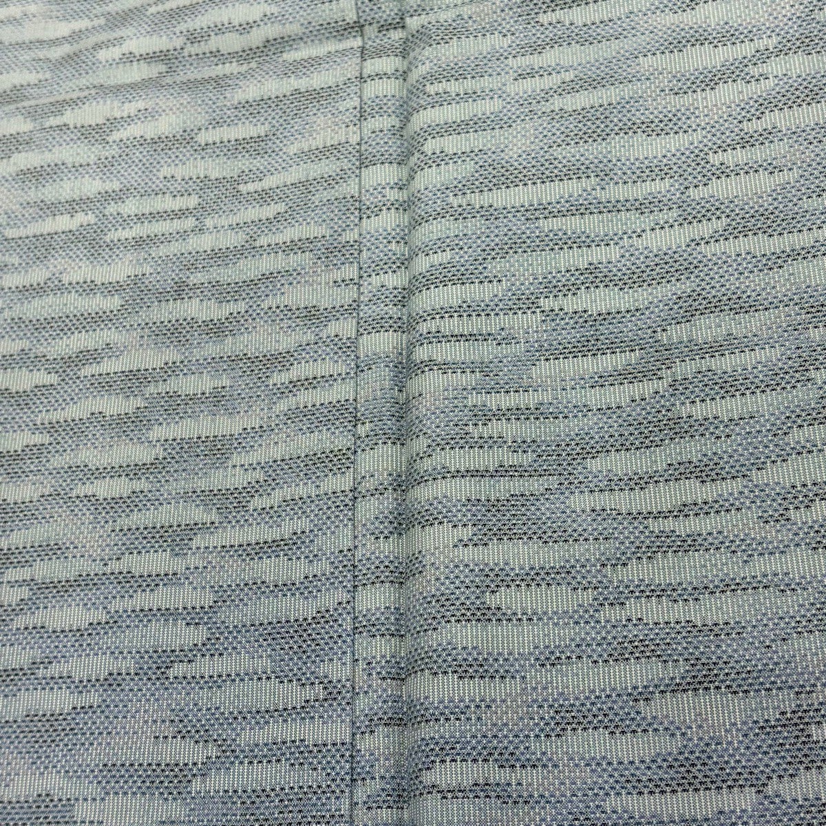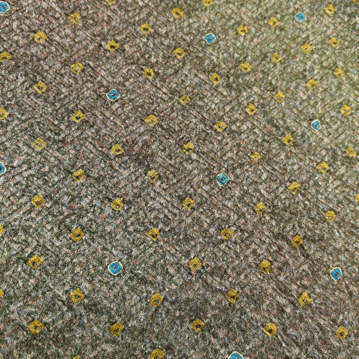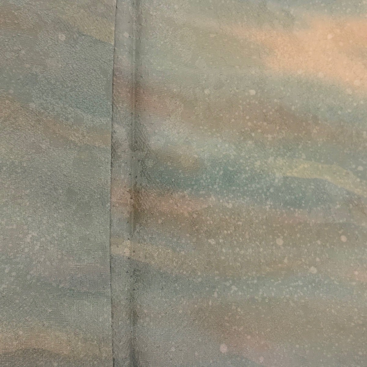 小紋 身丈169.5cm 裄丈67.5cm L 袷 斉藤三才 落款あり 幾何学 ぼかし 絞り 灰緑 正絹 秀品