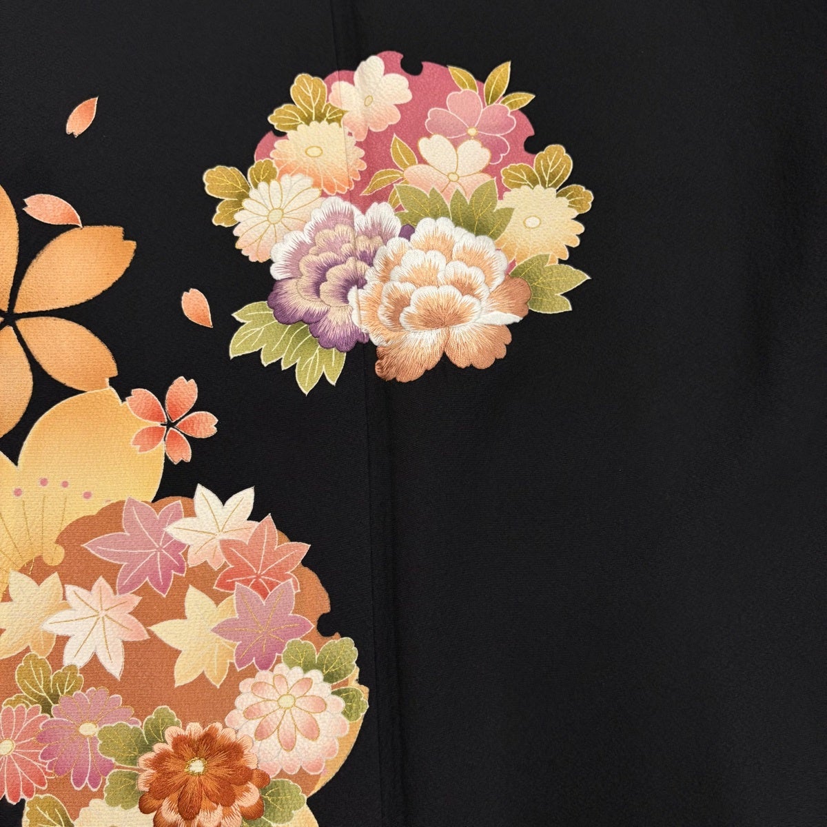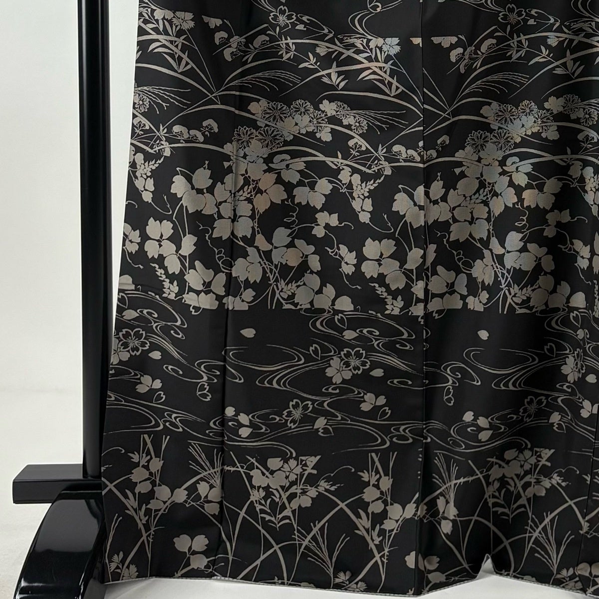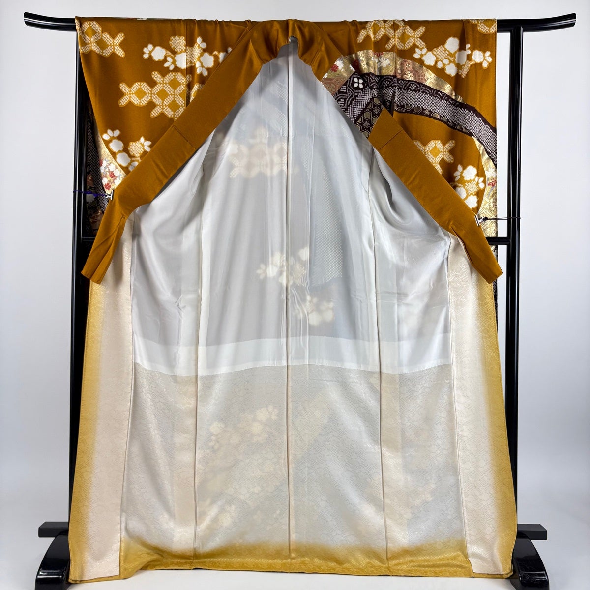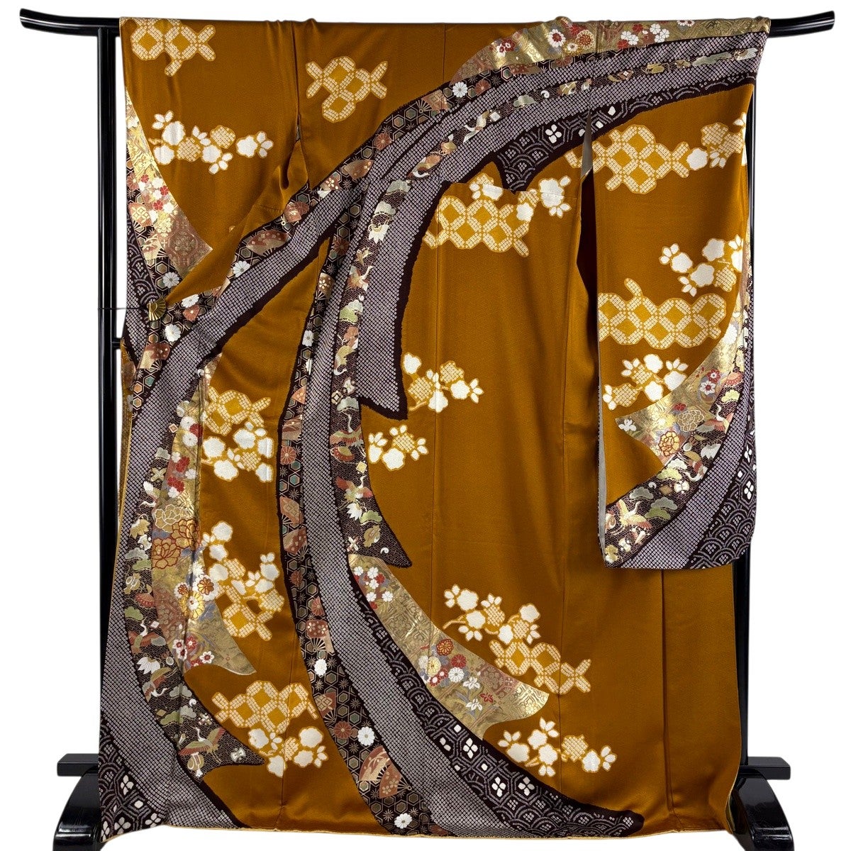 振袖 身丈168.5cm 裄丈67cm M 袷 山鉾 松梅 金糸 金彩 墨色 正絹 秀品