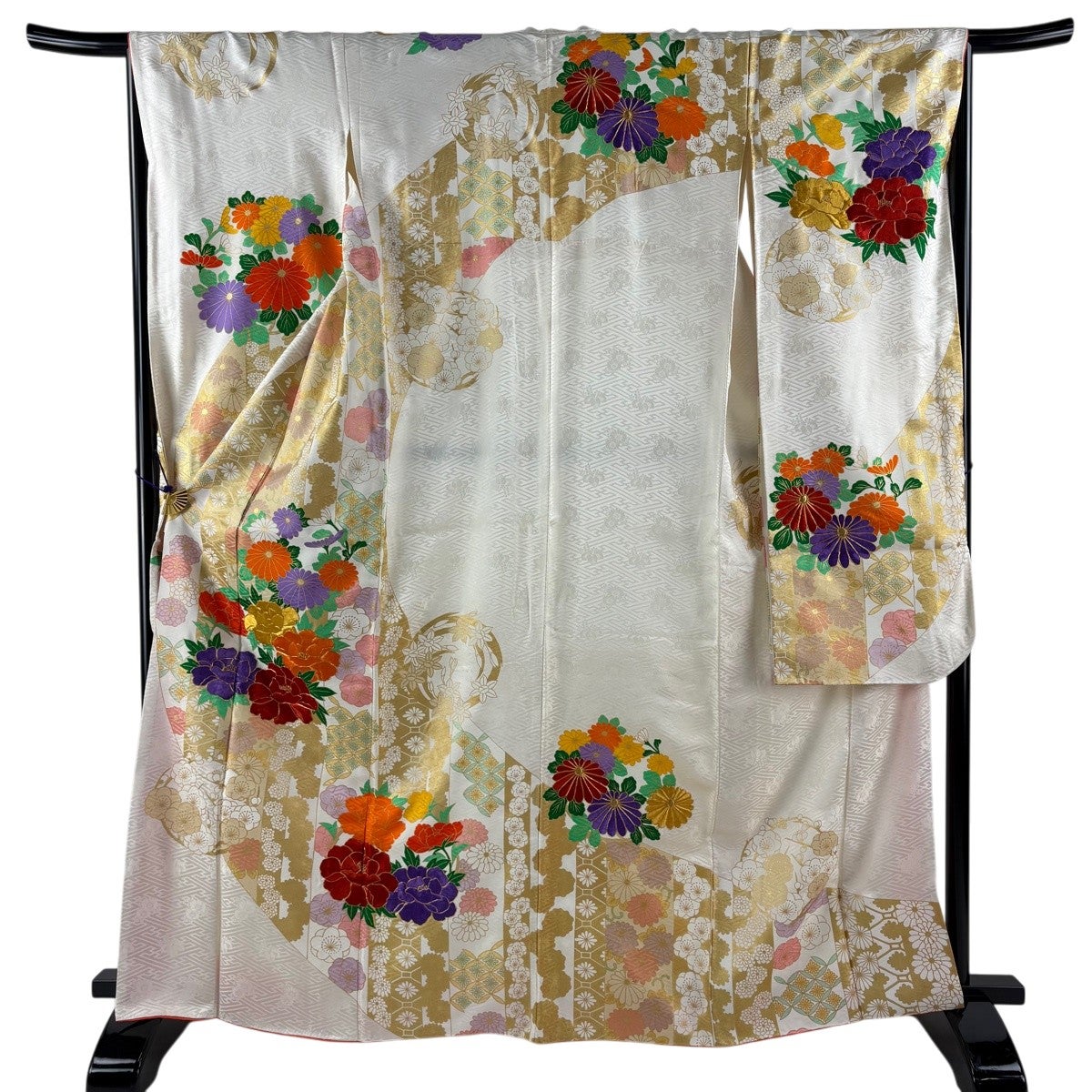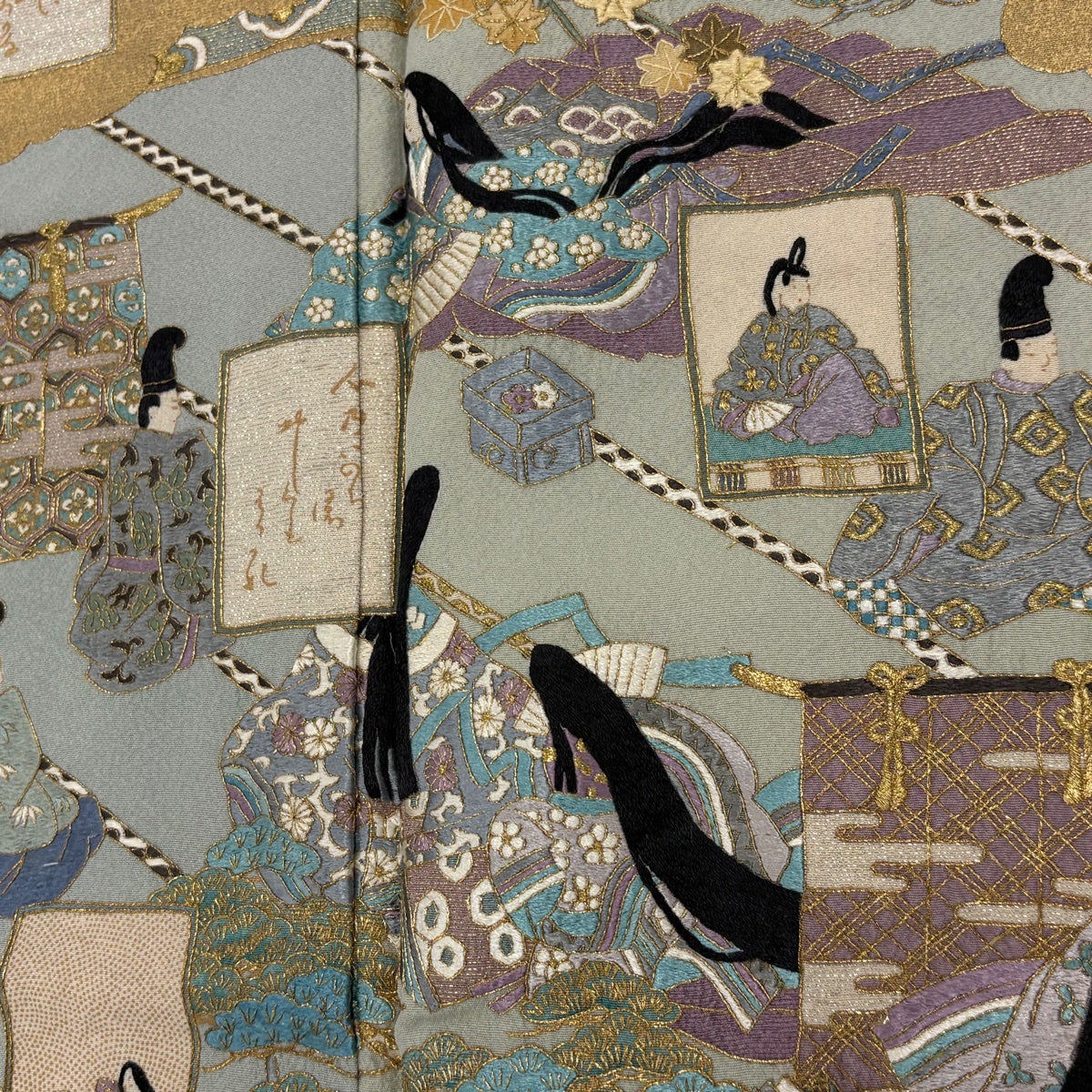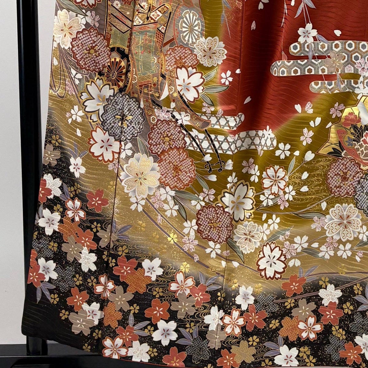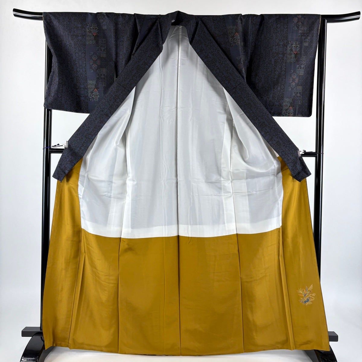 振袖 身丈168.5cm 裄丈67cm M 袷 山鉾 松梅 金糸 金彩 墨色 正絹 秀品