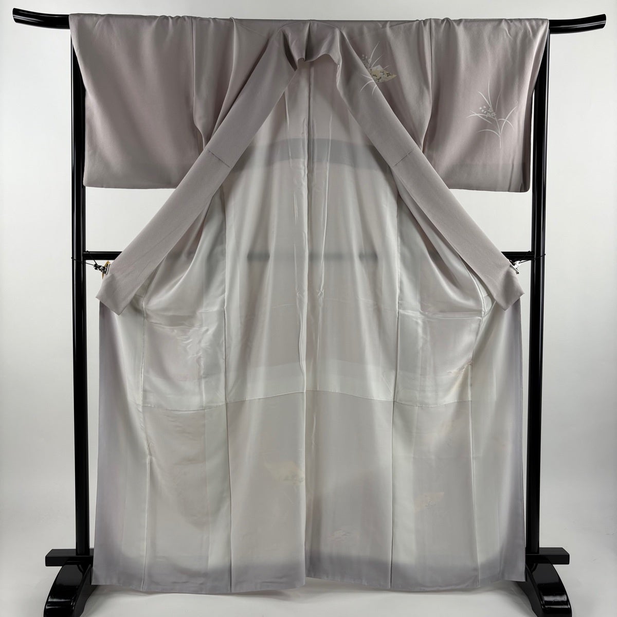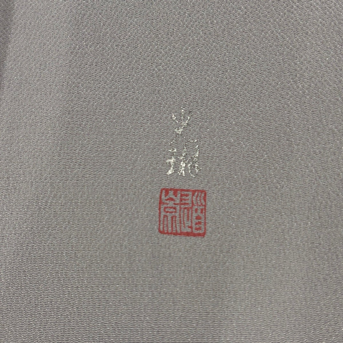 色無地 身丈162cm 裄丈69cm L 袷 松尾光琳 落款あり 灰色 正絹 秀品 一つ紋