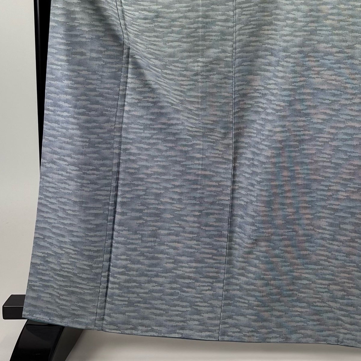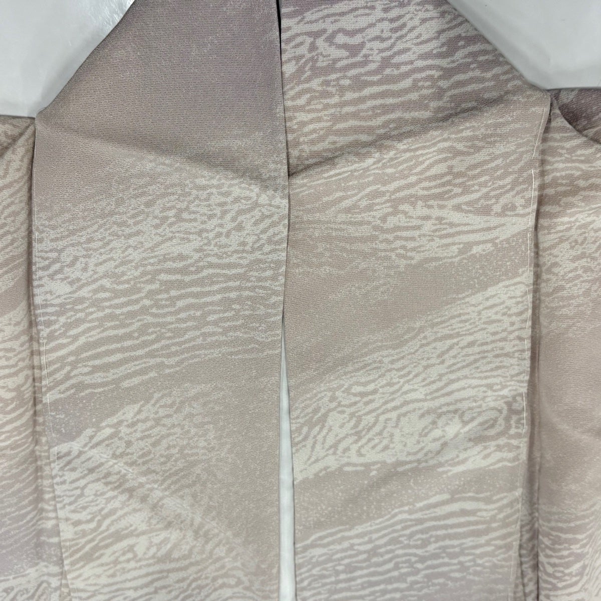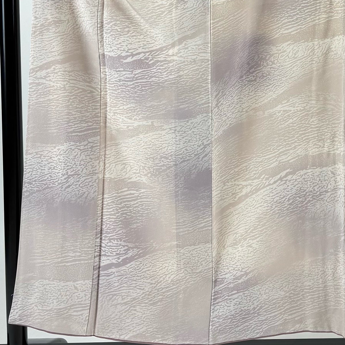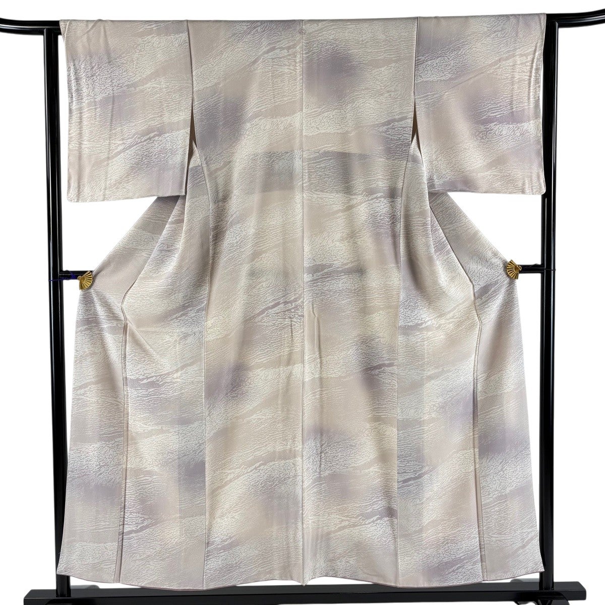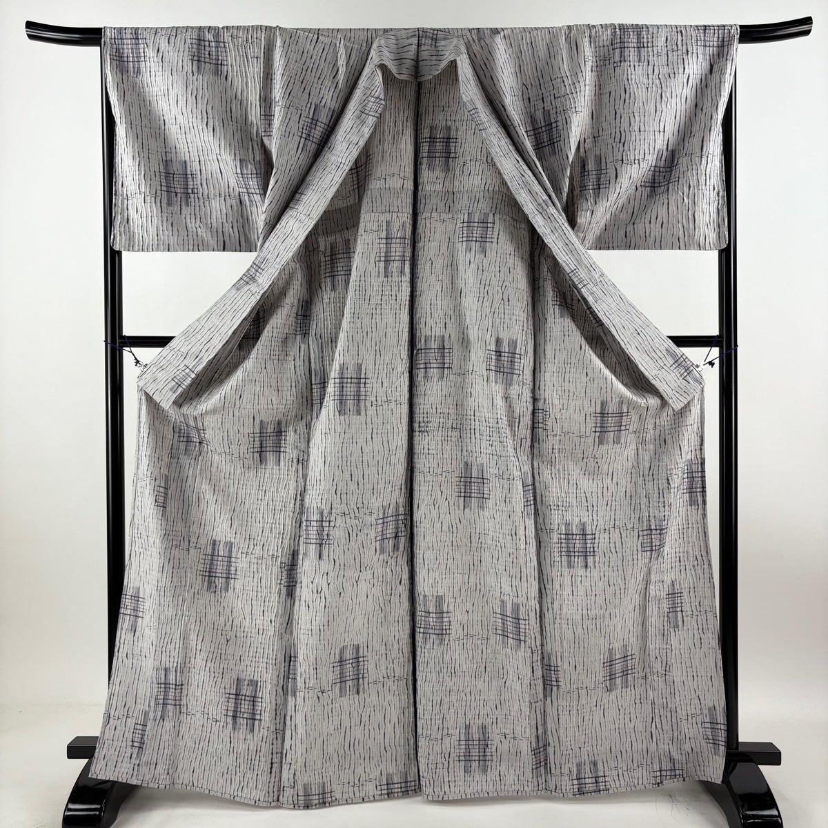 【美品】 小紋 身丈166.5cm 裄丈69cm L 薄物 絽 洗える着物 よろけ縞 幾何学模様 灰紫 化繊 優品