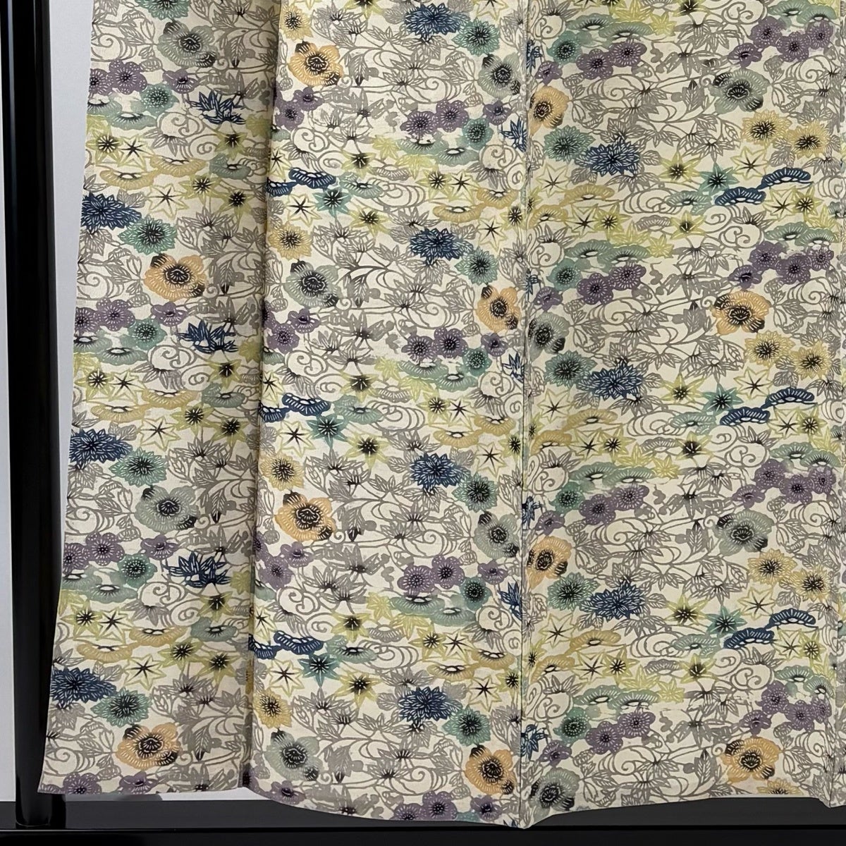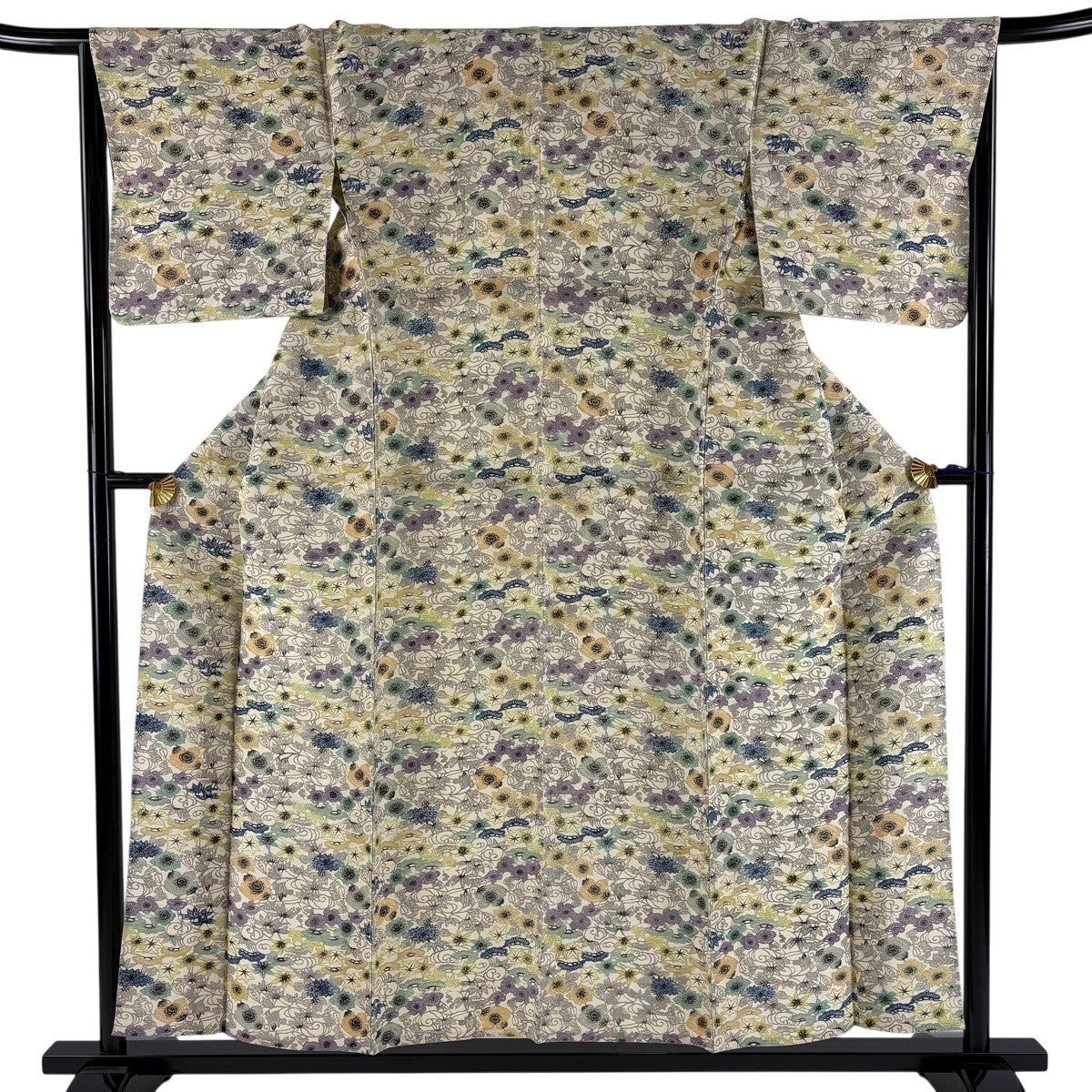 小紋 身丈155cm 裄丈67cm M 単衣 草花 松竹梅 薄黄 正絹 秀品