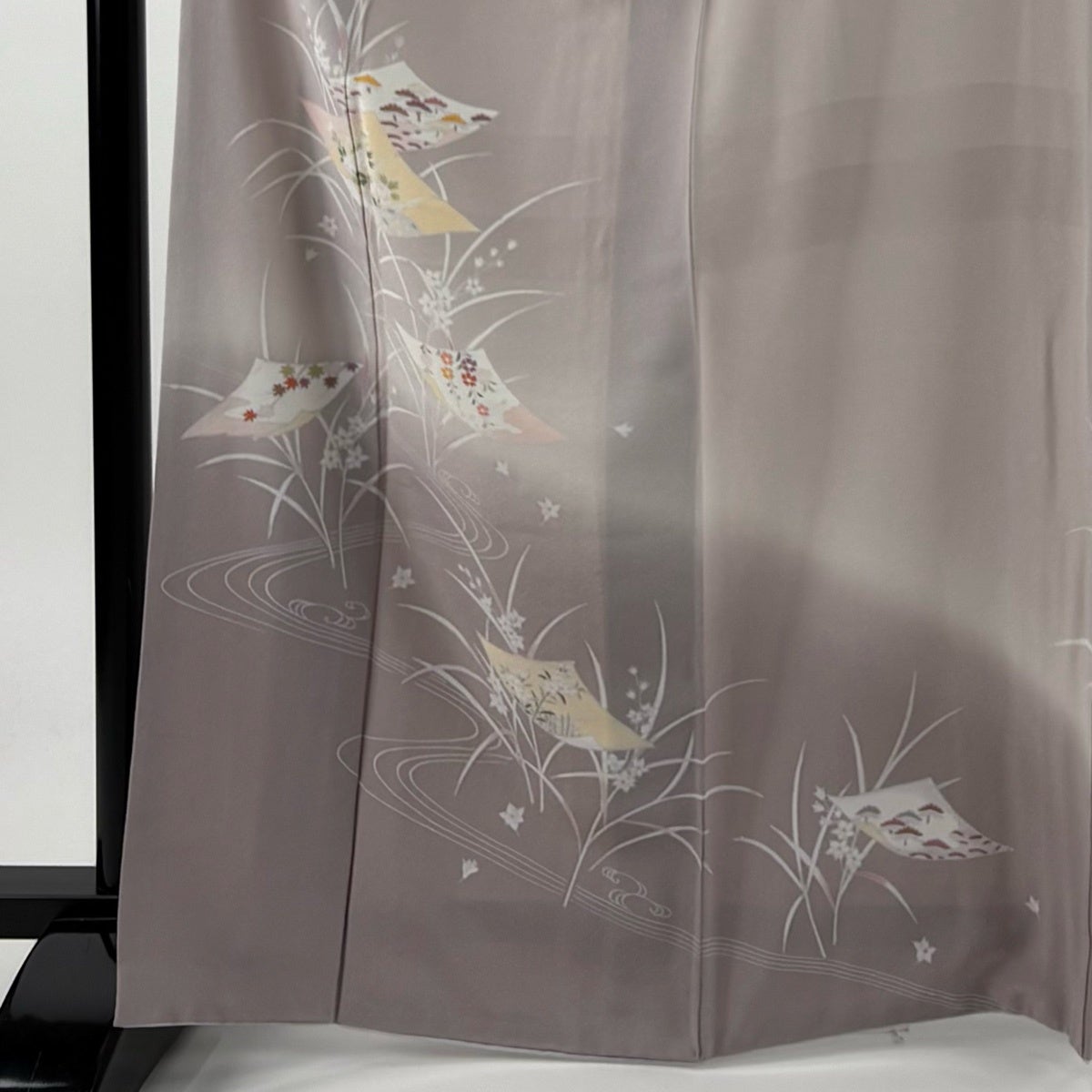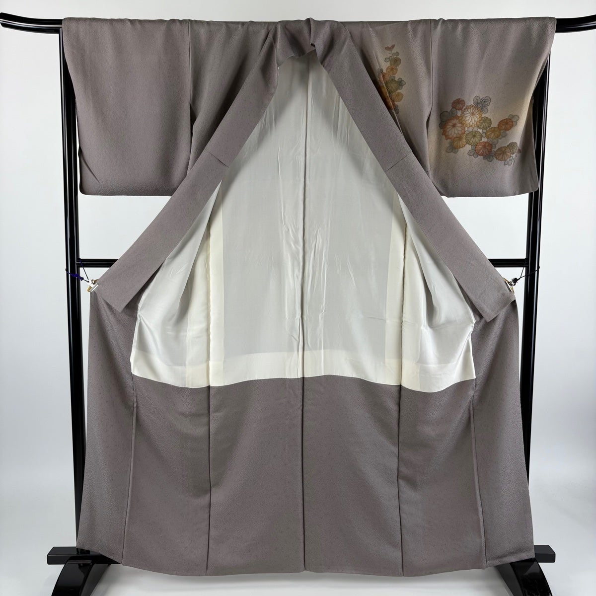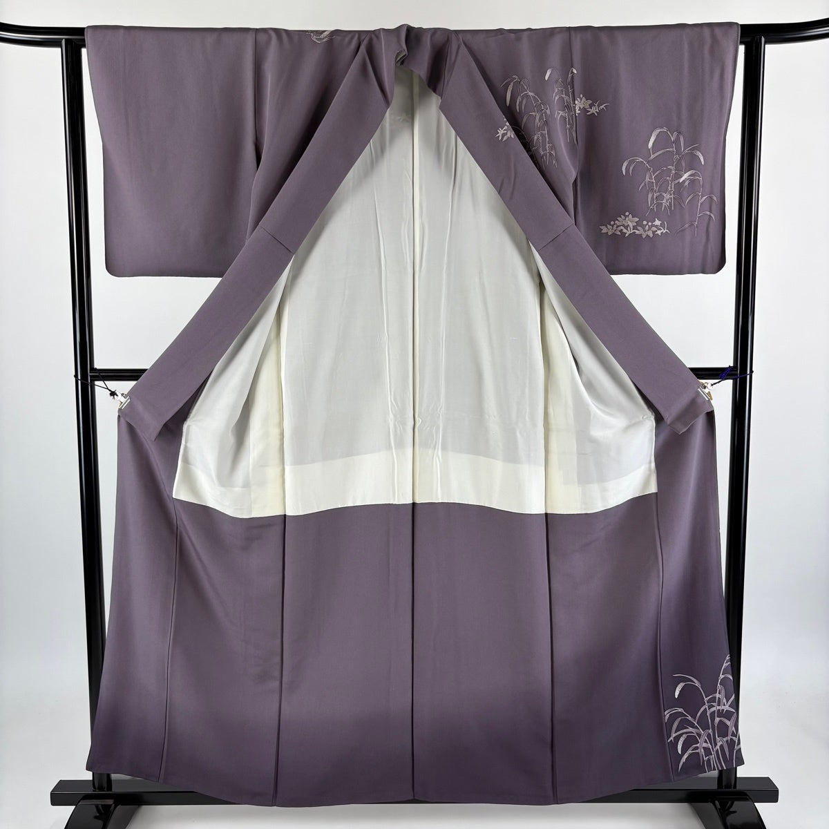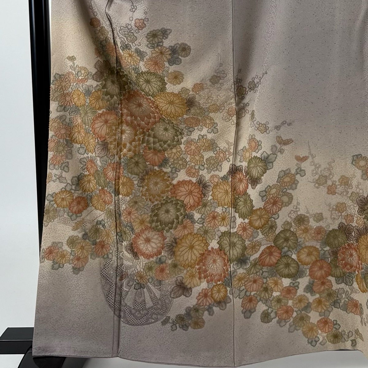 付下げ 身丈162cm 裄丈68cm L 袷 花車 菊 相良刺繍 ぼかし 灰紫 正絹 秀品