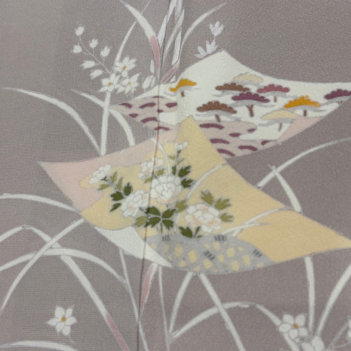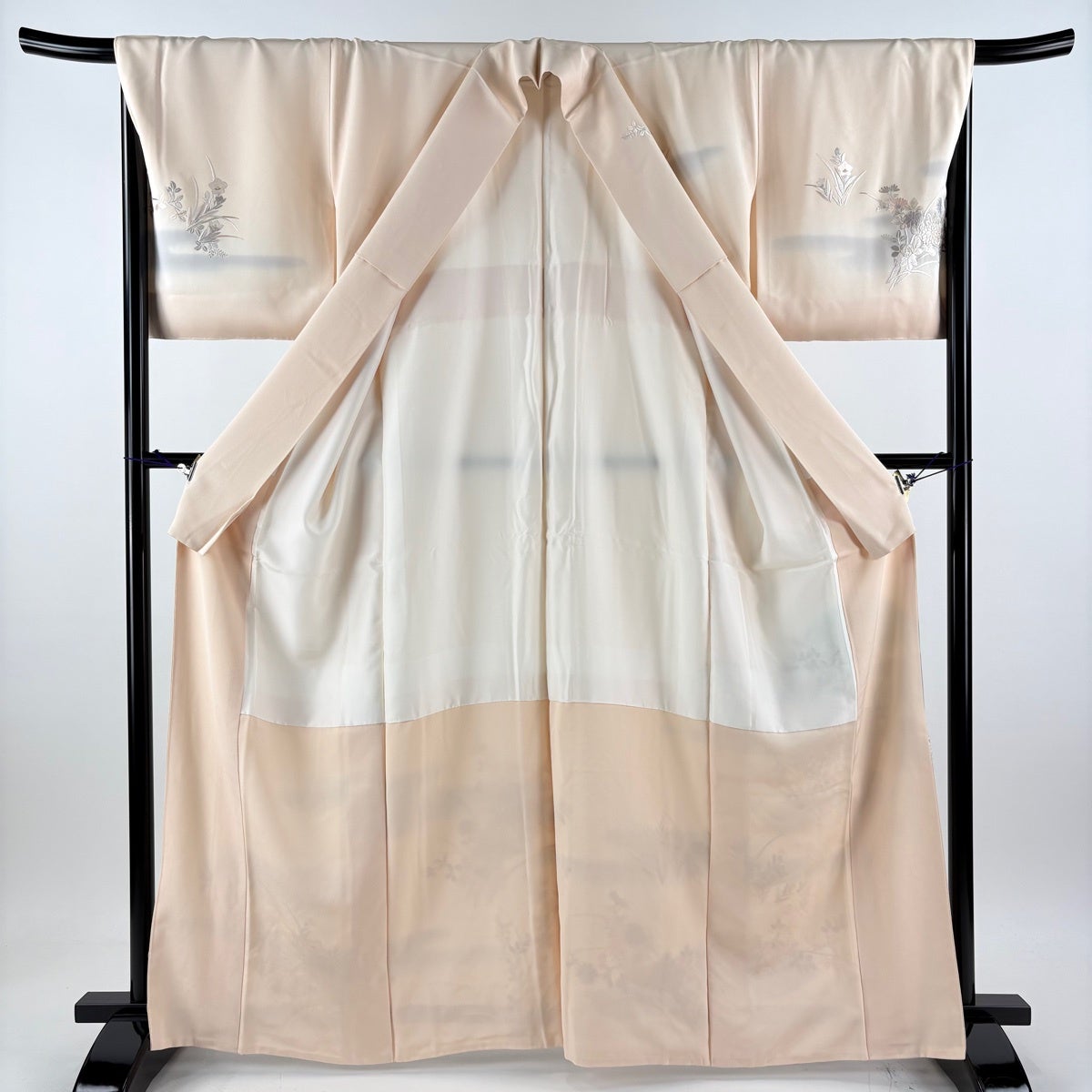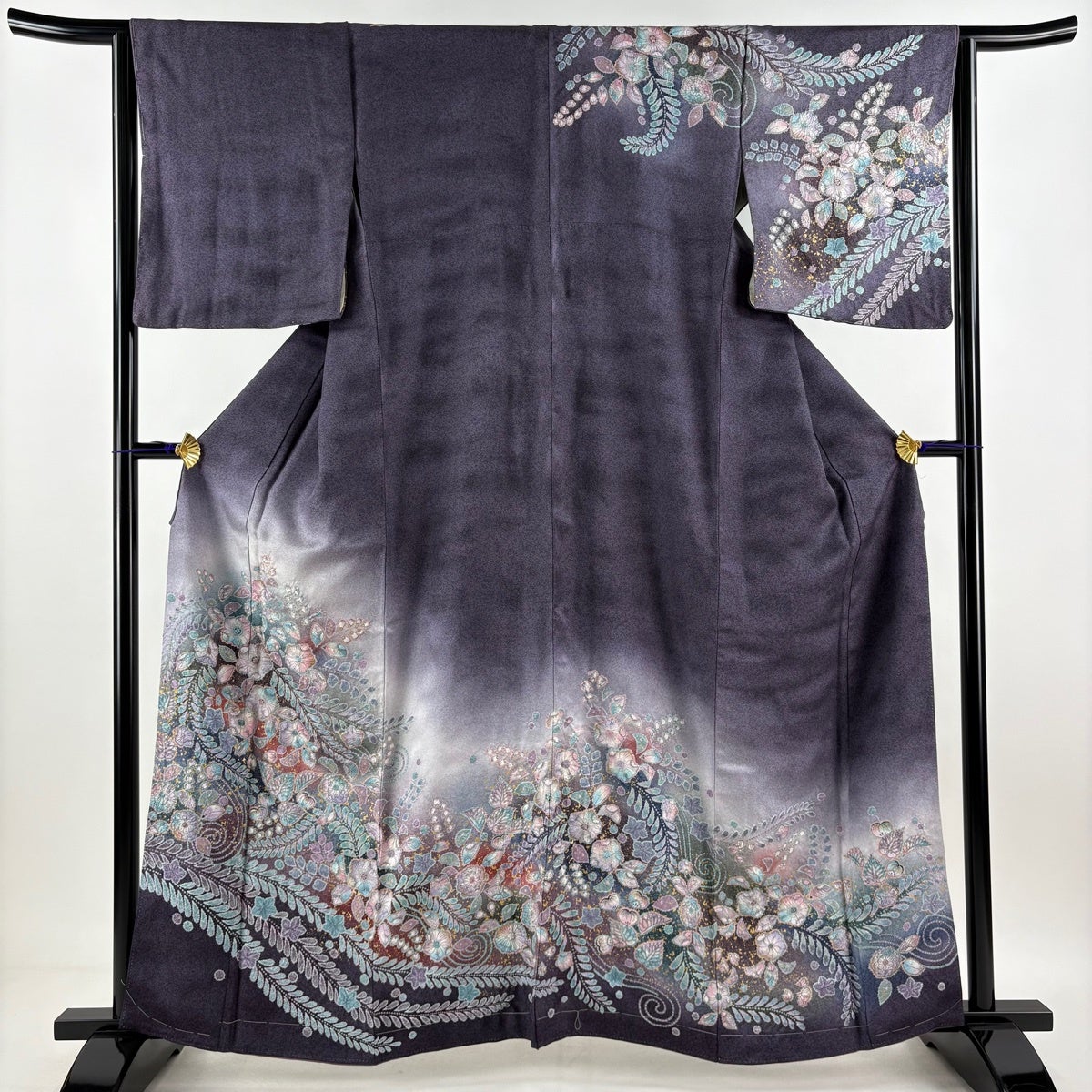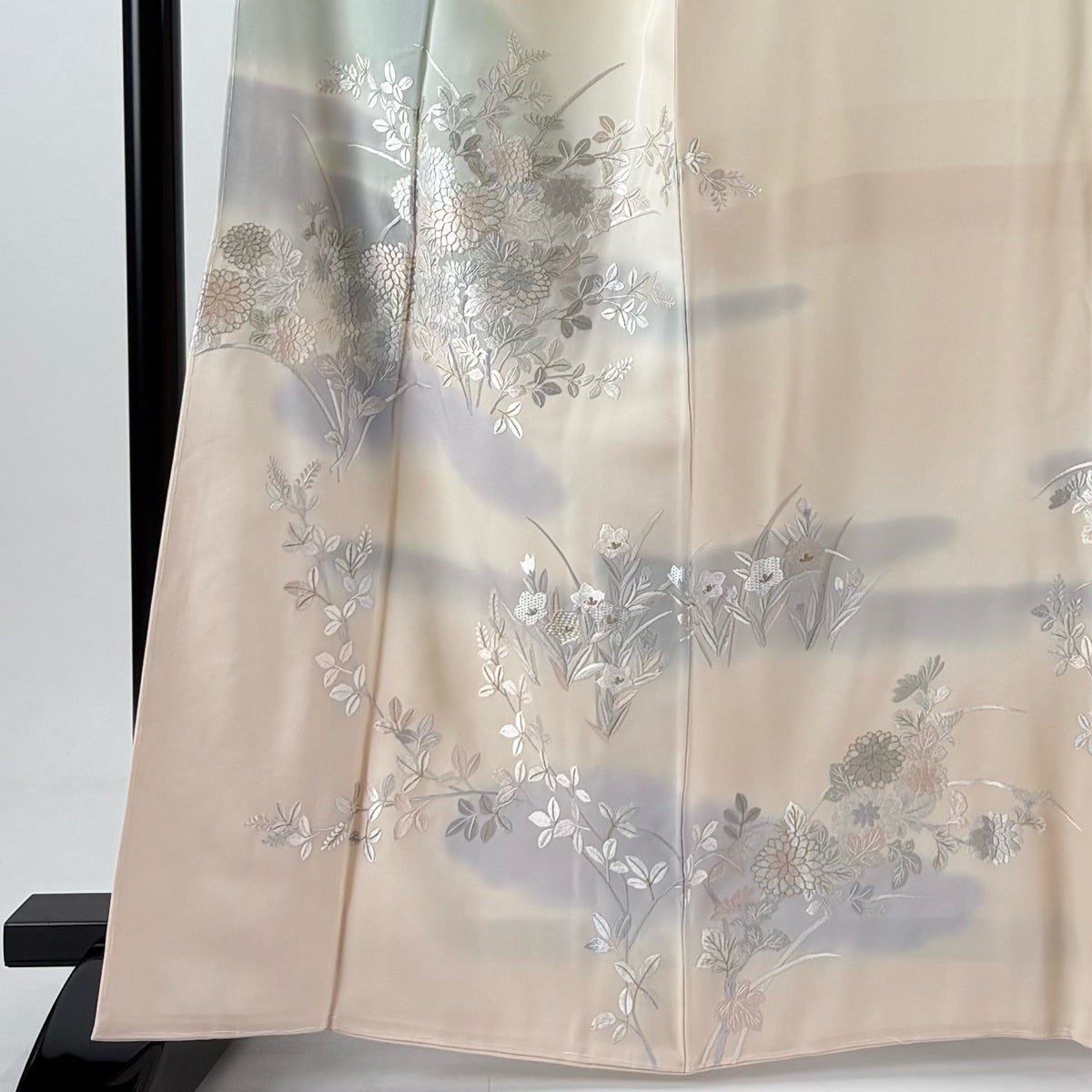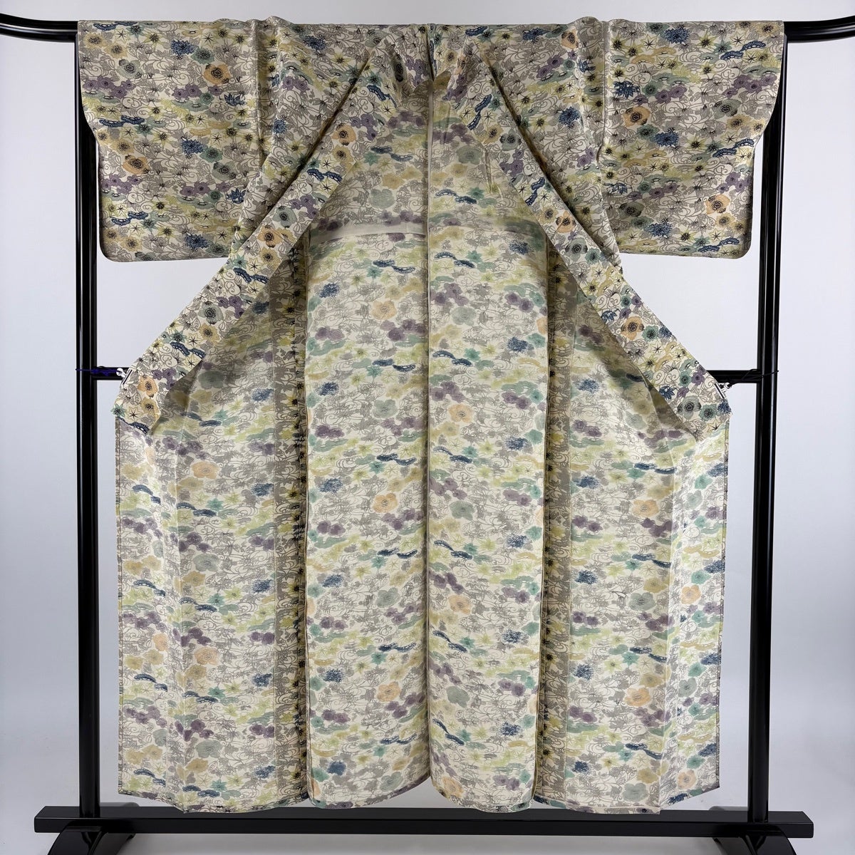 付下げ 身丈162cm 裄丈68cm L 袷 花車 菊 相良刺繍 ぼかし 灰紫 正絹 秀品