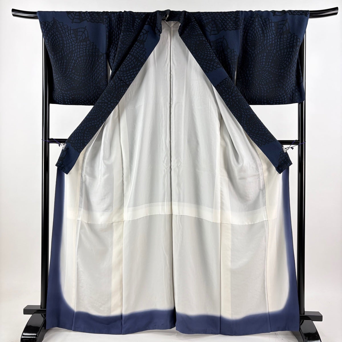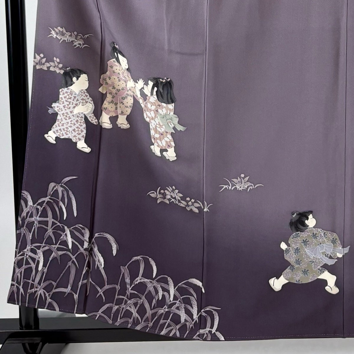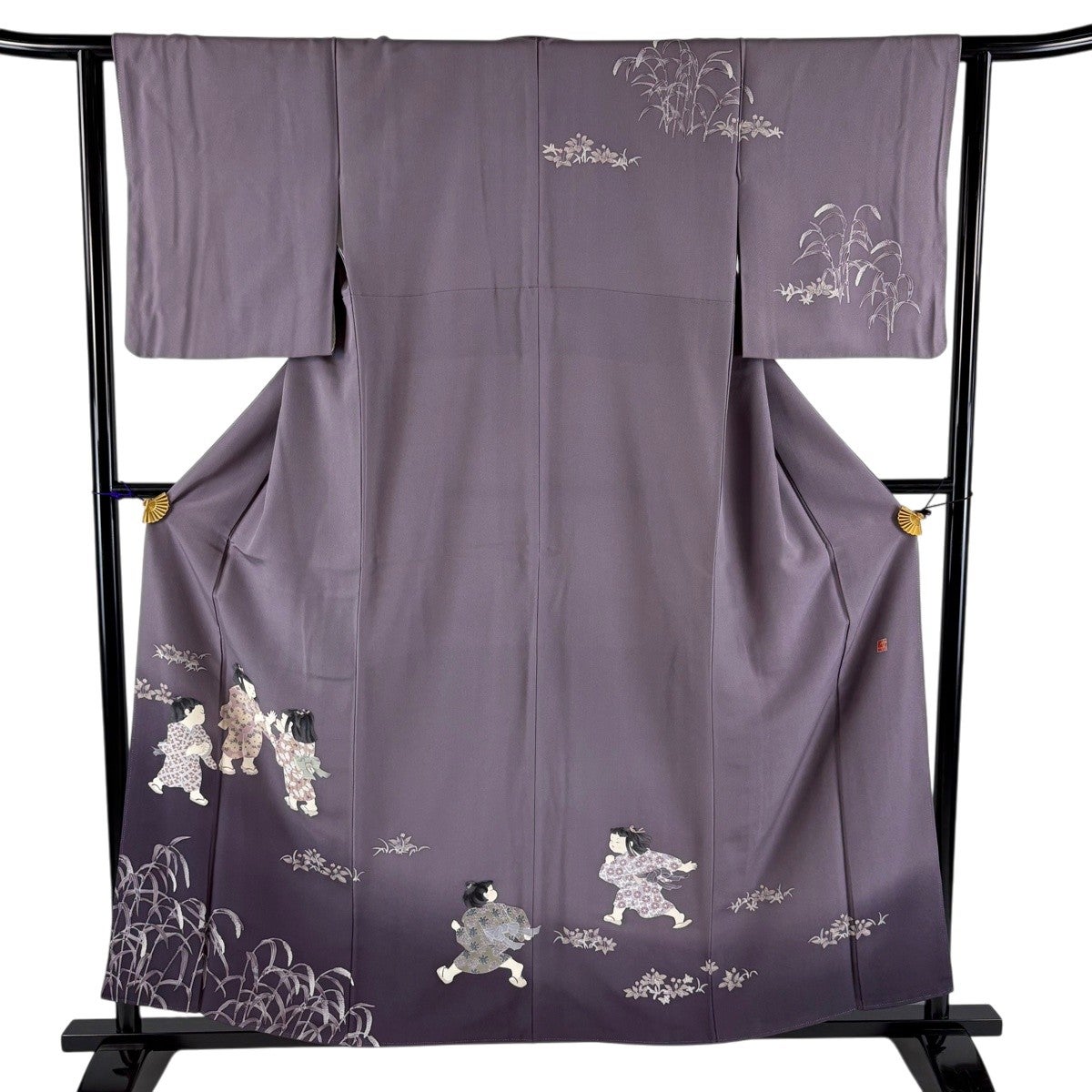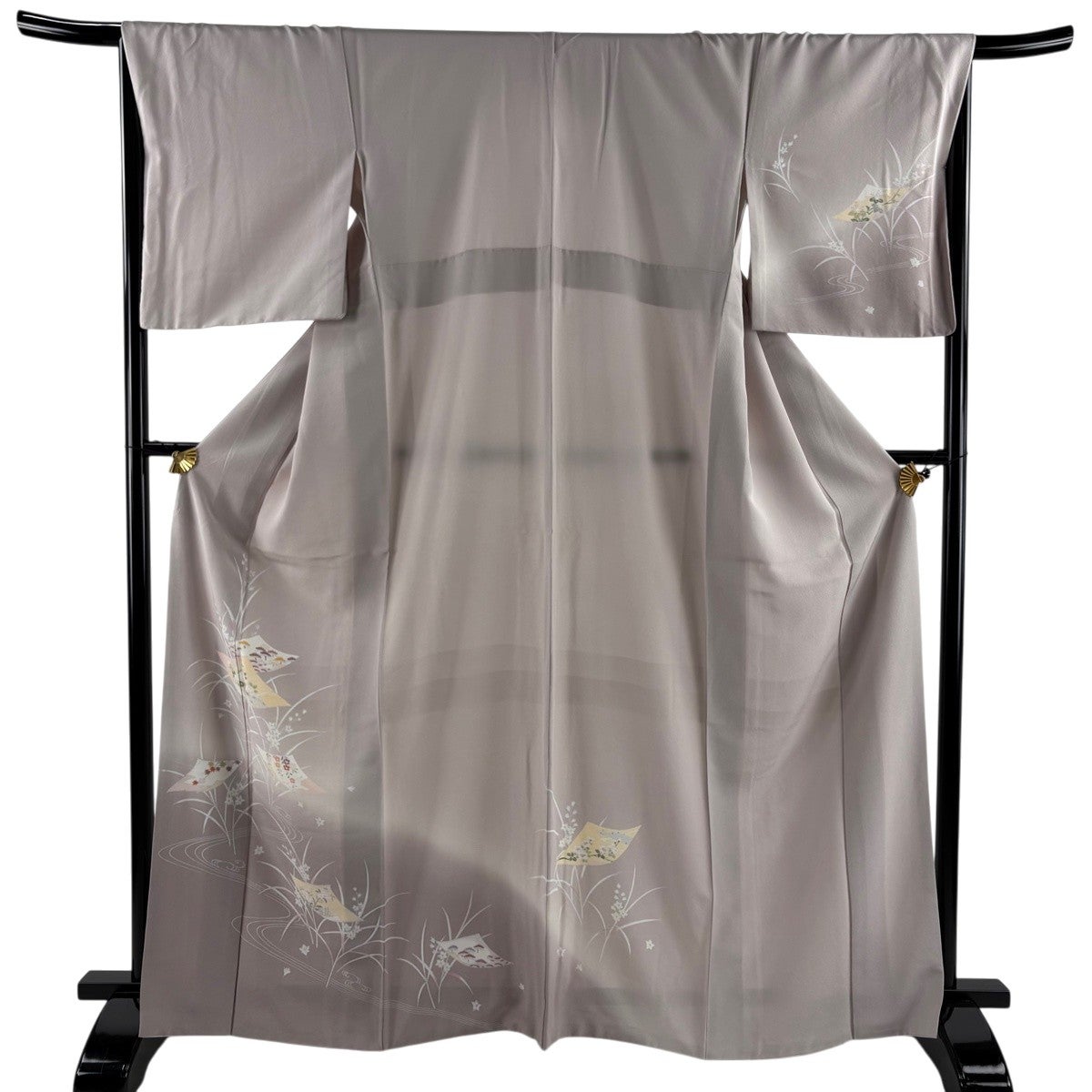付下げ 身丈162cm 裄丈68cm L 袷 花車 菊 相良刺繍 ぼかし 灰紫 正絹 秀品