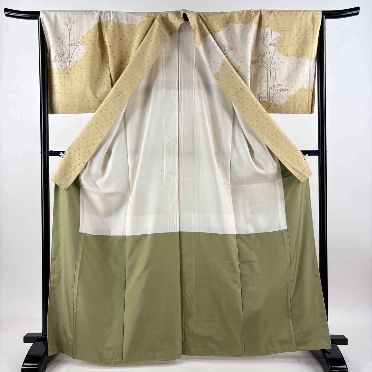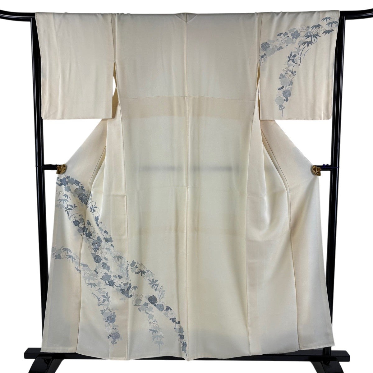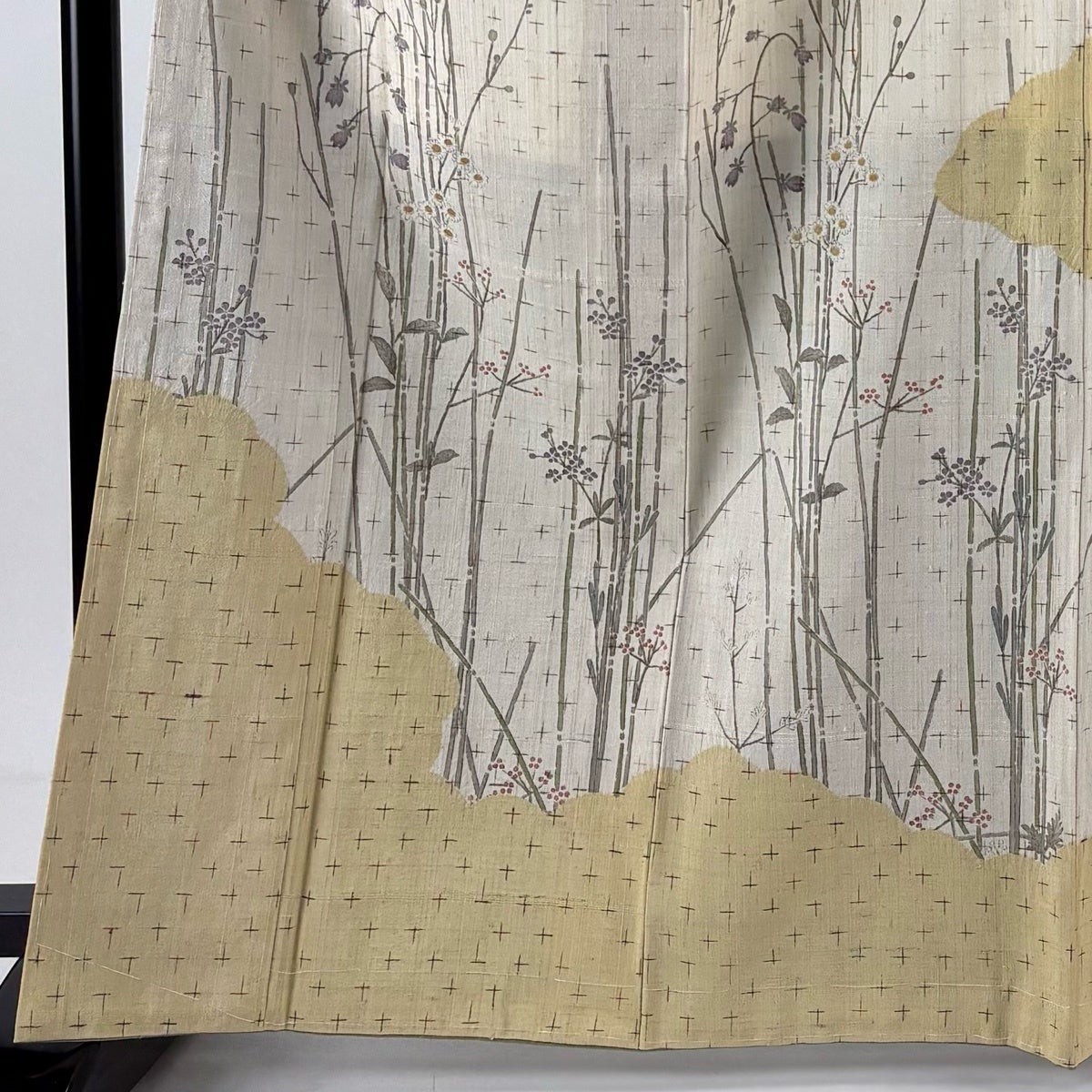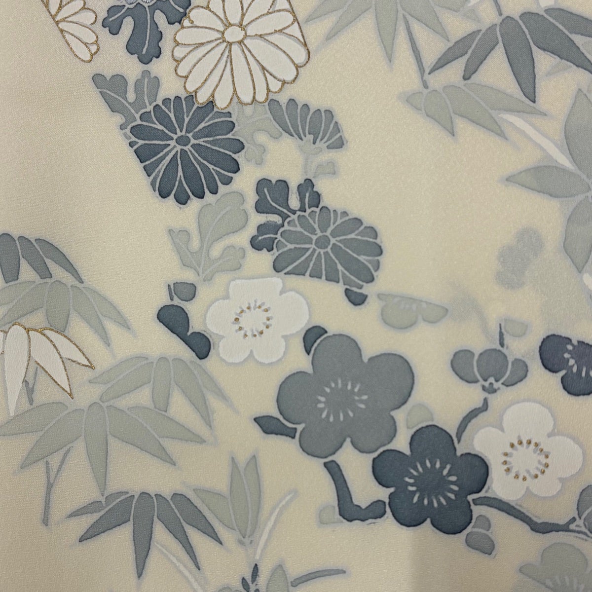 付下げ 身丈156cm 裄丈65cm M 袷 草花 笹 金糸 金彩 クリーム 正絹 秀品