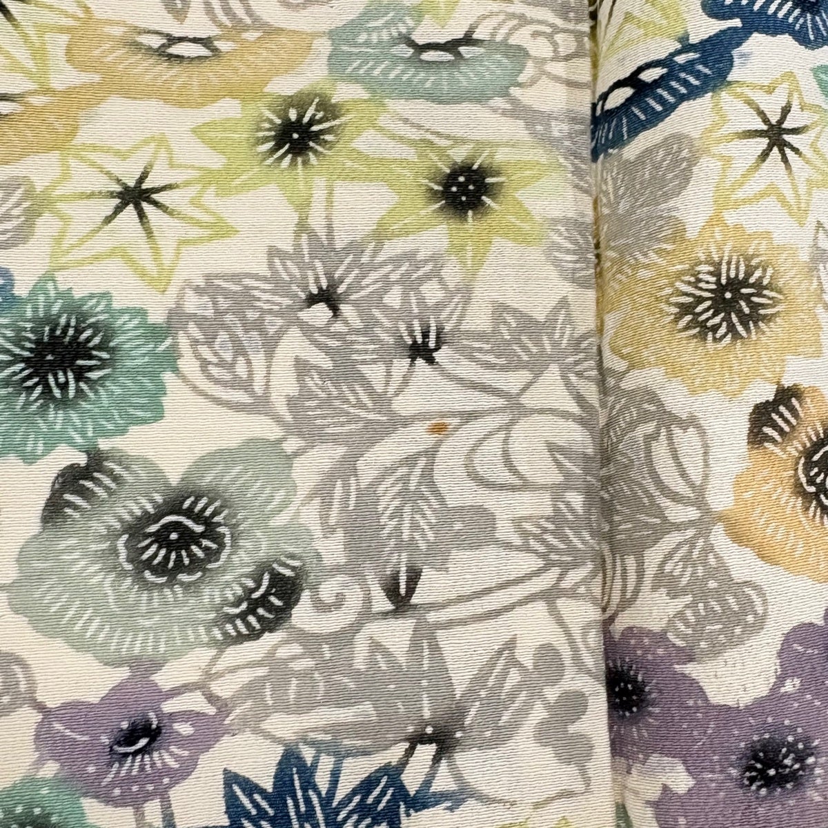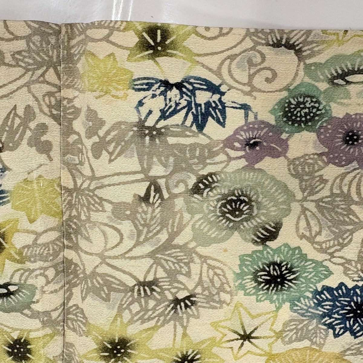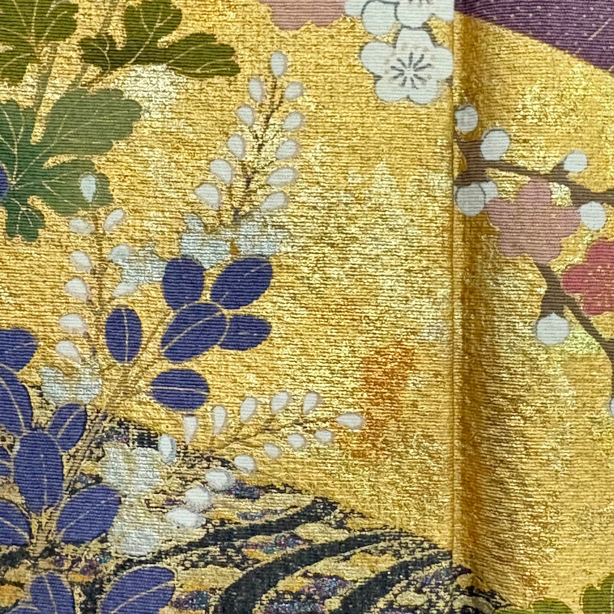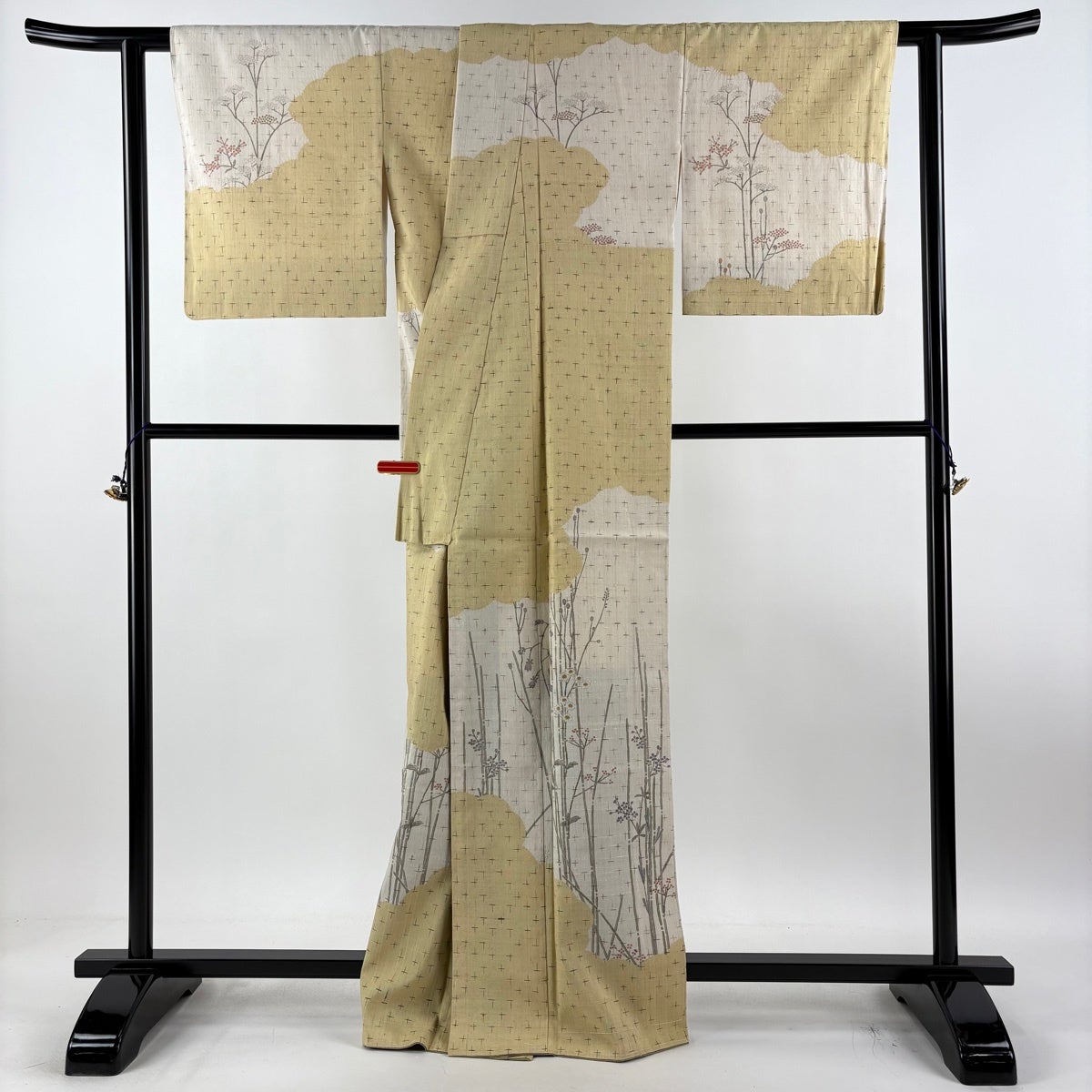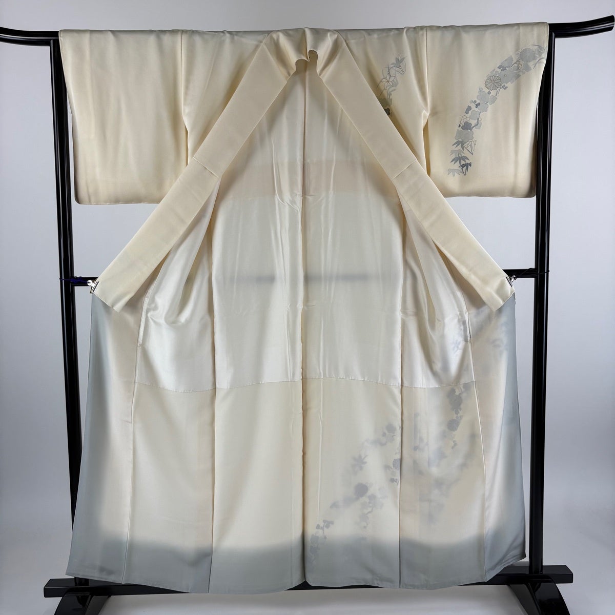 付下げ 身丈156cm 裄丈65cm M 袷 草花 笹 金糸 金彩 クリーム 正絹 秀品