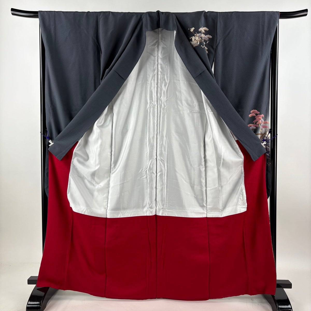 色留袖 身丈166cm 裄丈69cm L 袷 落款あり 風景 松 ぼかし 灰色 正絹 秀品 一つ紋