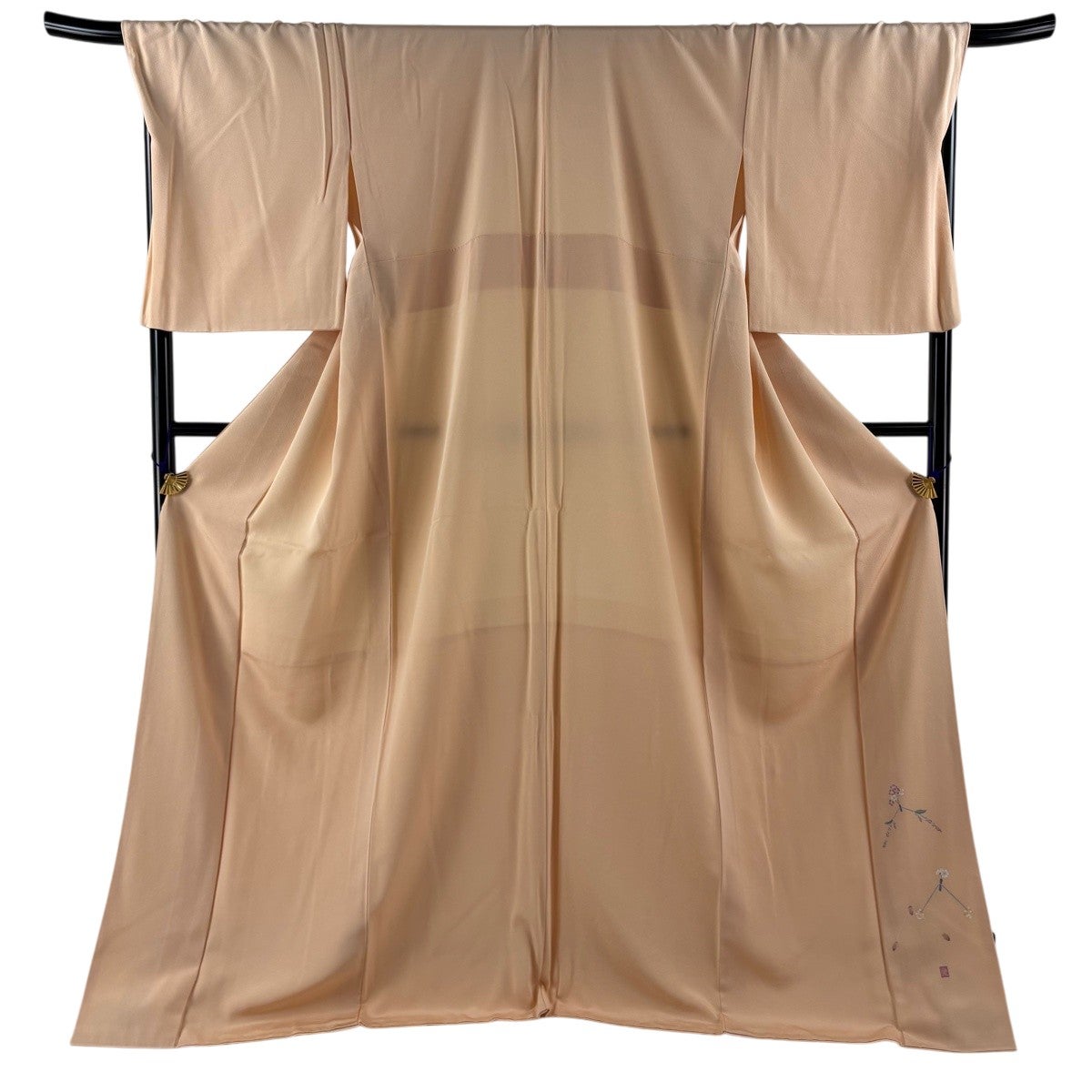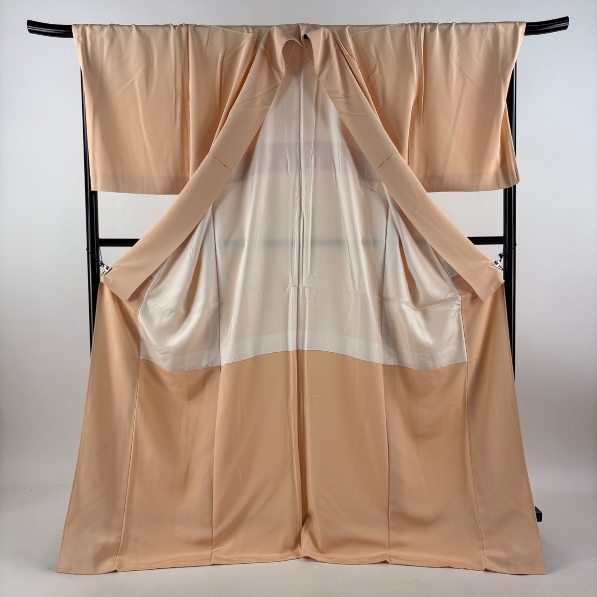 色無地 身丈173.5cm 裄丈71cm L 袷 落款あり 薄オレンジ 正絹 秀品
