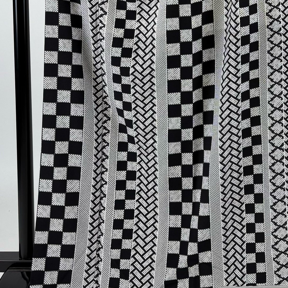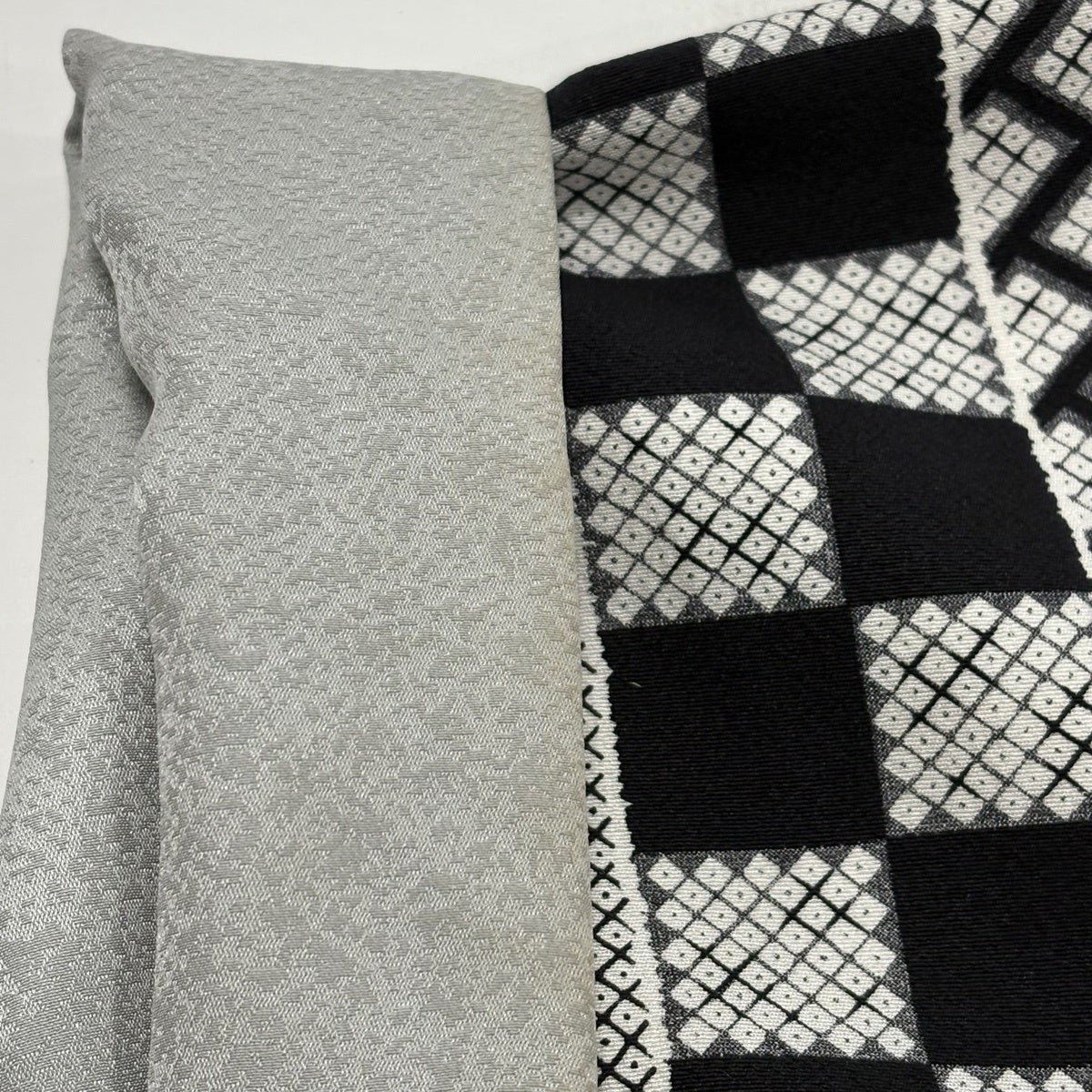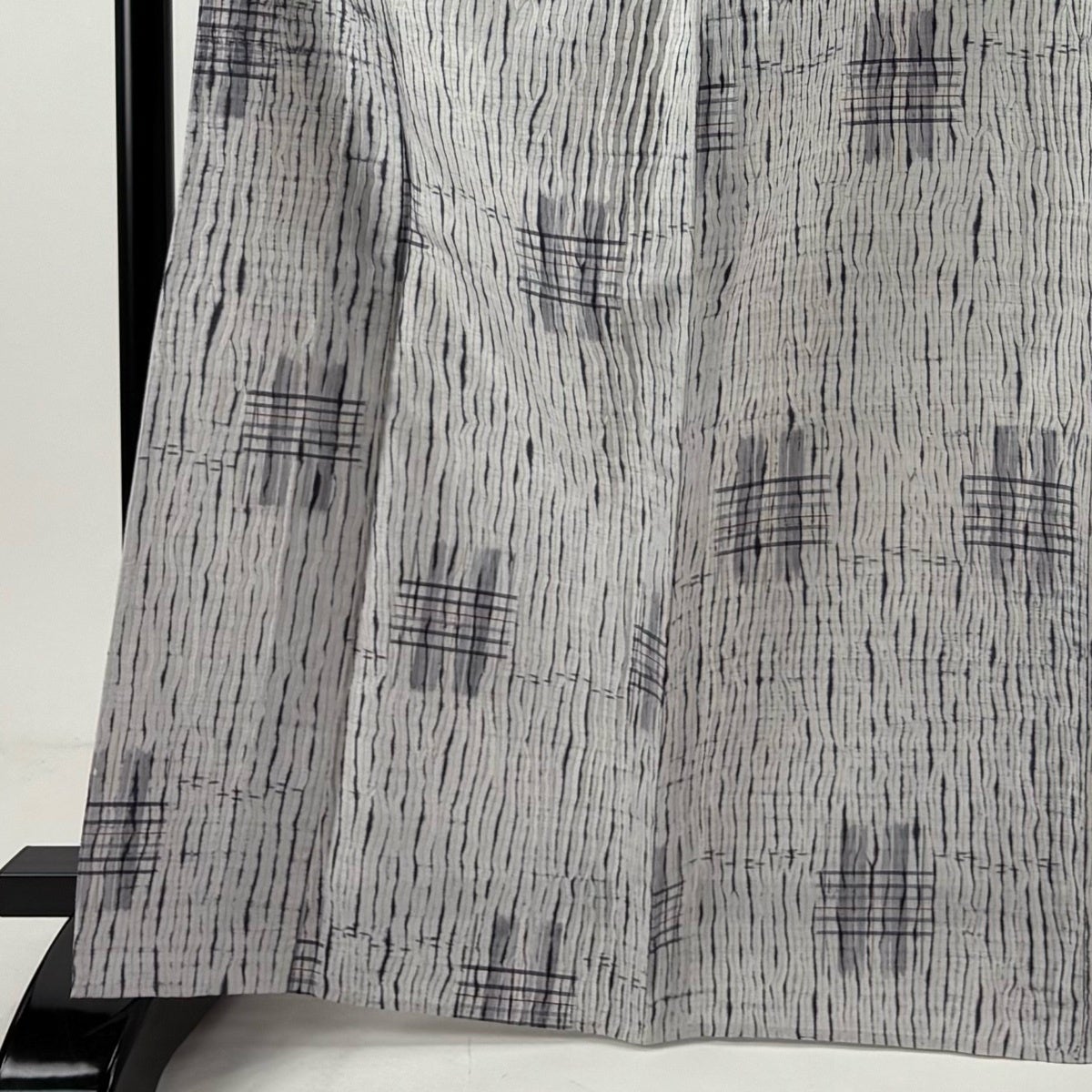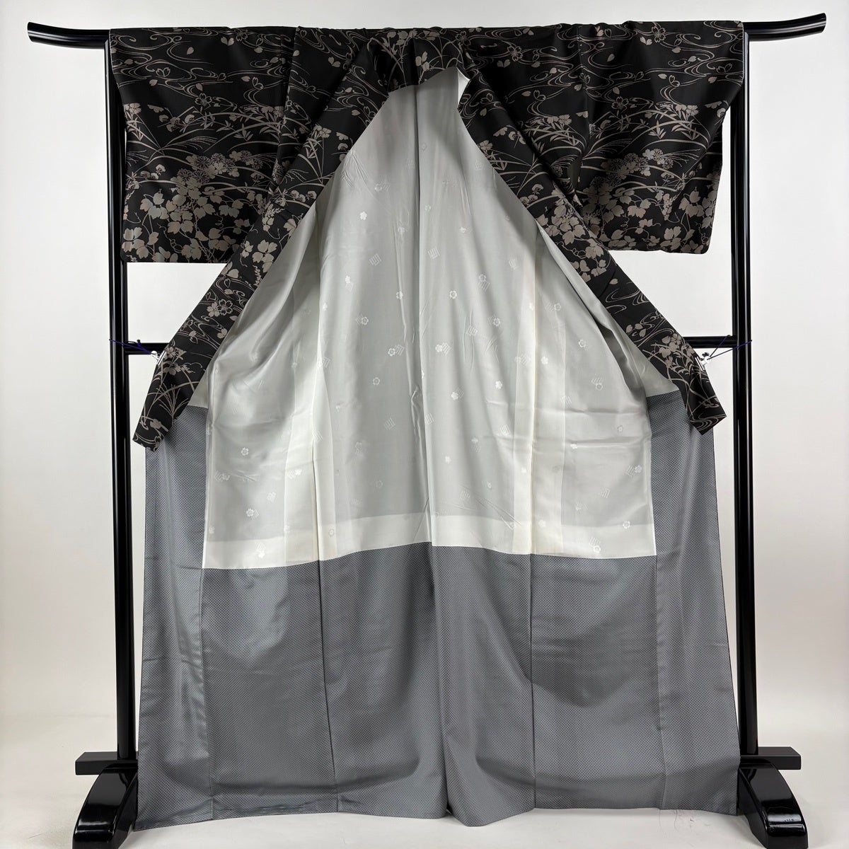 小紋 身丈162cm 裄丈67.5cm L 袷 市松 桧垣 黒灰 正絹 秀品