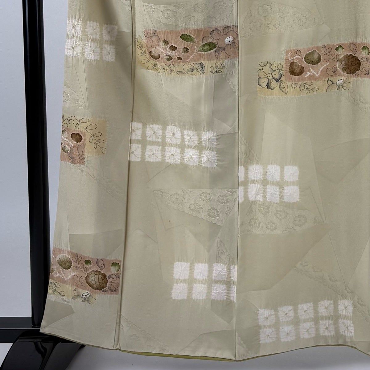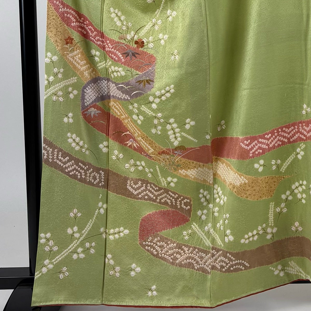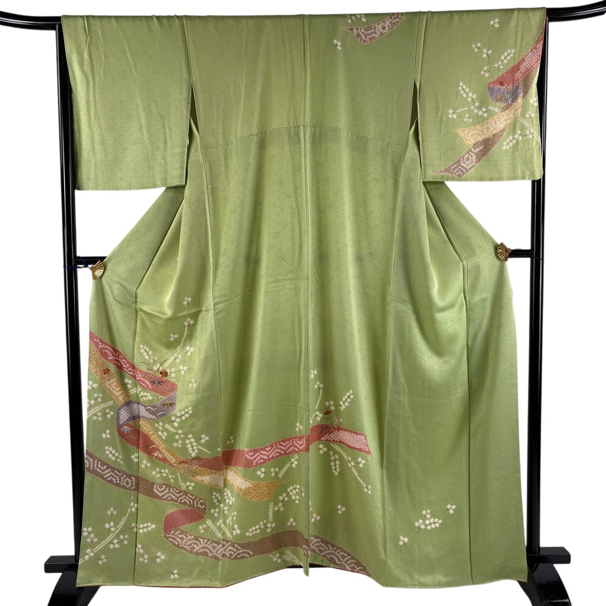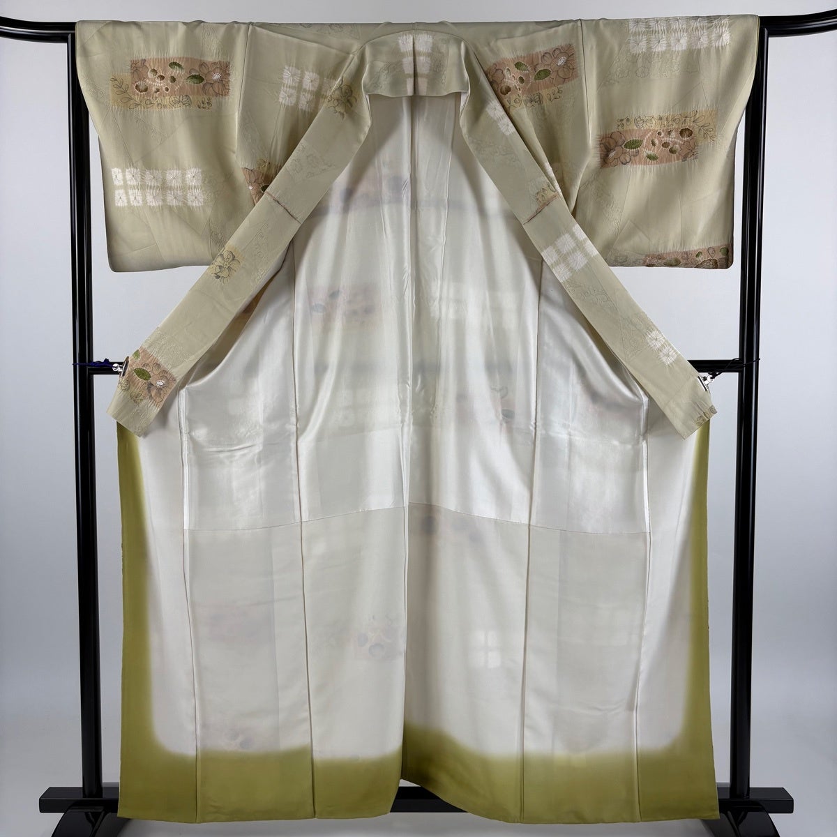 訪問着 身丈161.5cm 裄丈65.5cm M 袷 熨斗 萩 絞り 刺繍 黄緑色 正絹 秀品