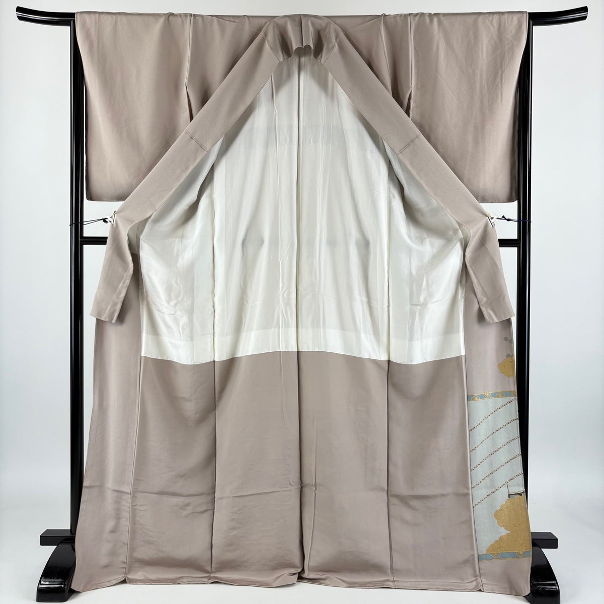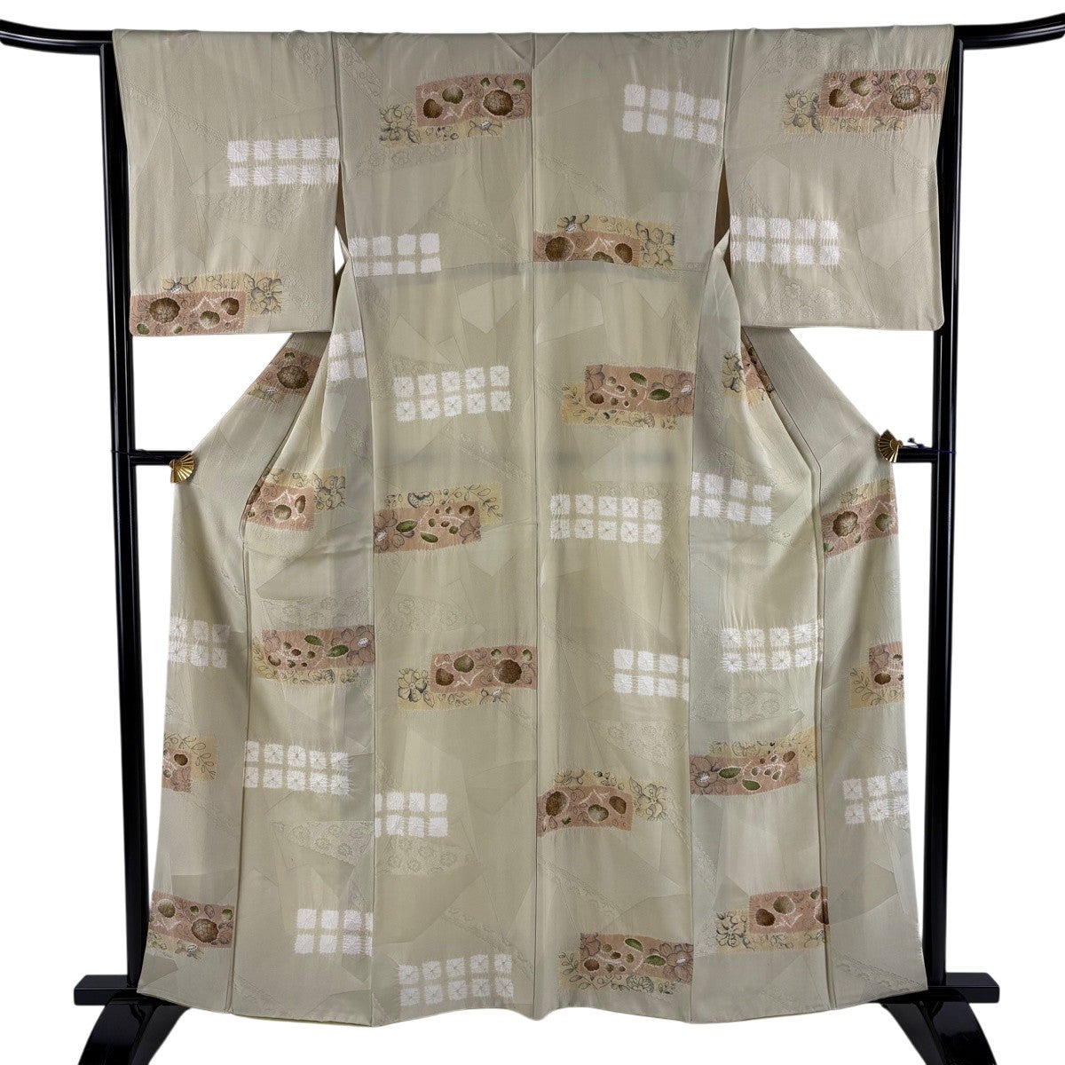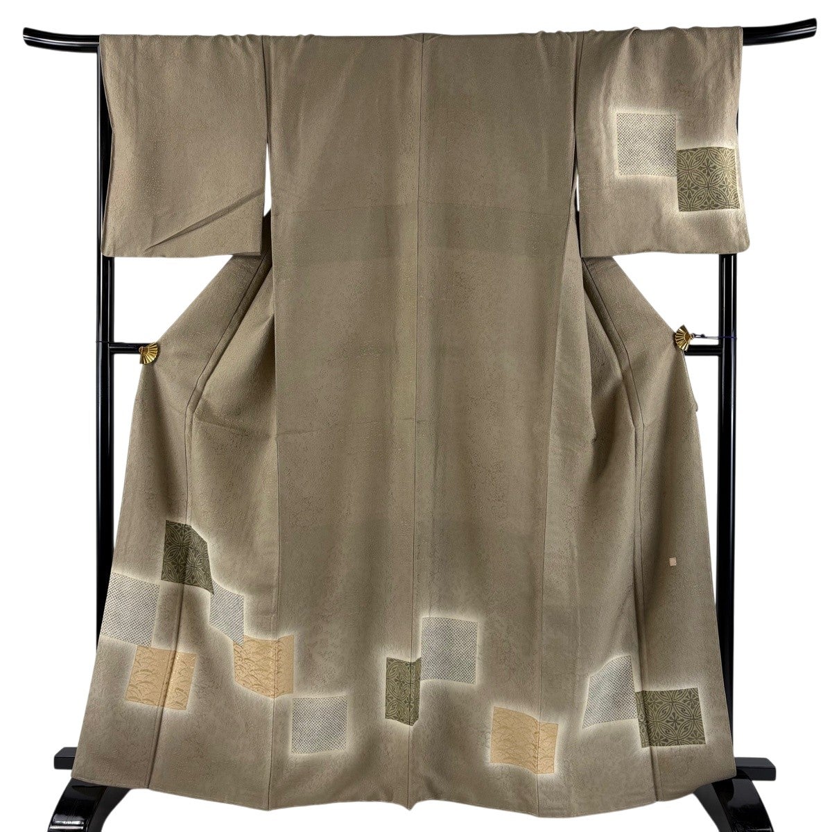 付下げ 身丈157cm 裄丈67cm M 袷 色紙 幾何学 金糸 金彩 灰色 正絹 秀品