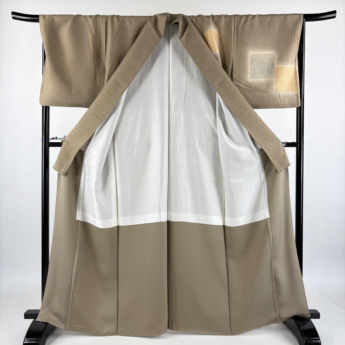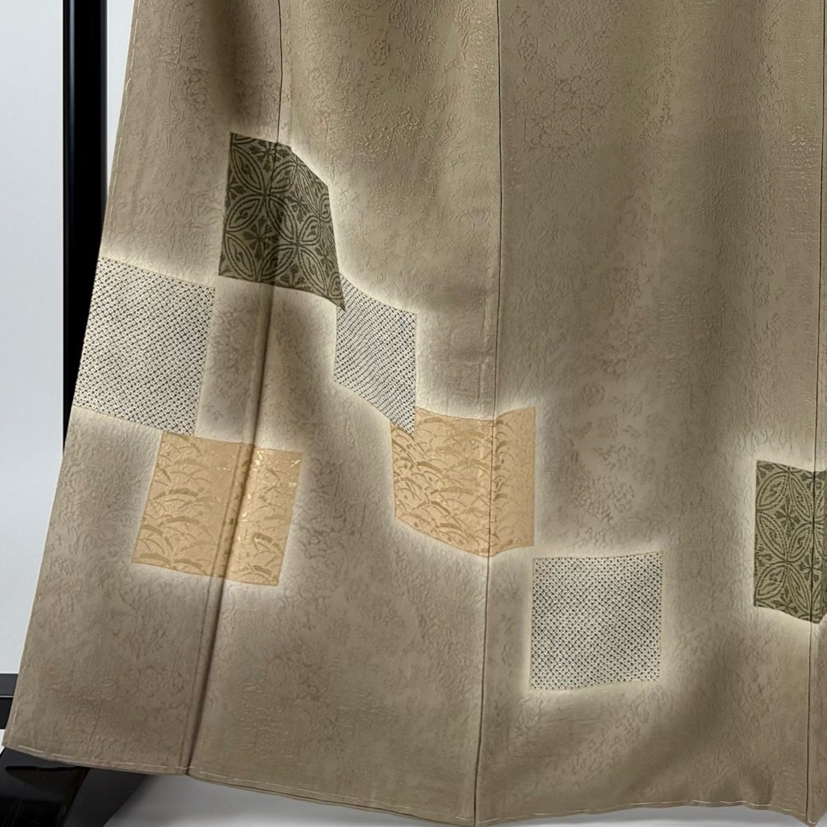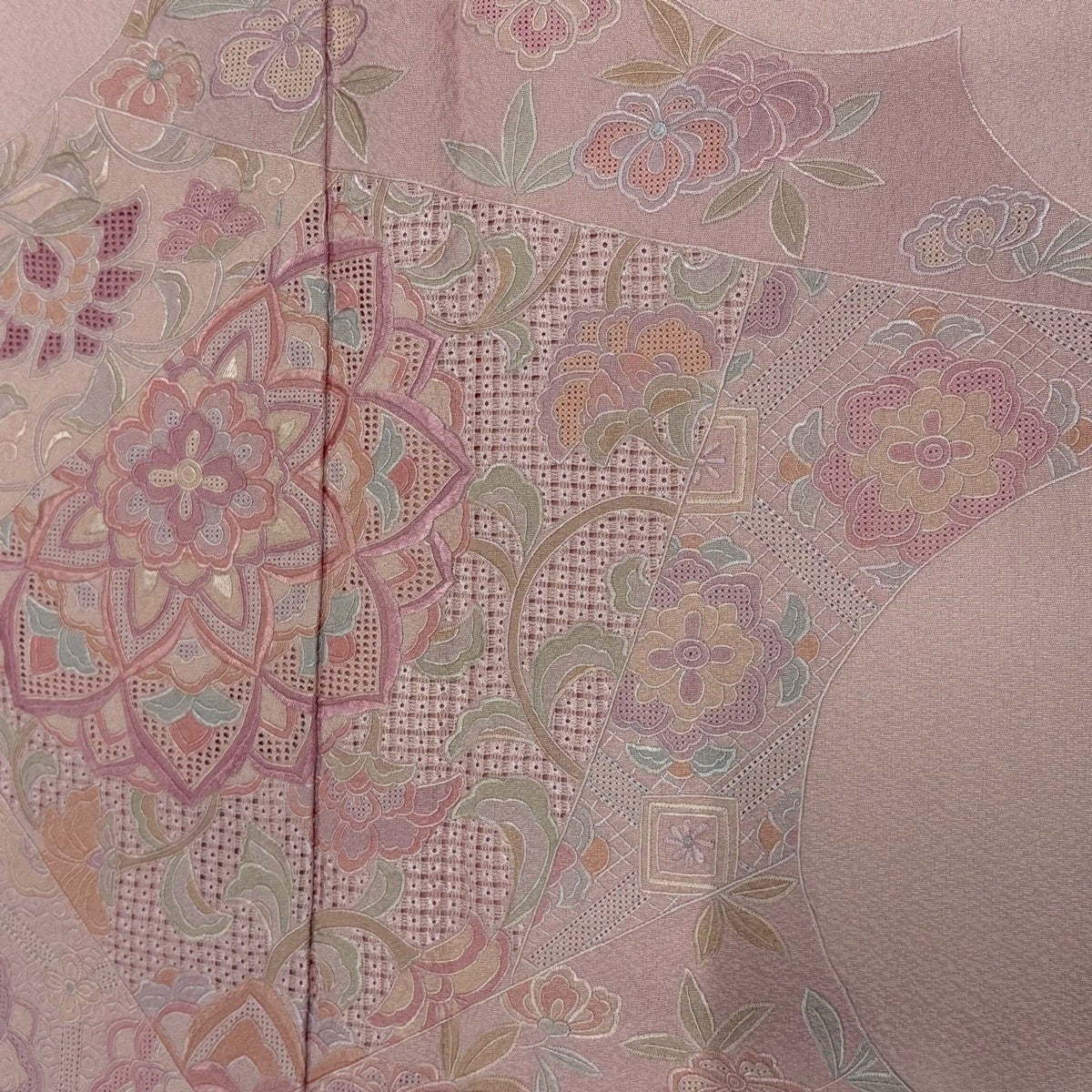 付下げ 身丈157cm 裄丈67cm M 袷 色紙 幾何学 金糸 金彩 灰色 正絹 秀品